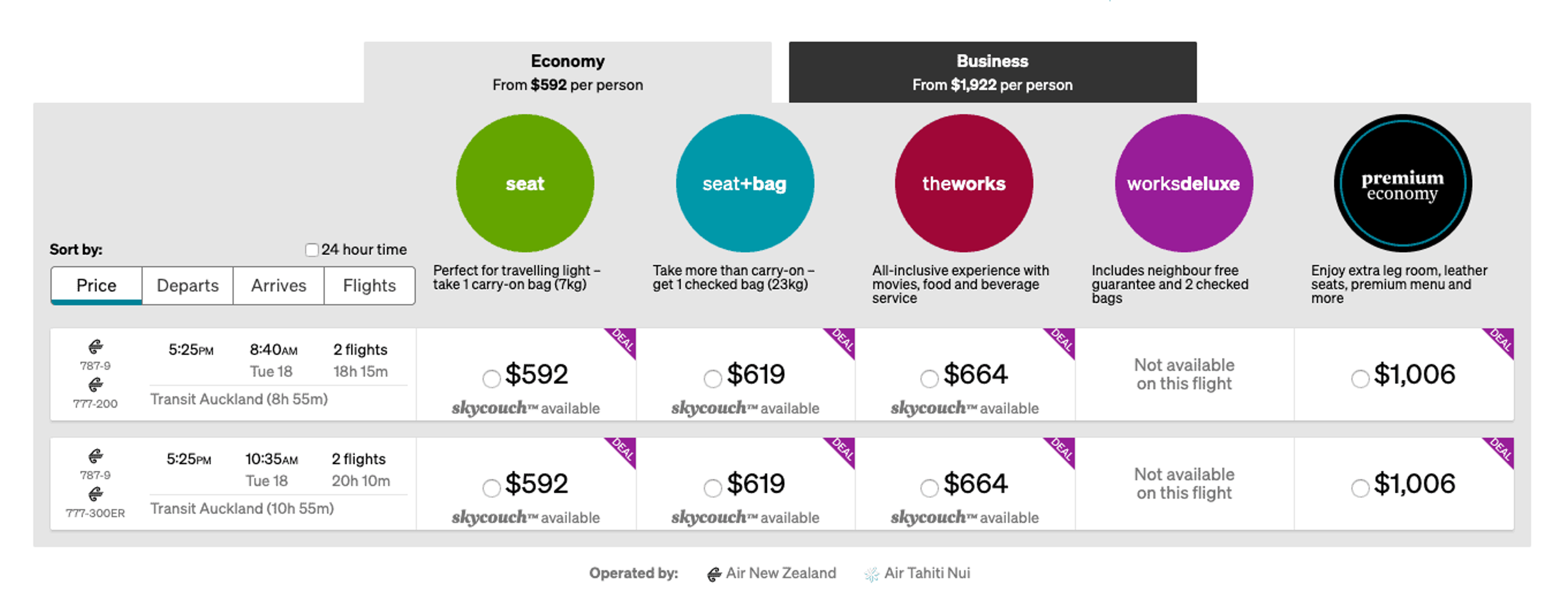 Offer ends 11.59 pm AEDT December 14 2019. Offer applies to return adult Economy Seat, Seat + Bag, The Works, Premium Economy and Business class airfares booked from Australia to Rarotonga, Norfolk Island, Samoa, Tonga, Tahiti, Fiji and Niue on any Air NewZealand operated service.