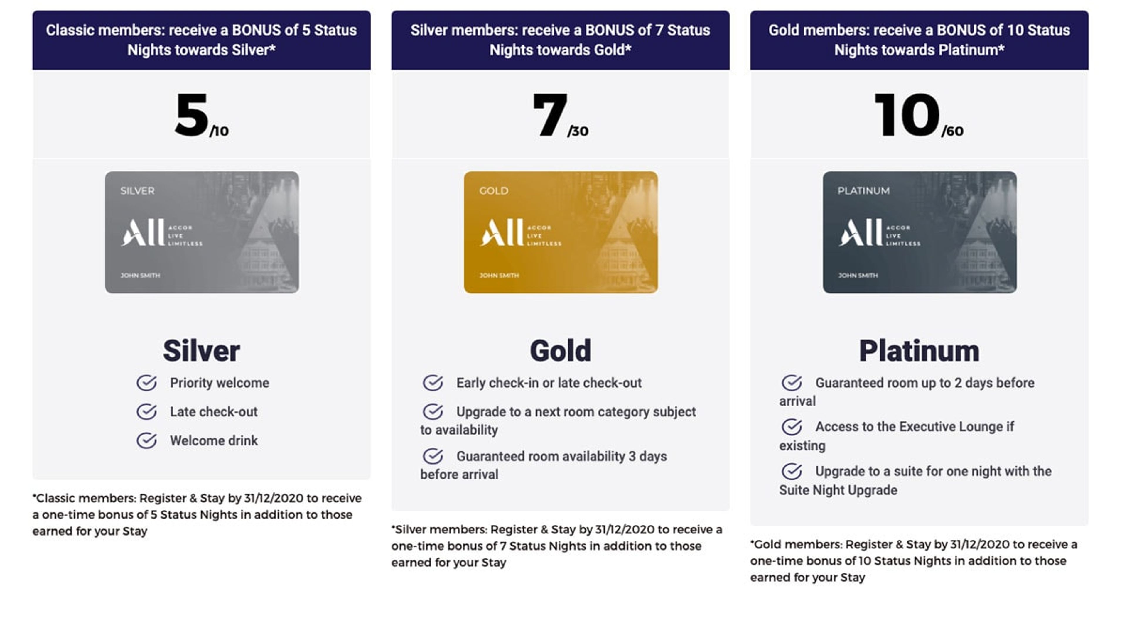 - ALL Classic: Get 5 bonus nights towards Silver