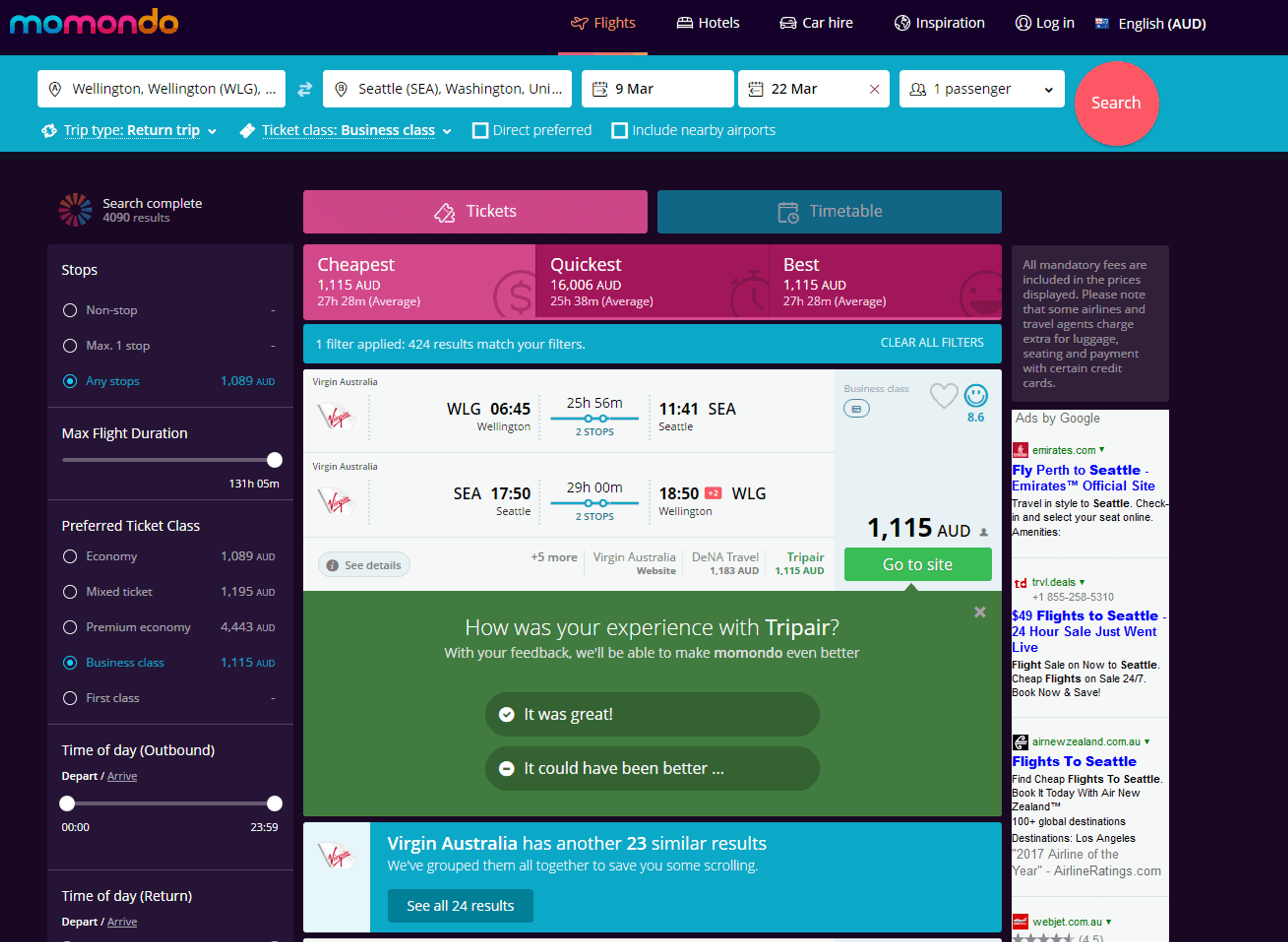 Use Momondo or Google Flights to book and research.