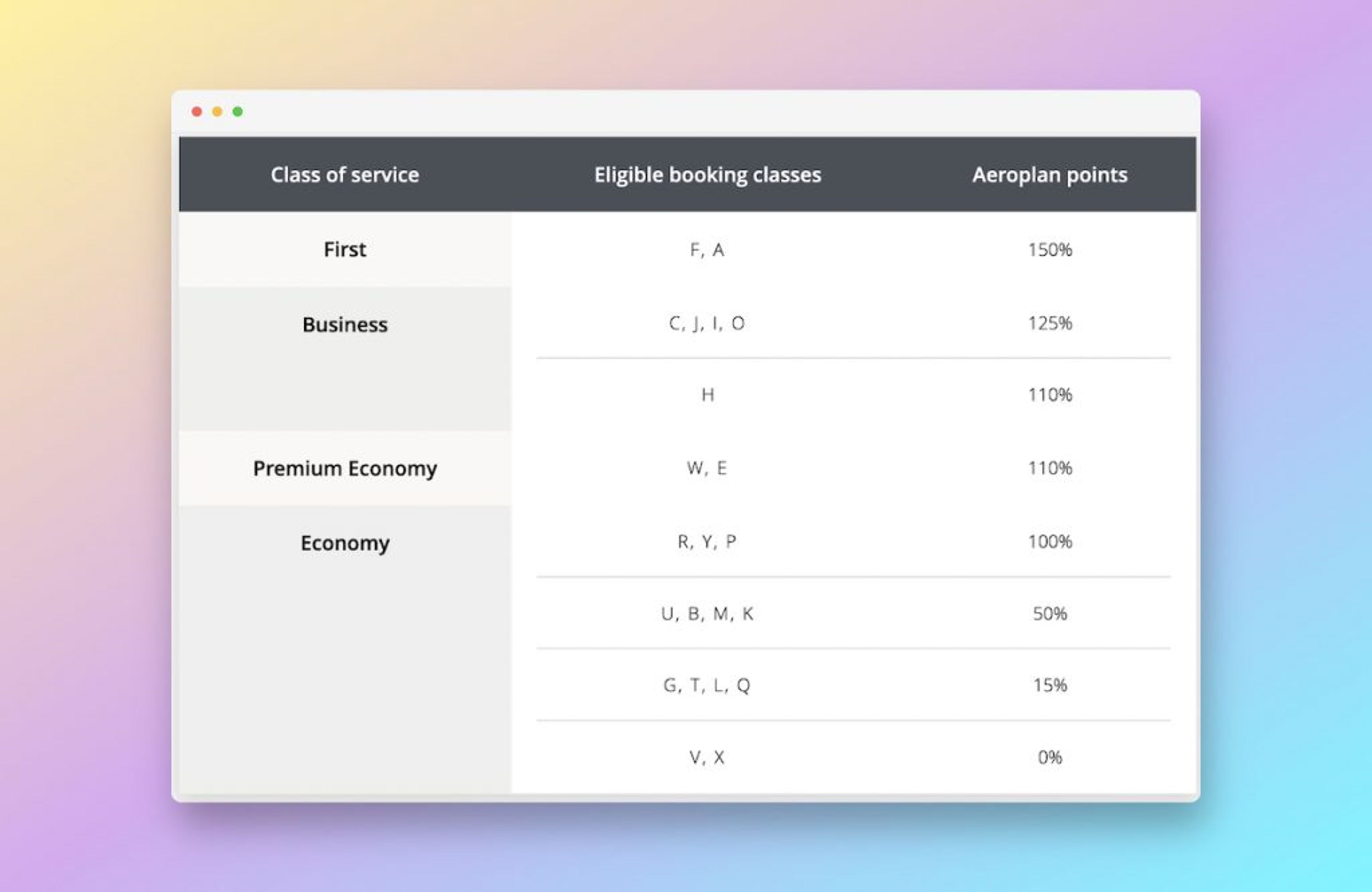 The number of Skywards Miles you’ll earn for travel onboard Air Canada depends on your class of travel, fare type and distance flown, as below;
