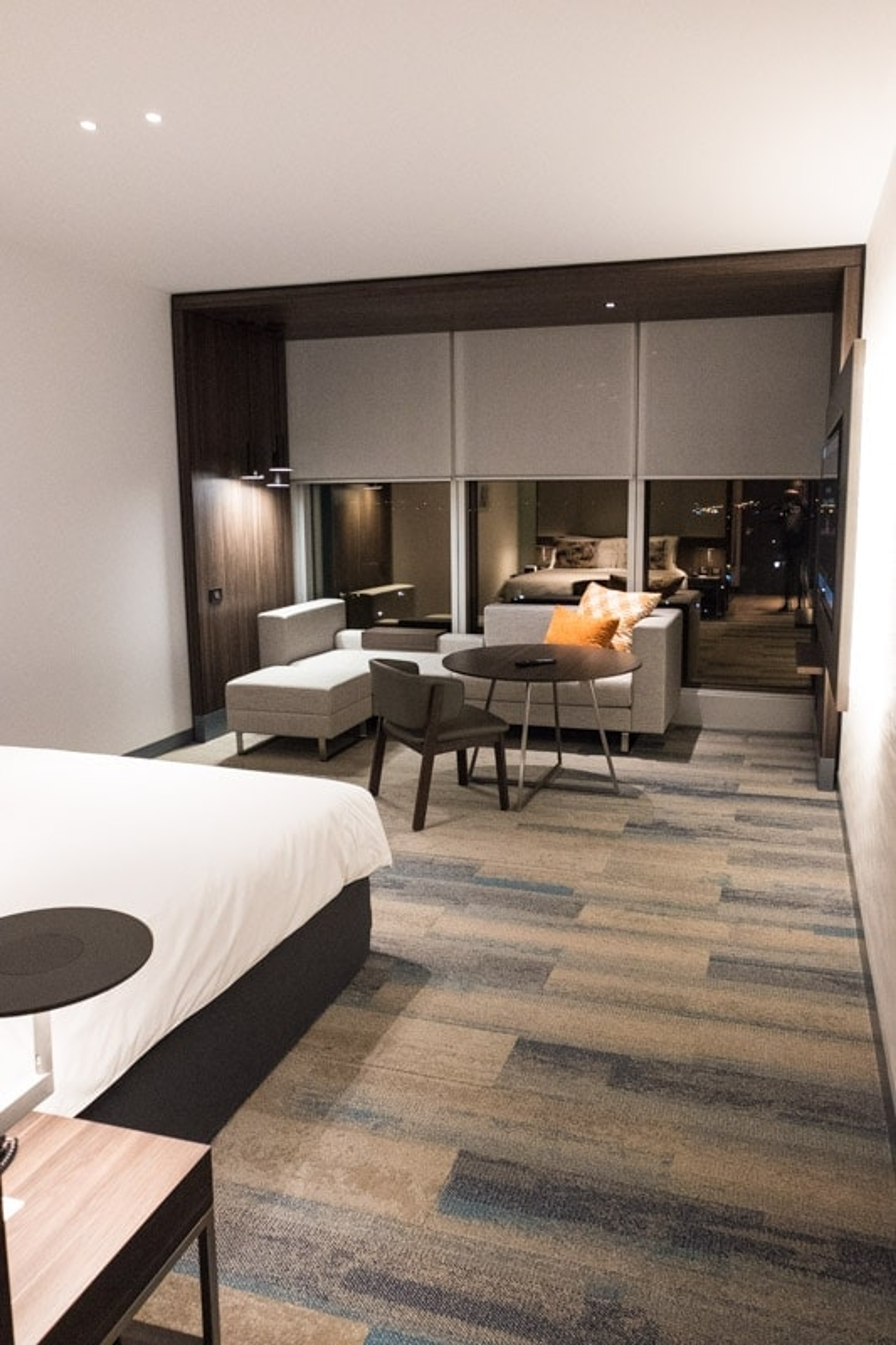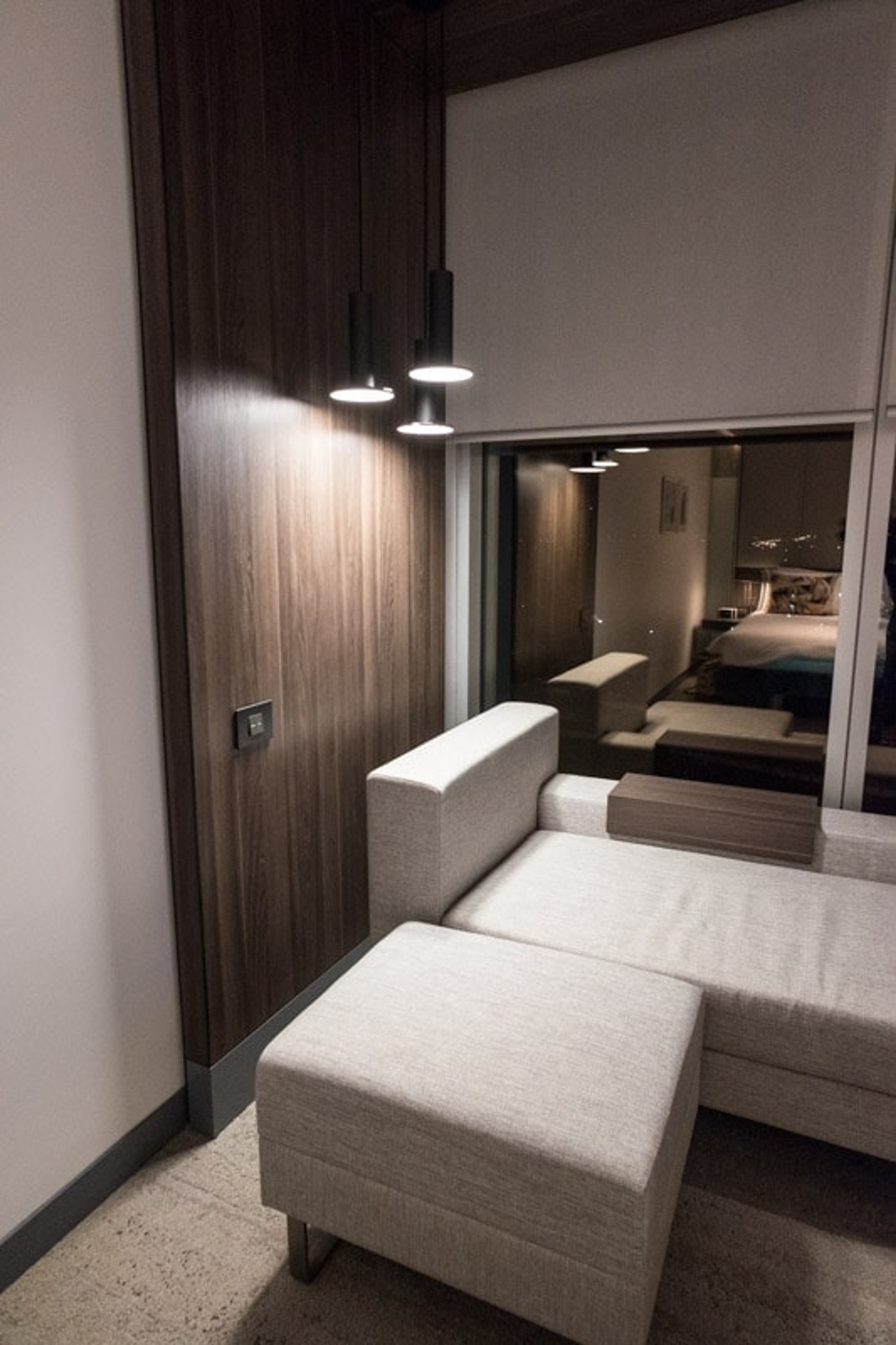 Lighting is on point and easily controlled, this means you won’t be hunting for light switches all over the place when you want to go asleep. The room has excellent natural lighting with 3 massive floor to ceiling windows which make up the entire outward facing wall.