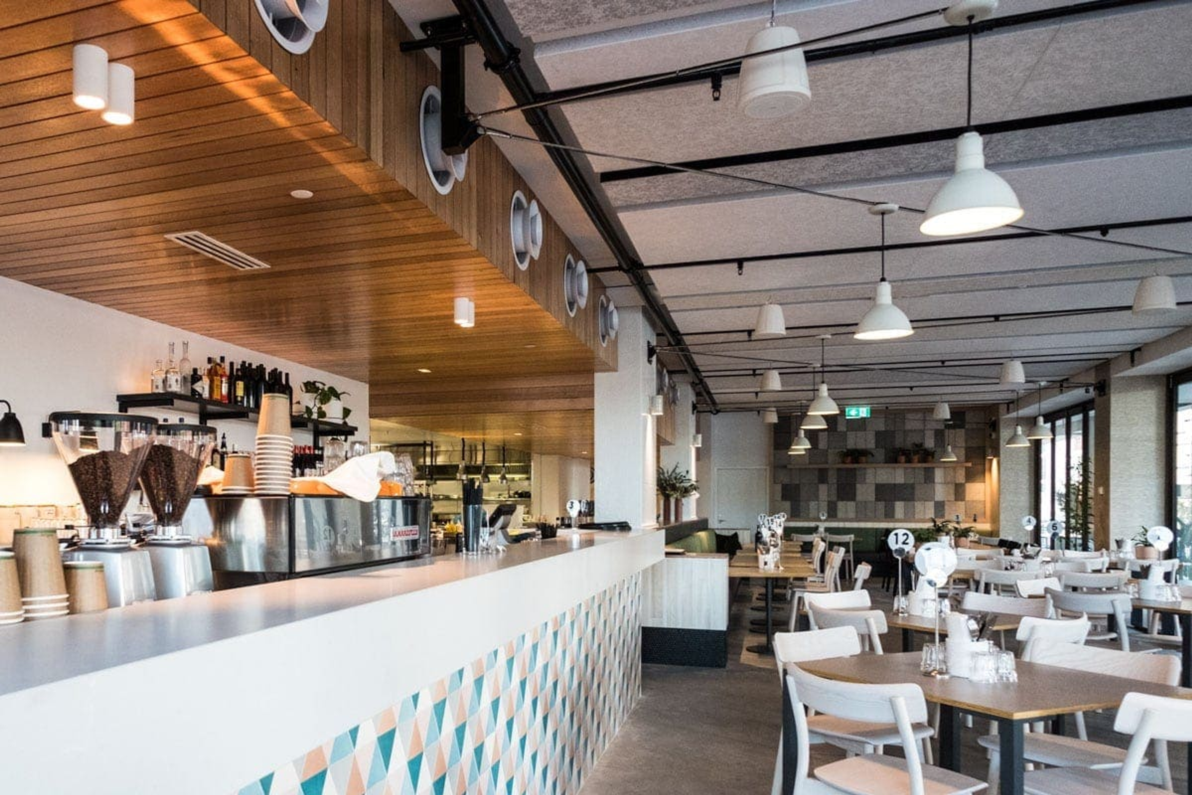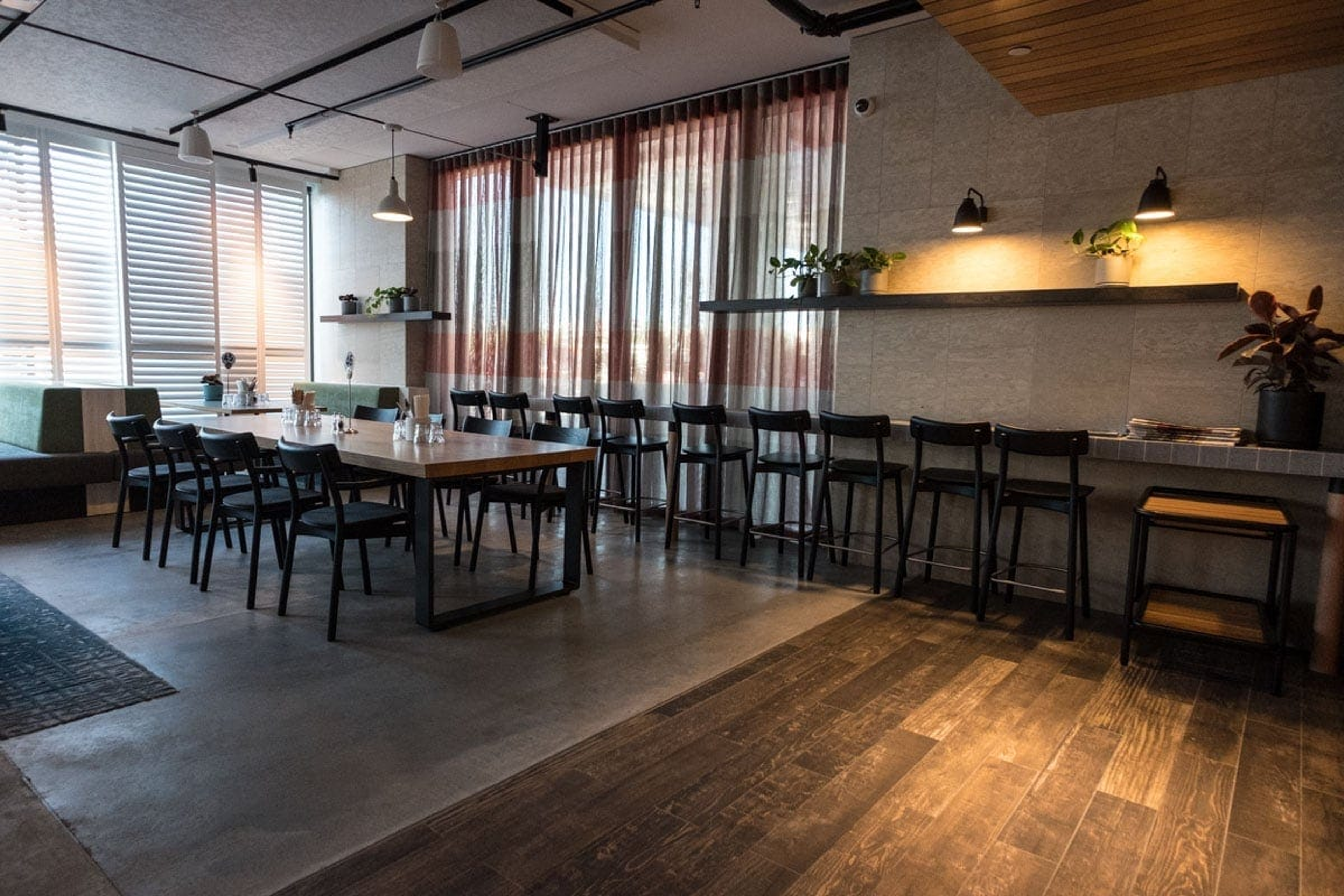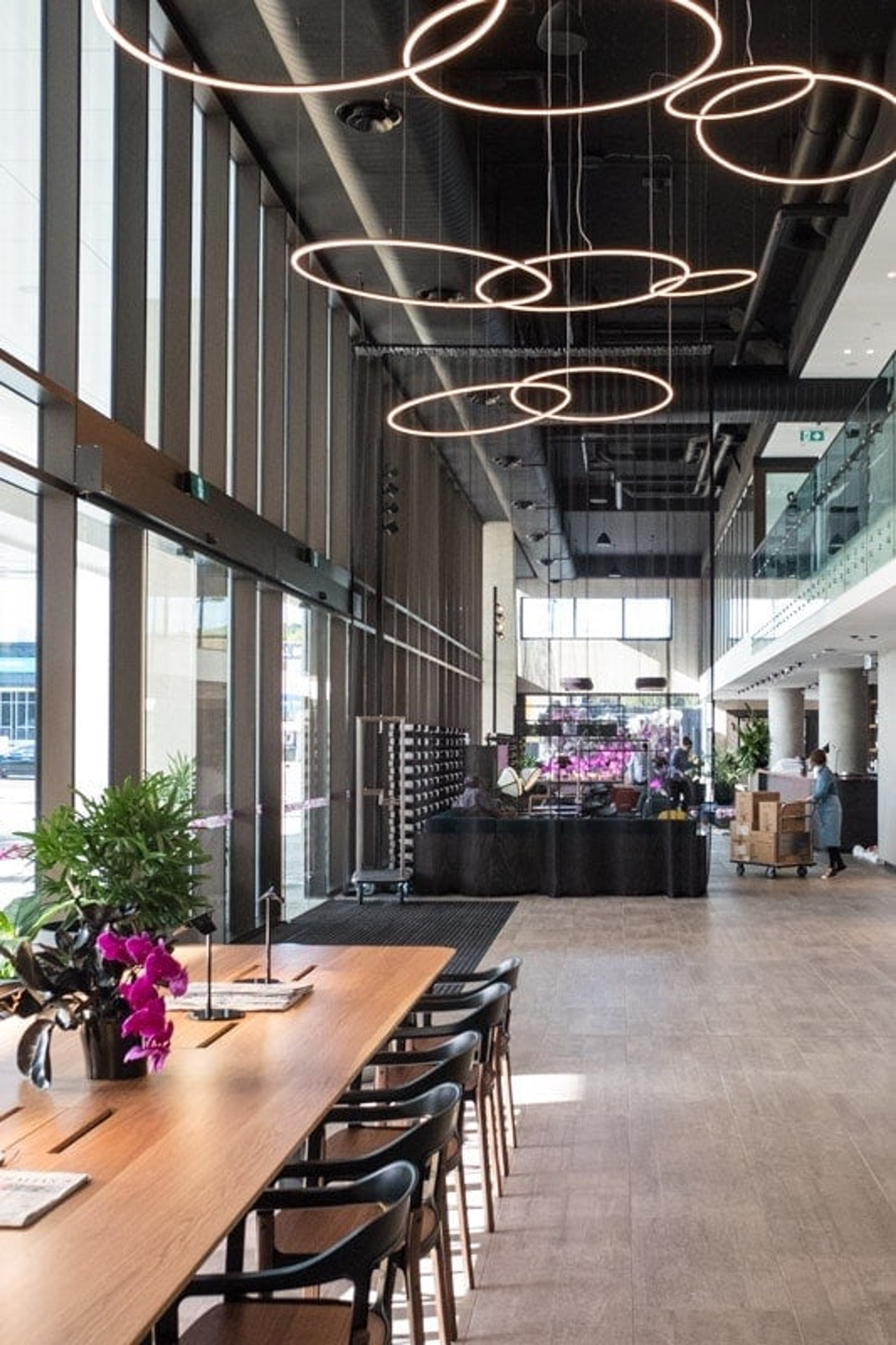 To the right of the reception is the breakfast area which flows into a cafe/restaurant which is open to both guests and locals. The whole space has a nice functional design and open areas flow into each other.