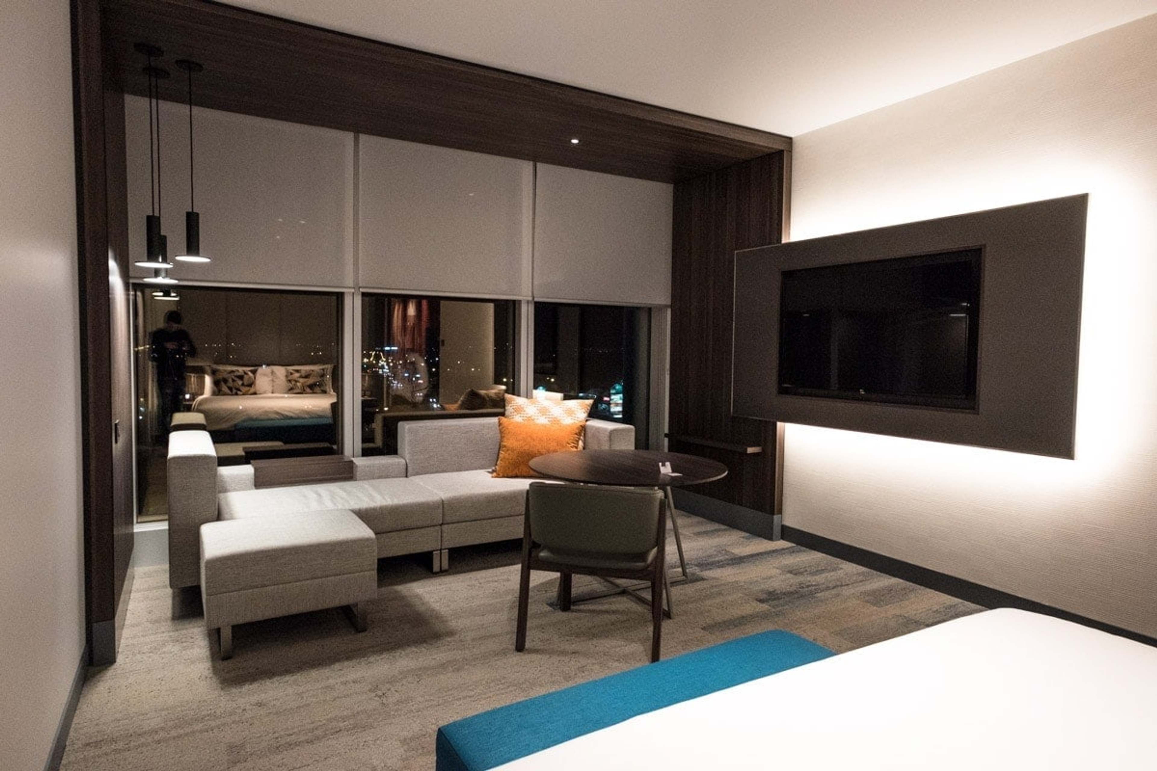 I booked a standard king room which is about 33-36sqm in size and features a chase lounge chair, 55inch flatscreen TV, dining table and a spacious bathroom. We checked in around 8PM and the launch party was in full swing at the downstairs XYZ bar. The check-in staff where friendly and polite but had some trouble figuring out that my booking was paid with points.