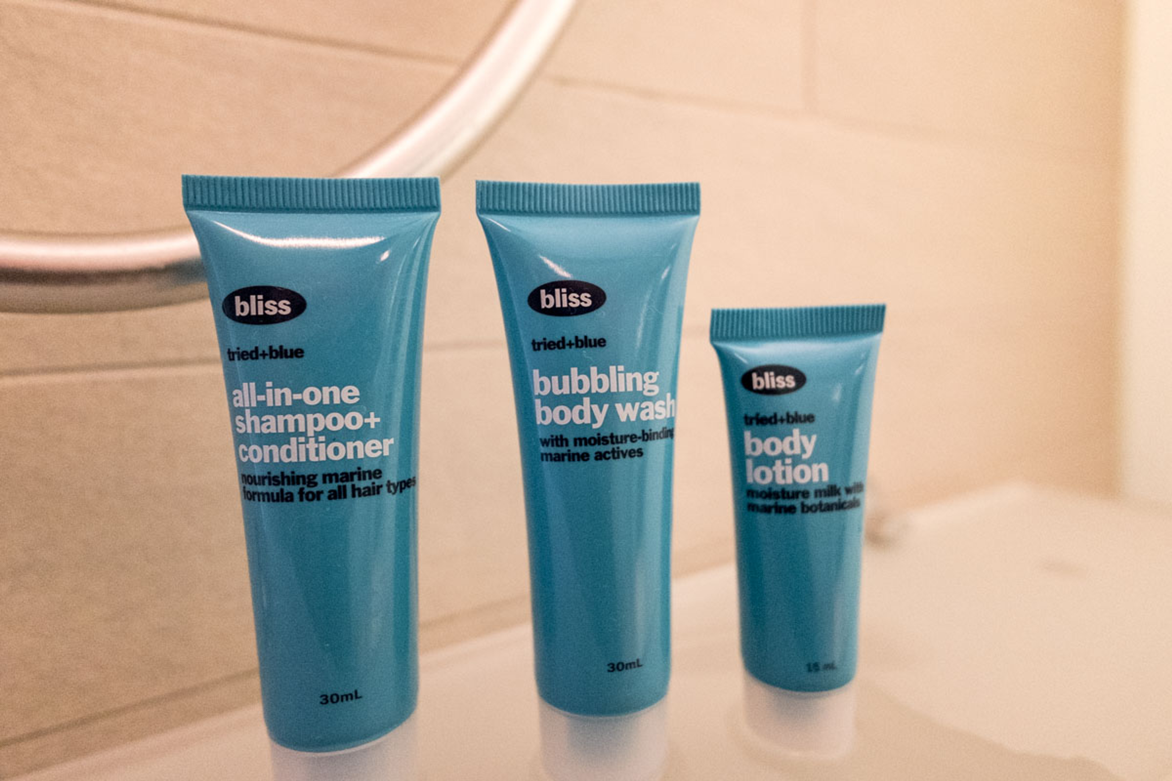 Toiletries are by Bliss and nothing overly special. In fact, they look rather cheap and the design of them clashes with the rest of the hotel