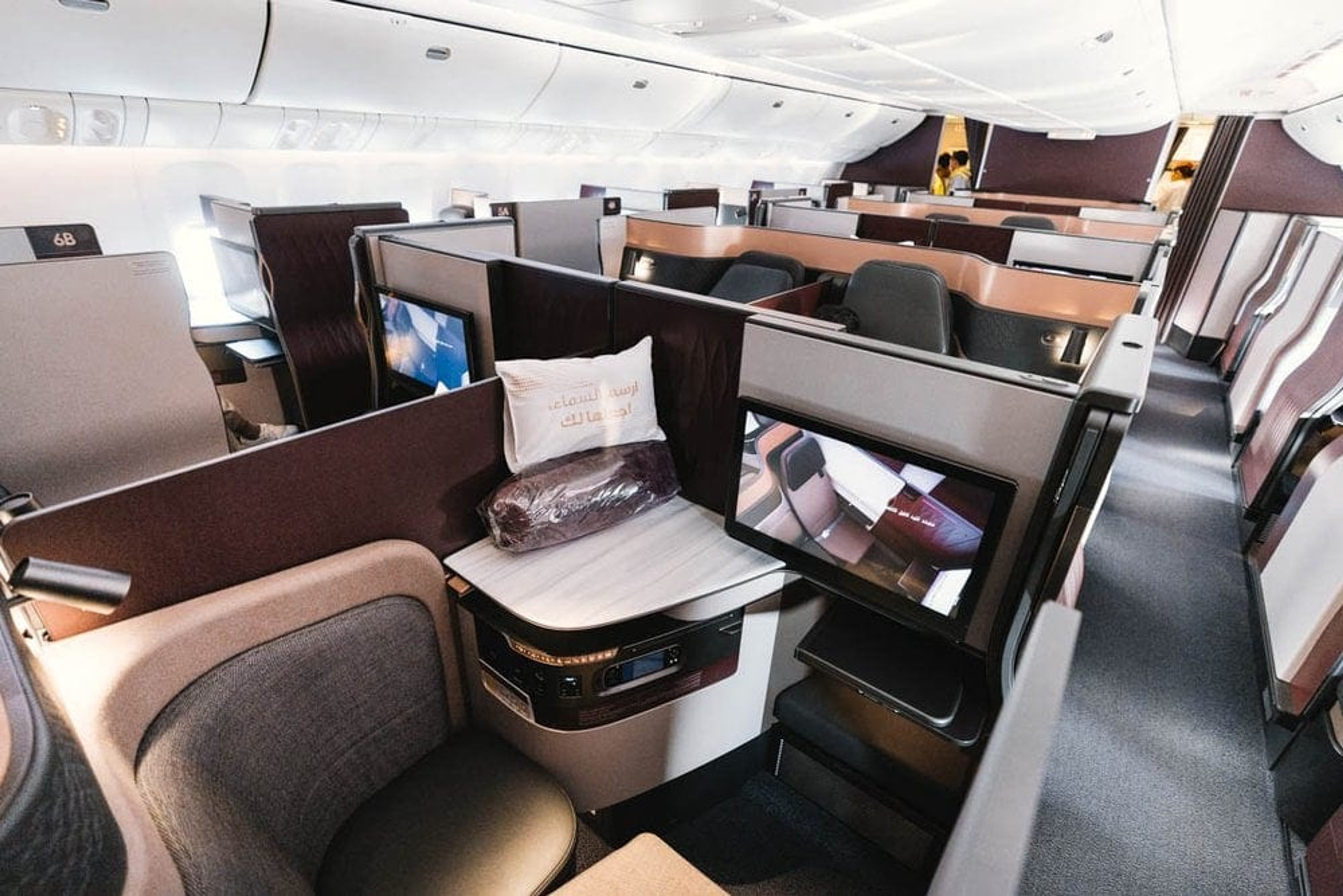 Depending on dates and flights, you could find yourself on either a flight with Qsuites, 787/A350 also with excellent business class seats or the A380 which features a bar on-board.