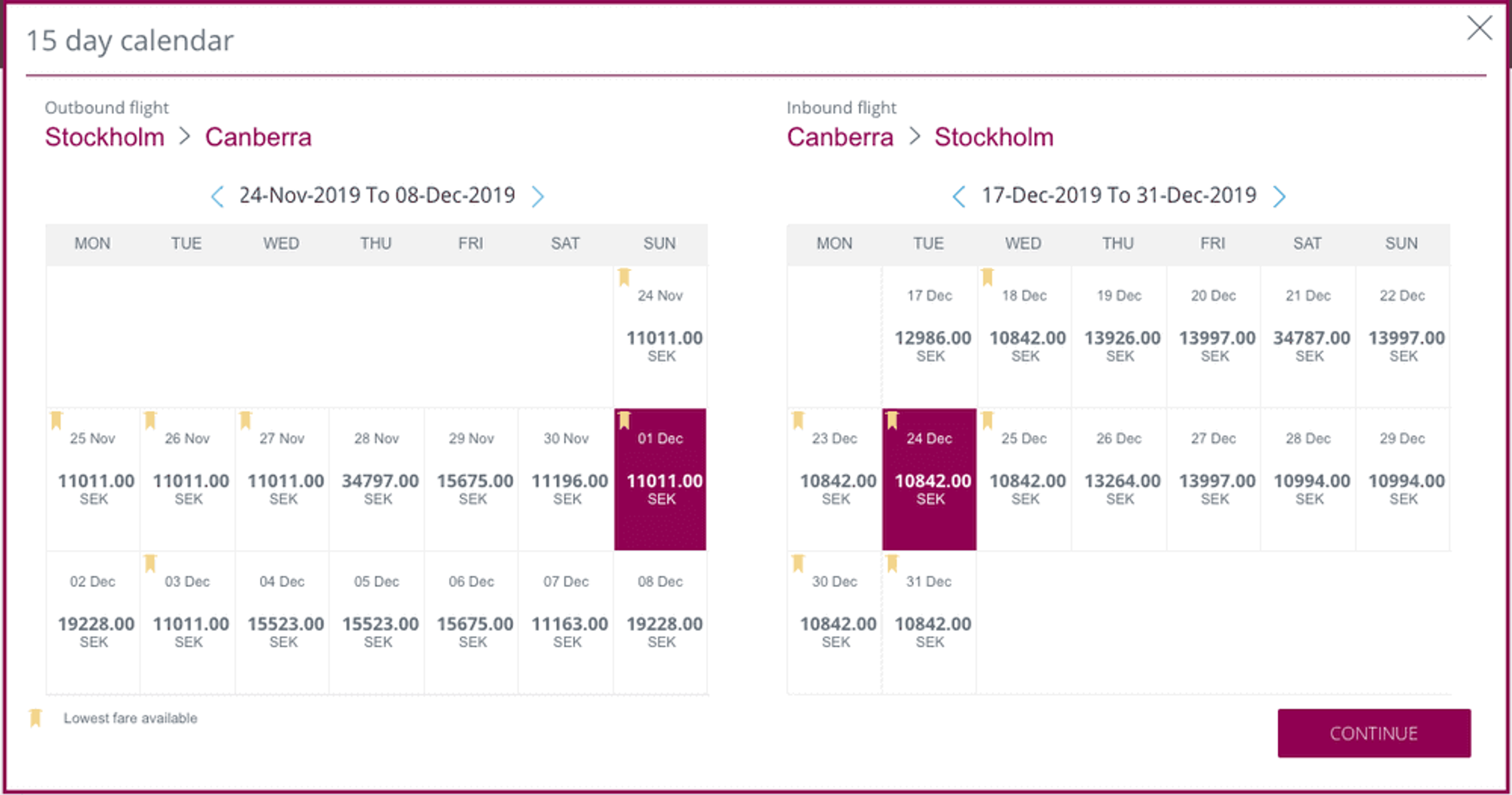 You will then want to look on the calendar for dates marked with a yellow ribbon (this means lowest sale price).