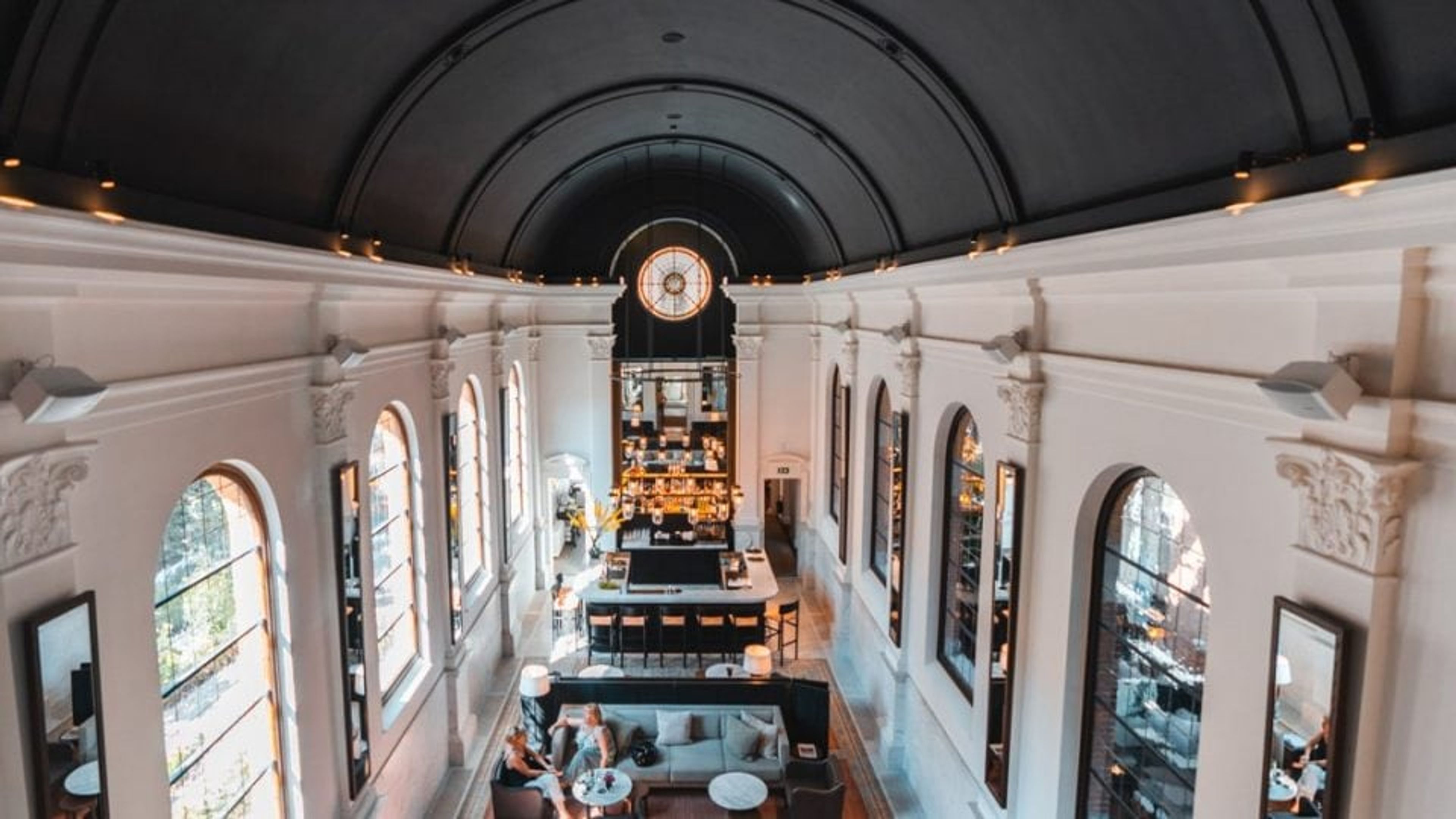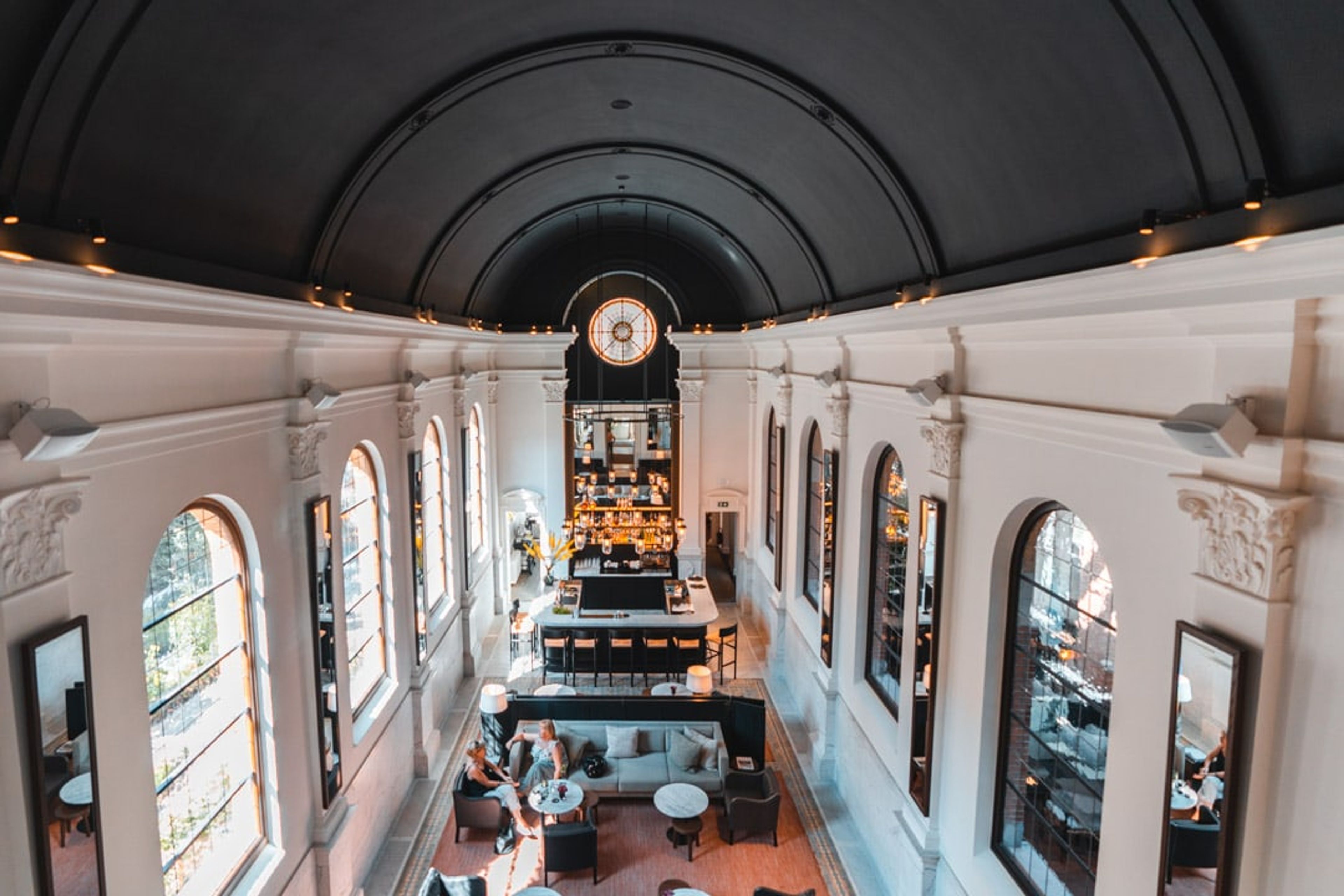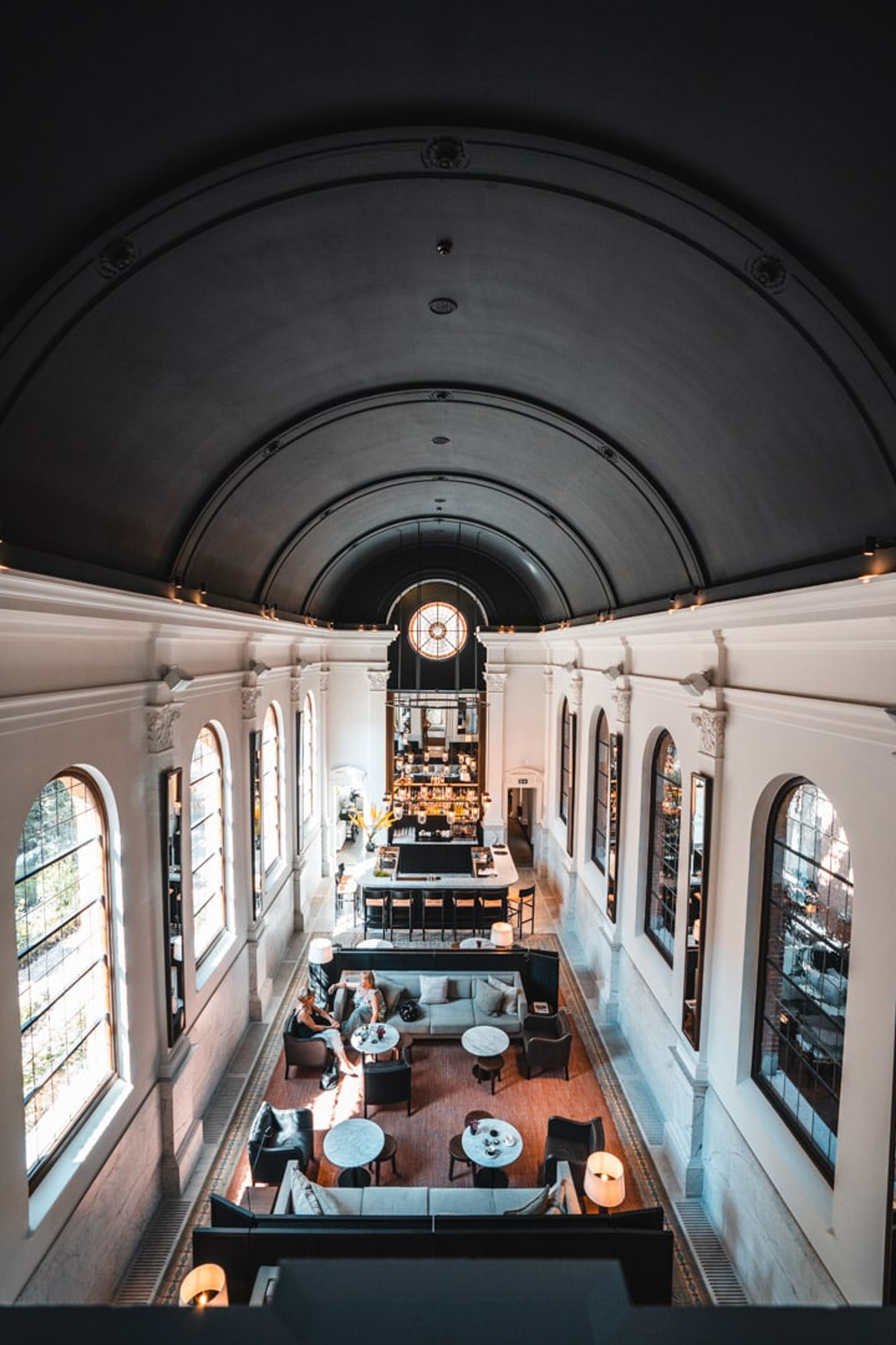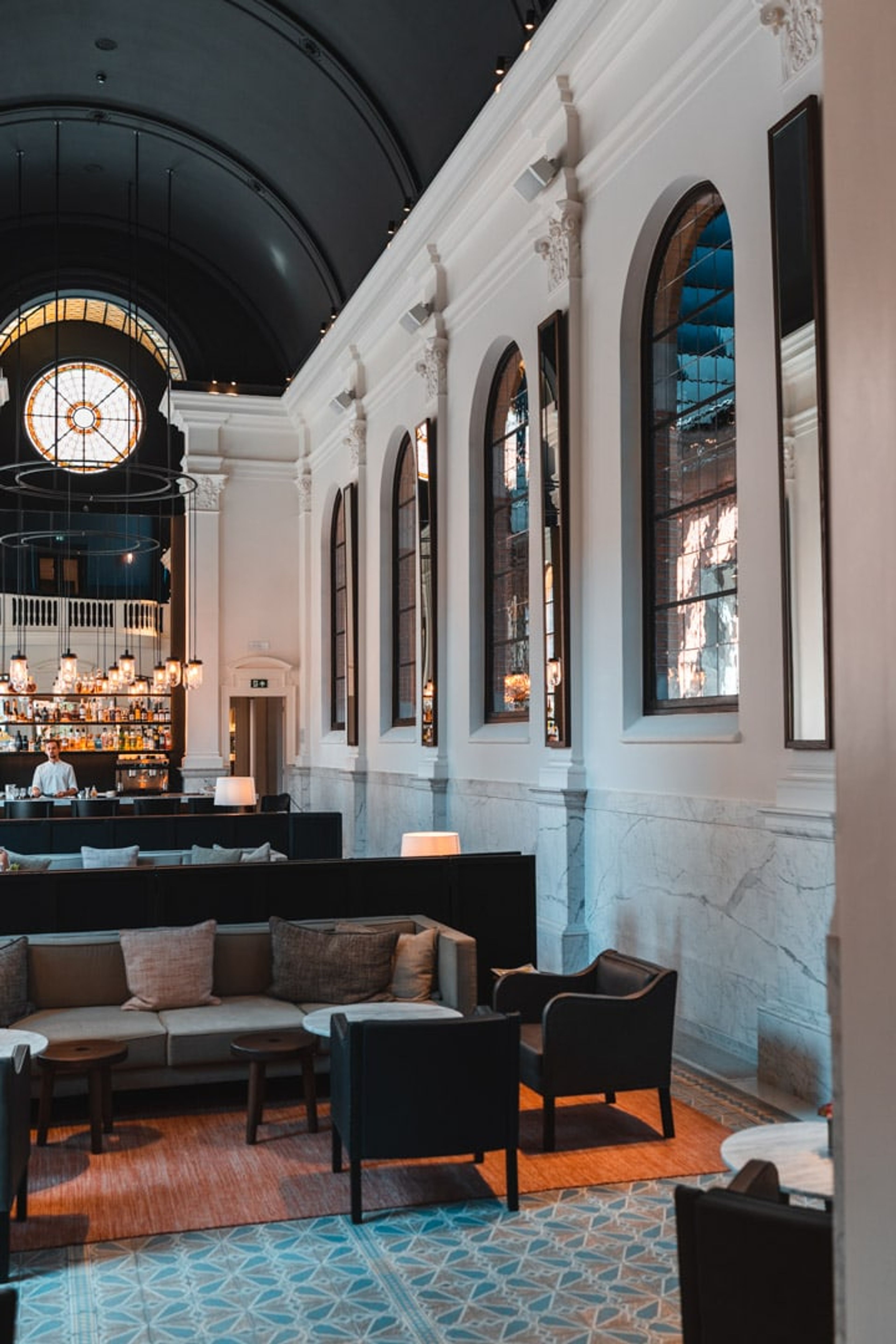The bar is the piece de resistance of the hotel. Beautiful marble stone offset the coloured glass window from the old chapel.