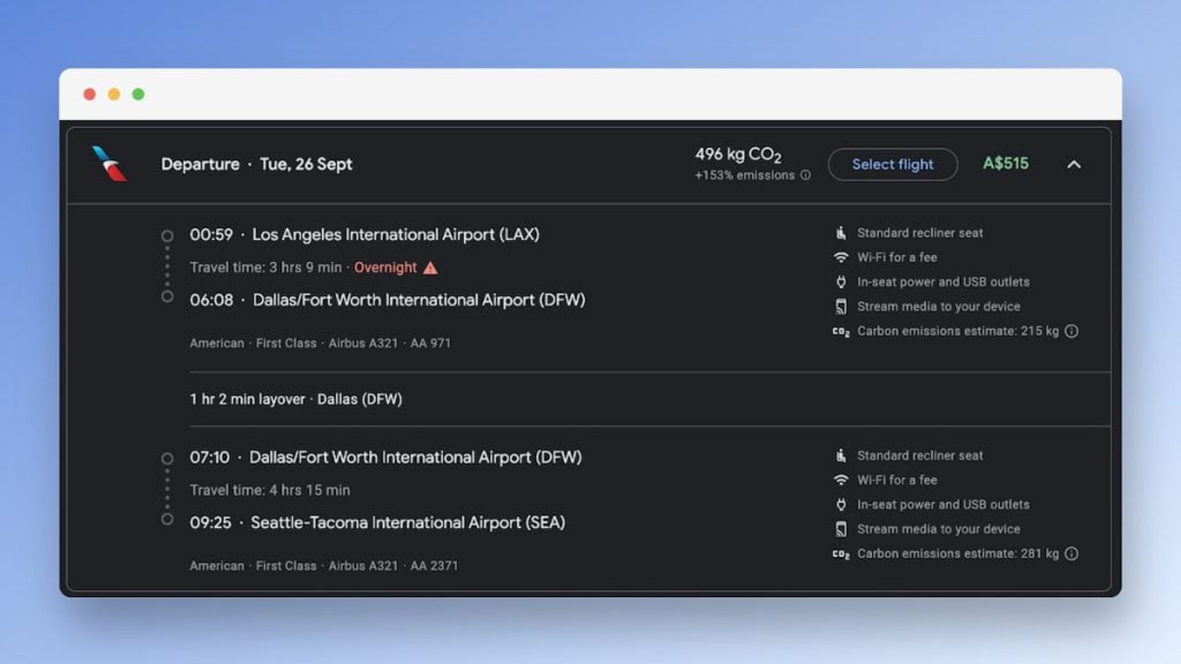Note that American Airlines usually allows for a maximum of two stopovers on one-way domestic tickets within the United States, but we can still work within this. For example, you could earn 200 Qantas status credits on a journey from Los Angeles to Seattle via Dallas in American first class.