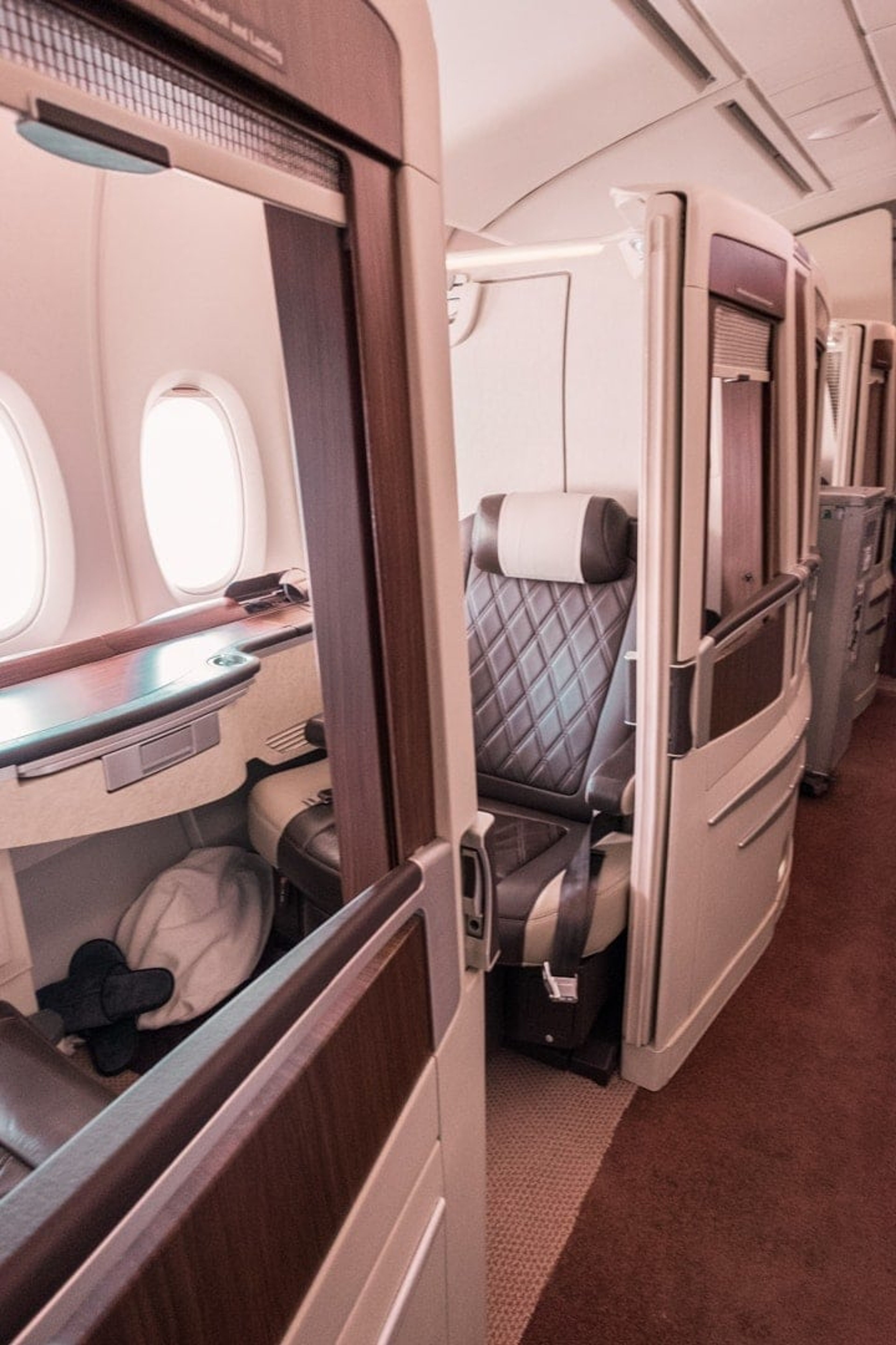 You can expect a separate seat and bed, on demand dining and of course the choice of Dom or Krug champagne followed by a caviar service. Check out my full review of Singapore 777-300er first class and A380 suites.