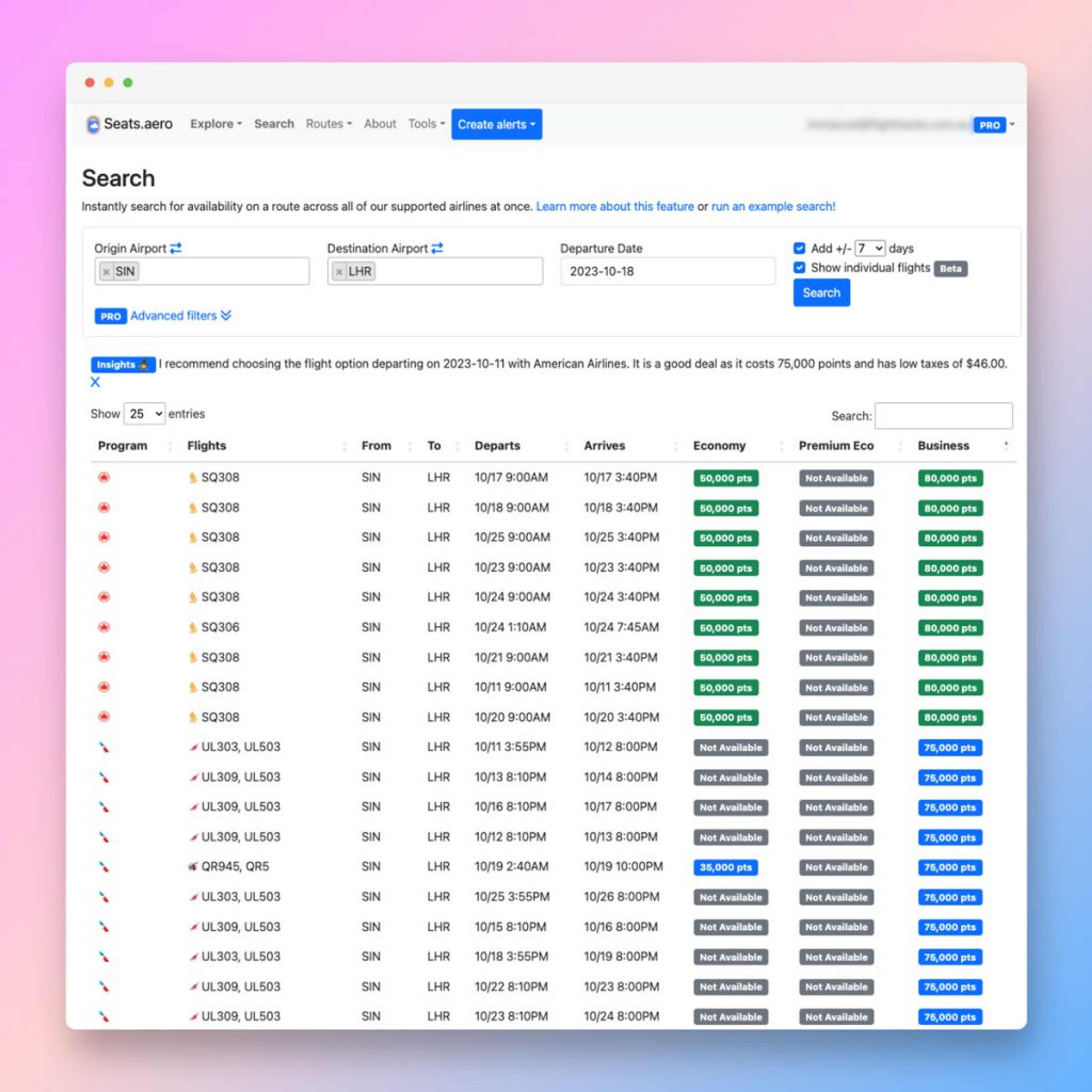 Seats.Aero – Our Secret Weapon