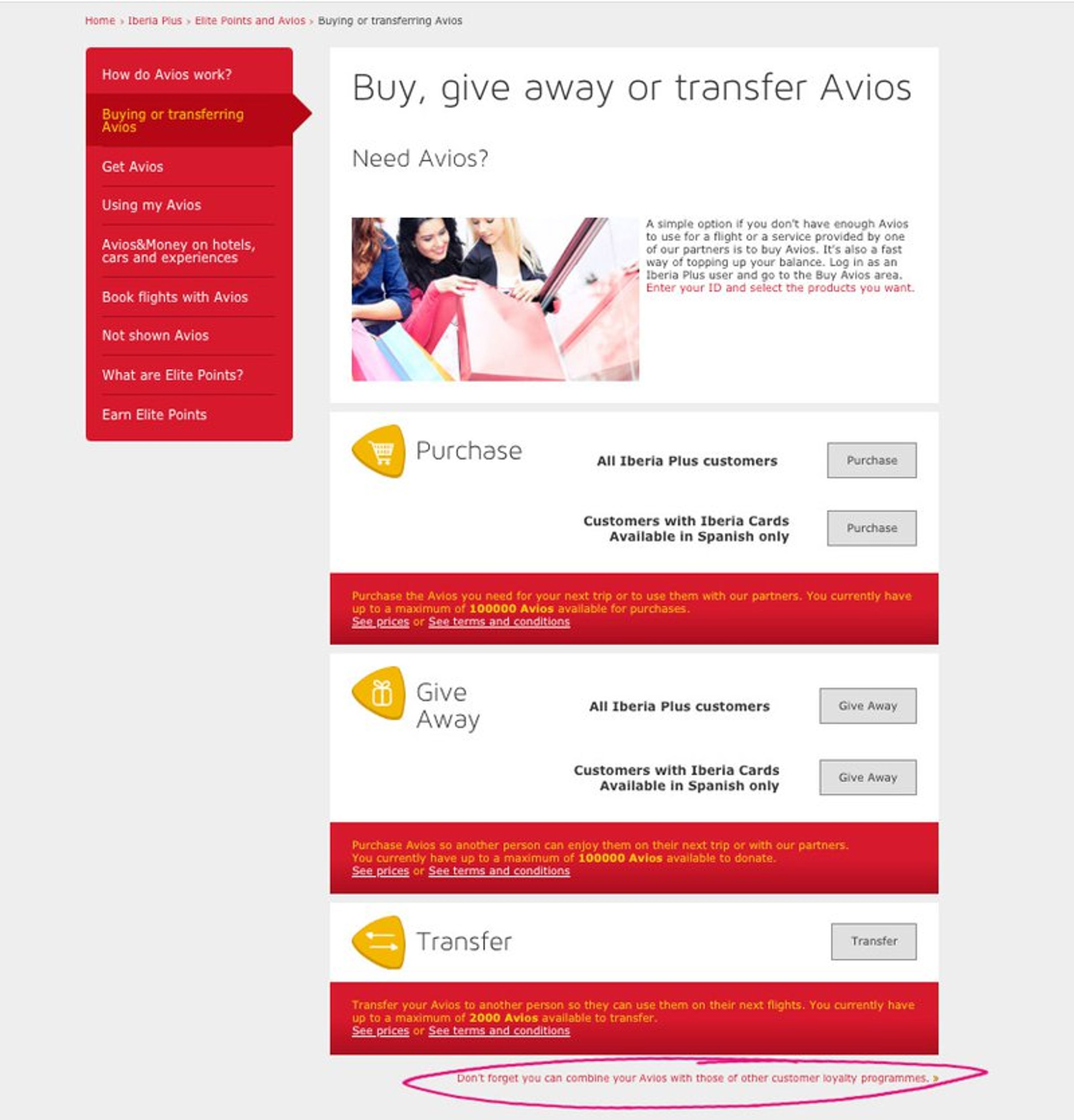 2) Ignore everything on this page and scroll right to the bottom. Look for a plain text link that says ”Don’t forget you can combine your Avios with those of other customer loyalty programmes”.