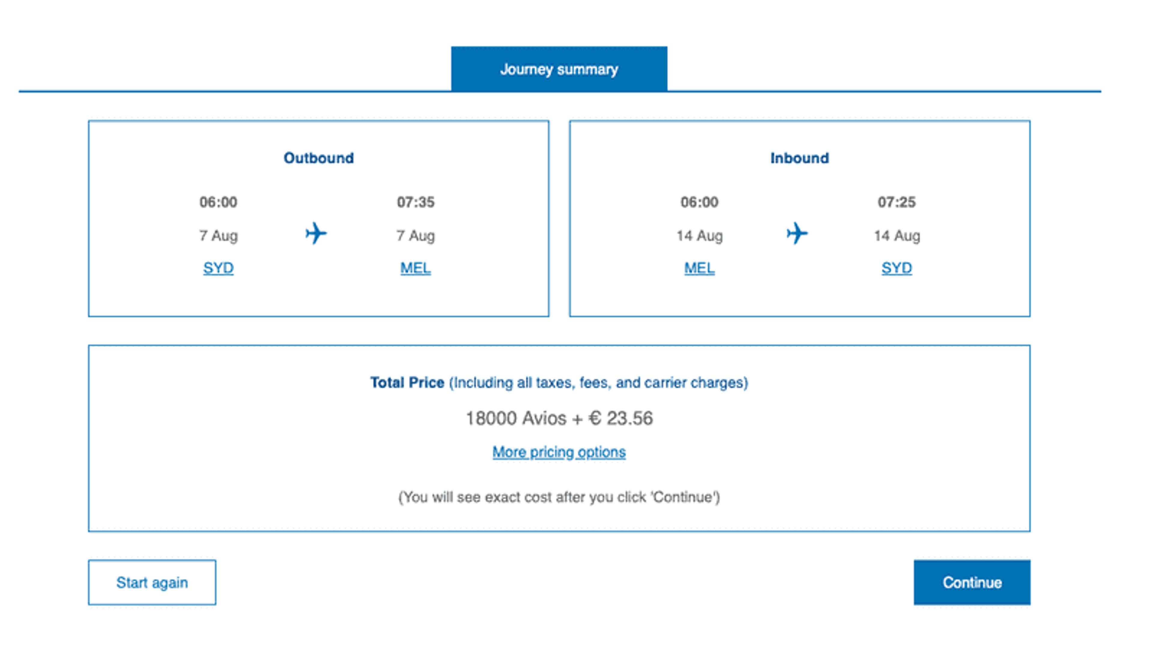 At this price point you’re buying business class tickets from Sydney to Melbourne for only 128 euro or roughly AU$200 on Qantas (since you can easily redeem Avios points for One World partner airlines).