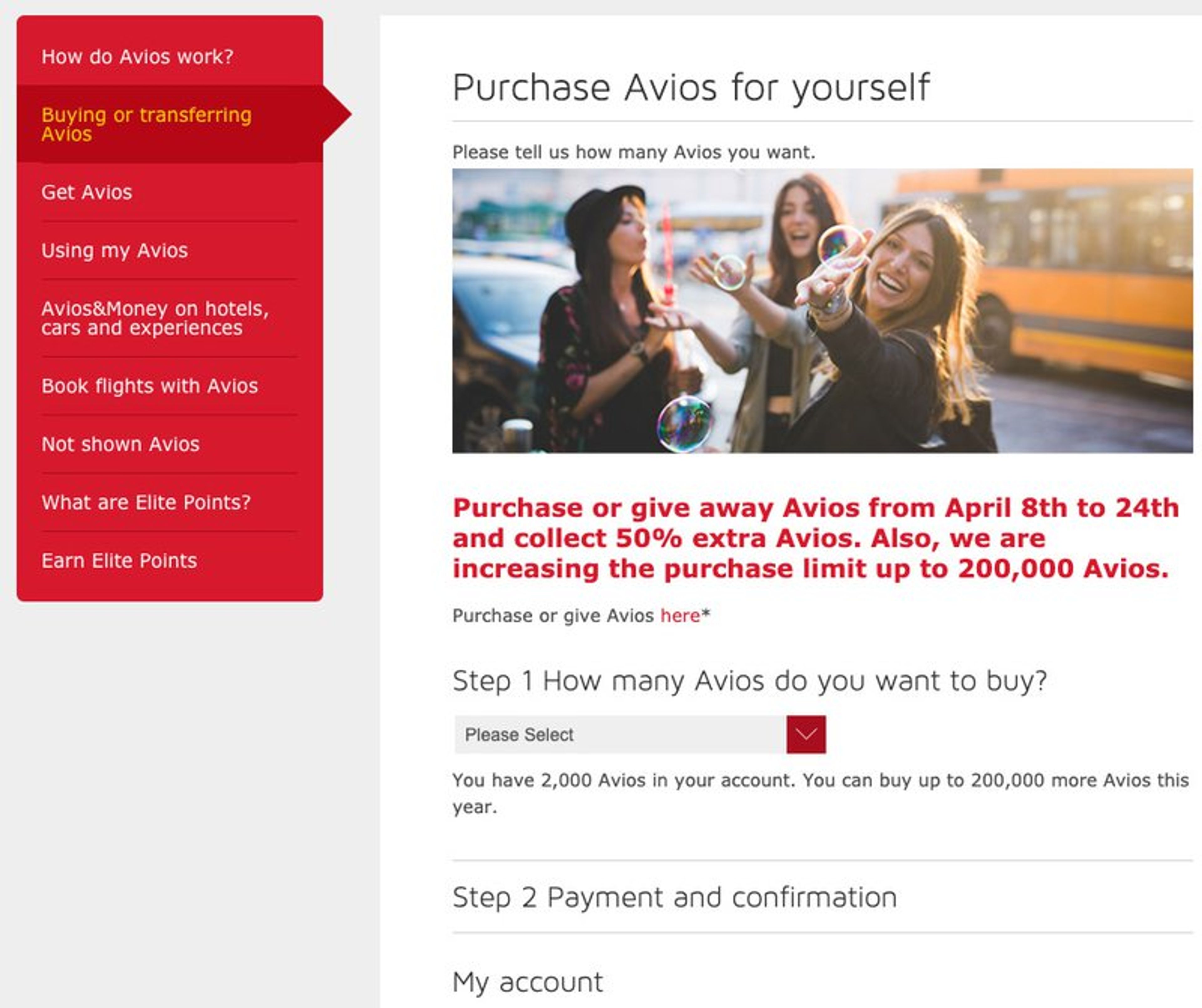Right now Iberia is selling Avios with a 50% bonus from April 8th to 24th, and they’ve also increased the purchase limit to 200,000 which works out to be 300,000 when you include the 50% bonus (up from 100,000 before bonus miles) per year.