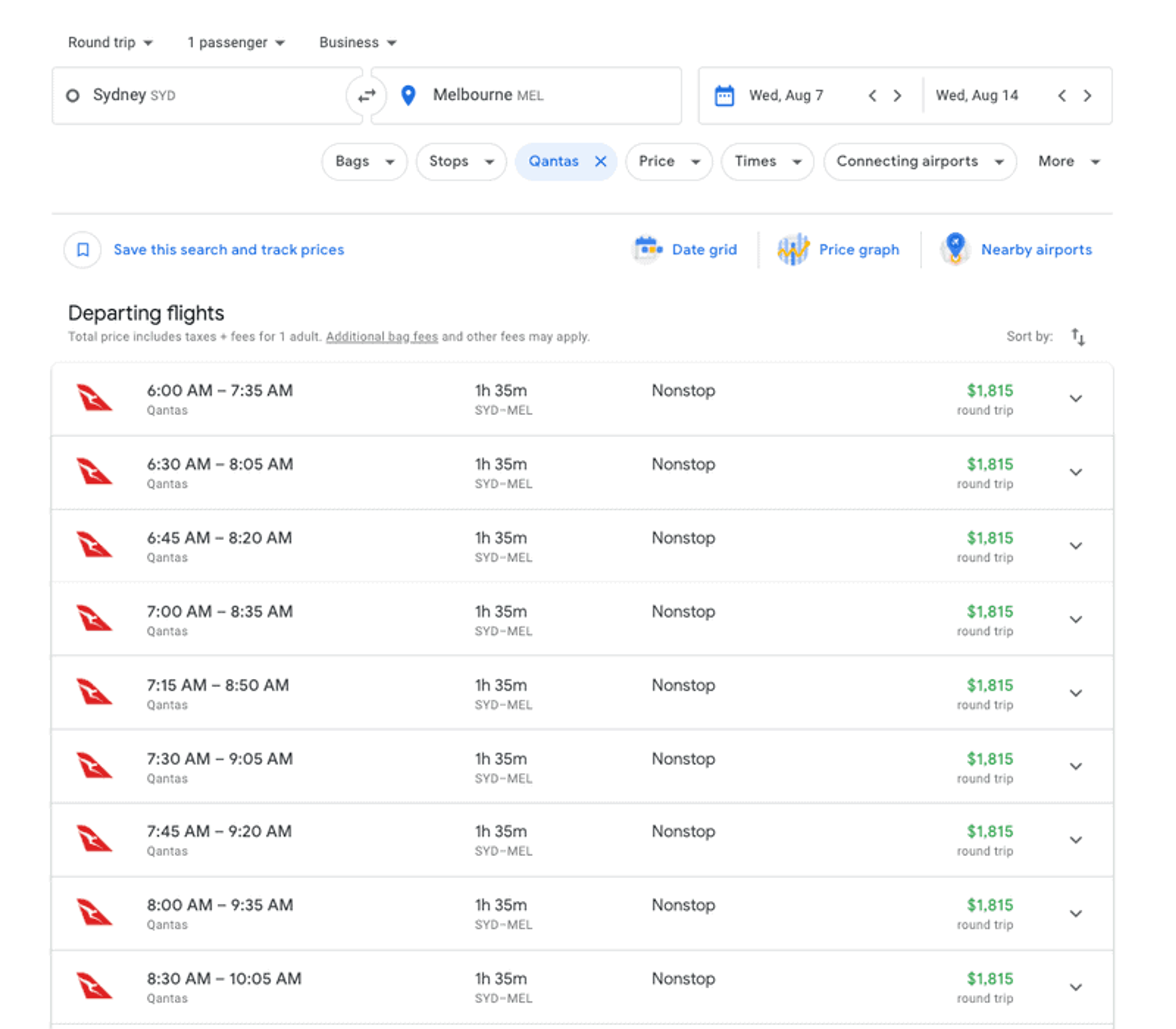 Even in economy, you’re looking at a reasonable price, only 4,500 points are needed between Sydney and Melbourne for example.