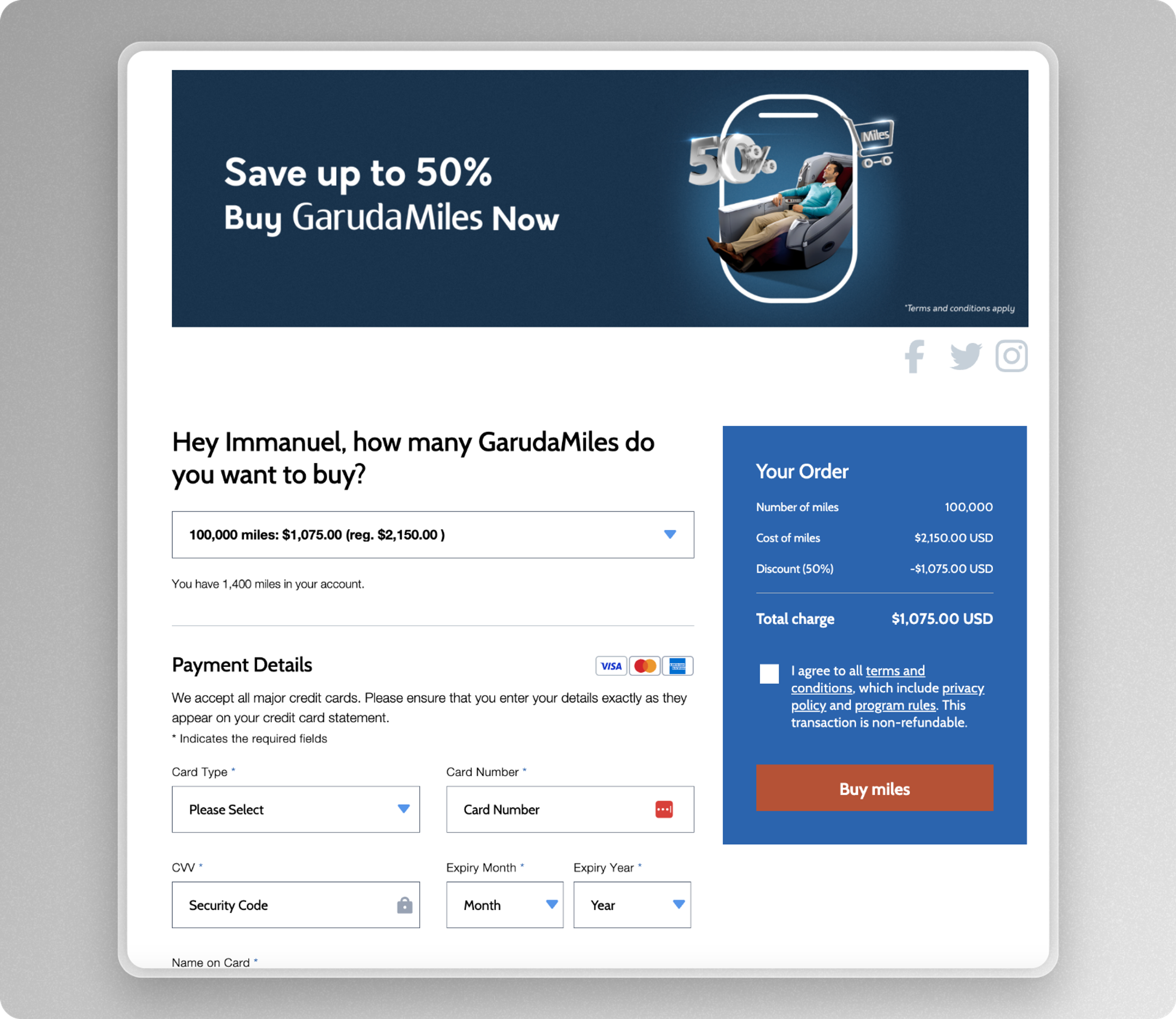 First, you’ll need to sign up for a free GarudaMiles frequent flyer account.