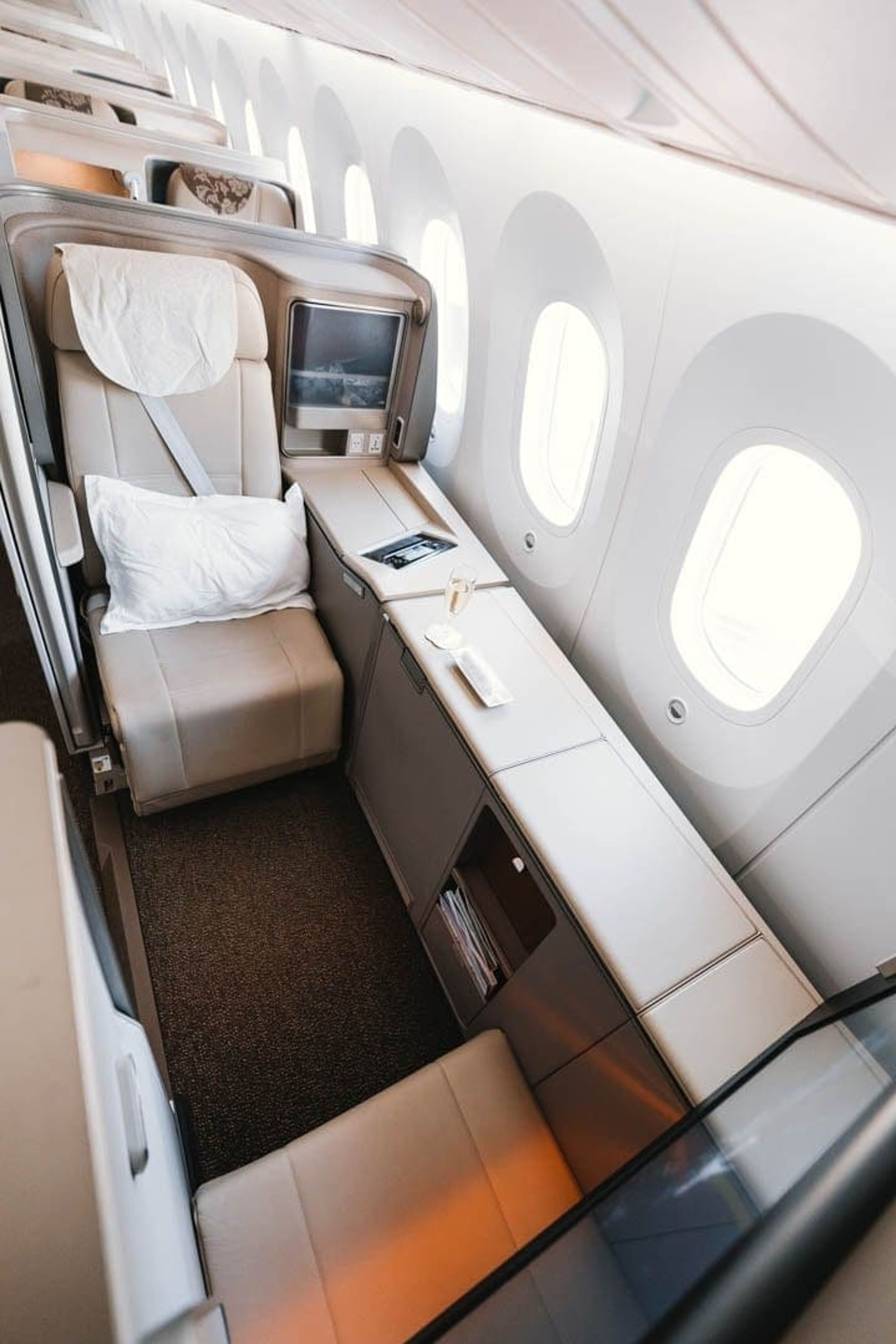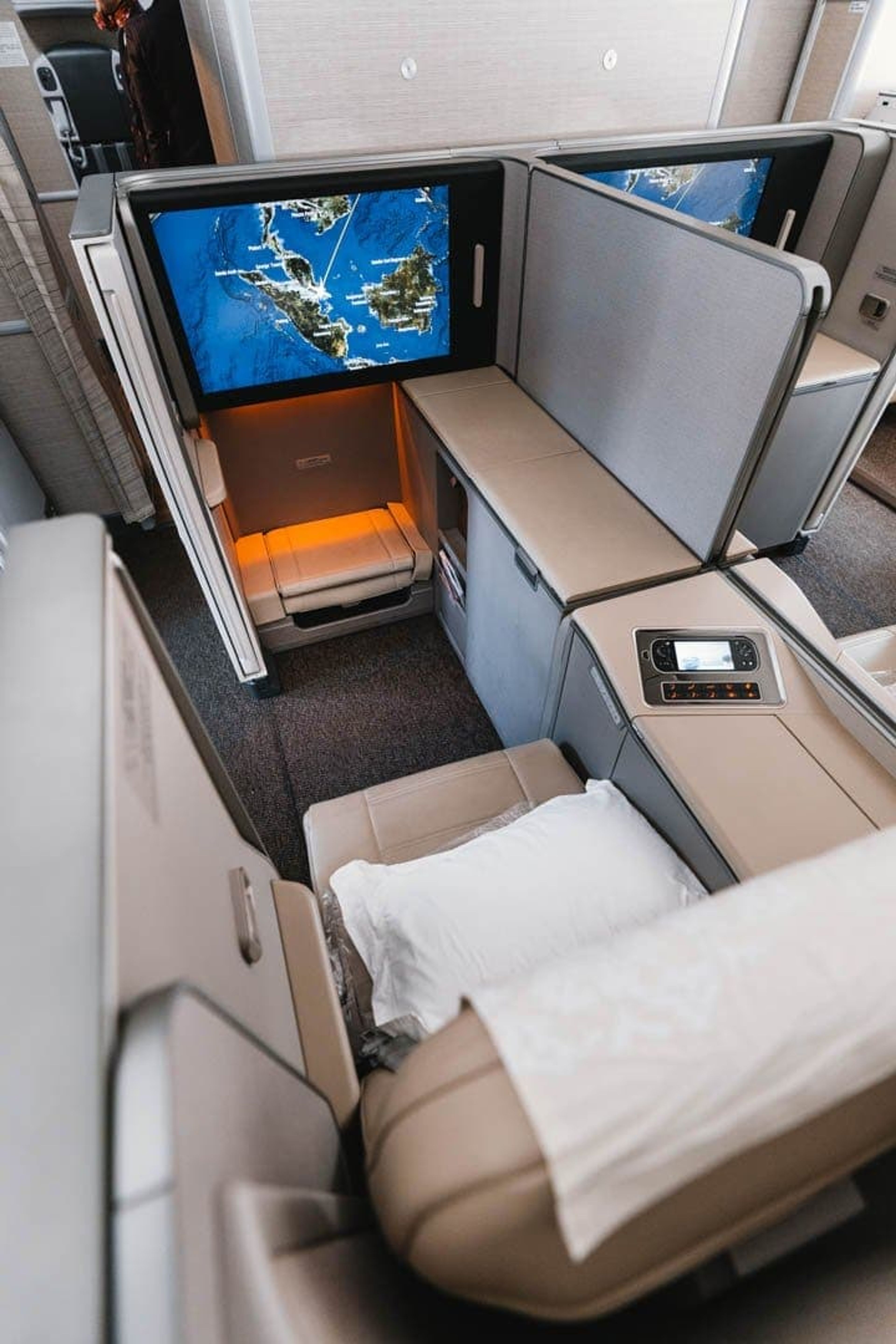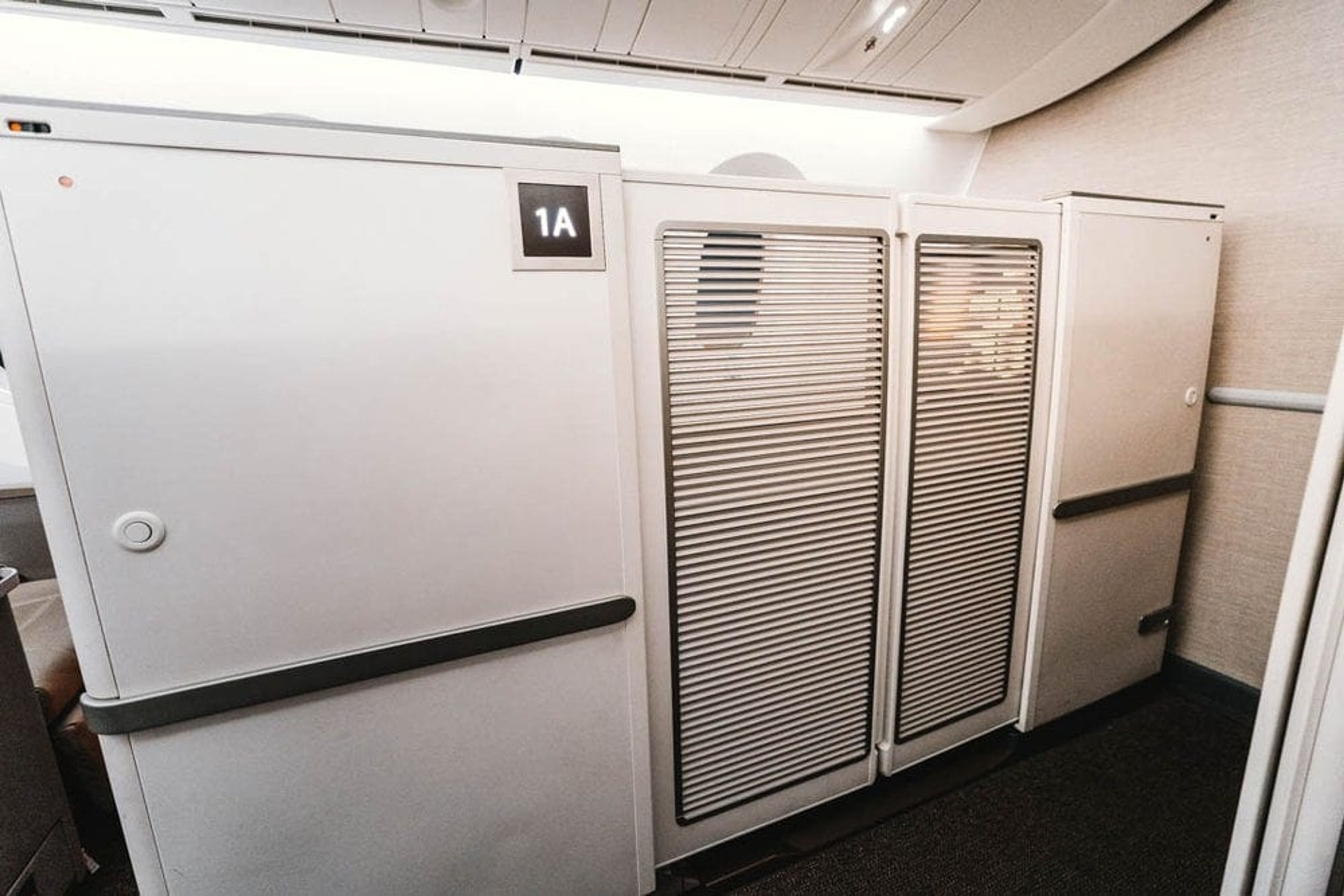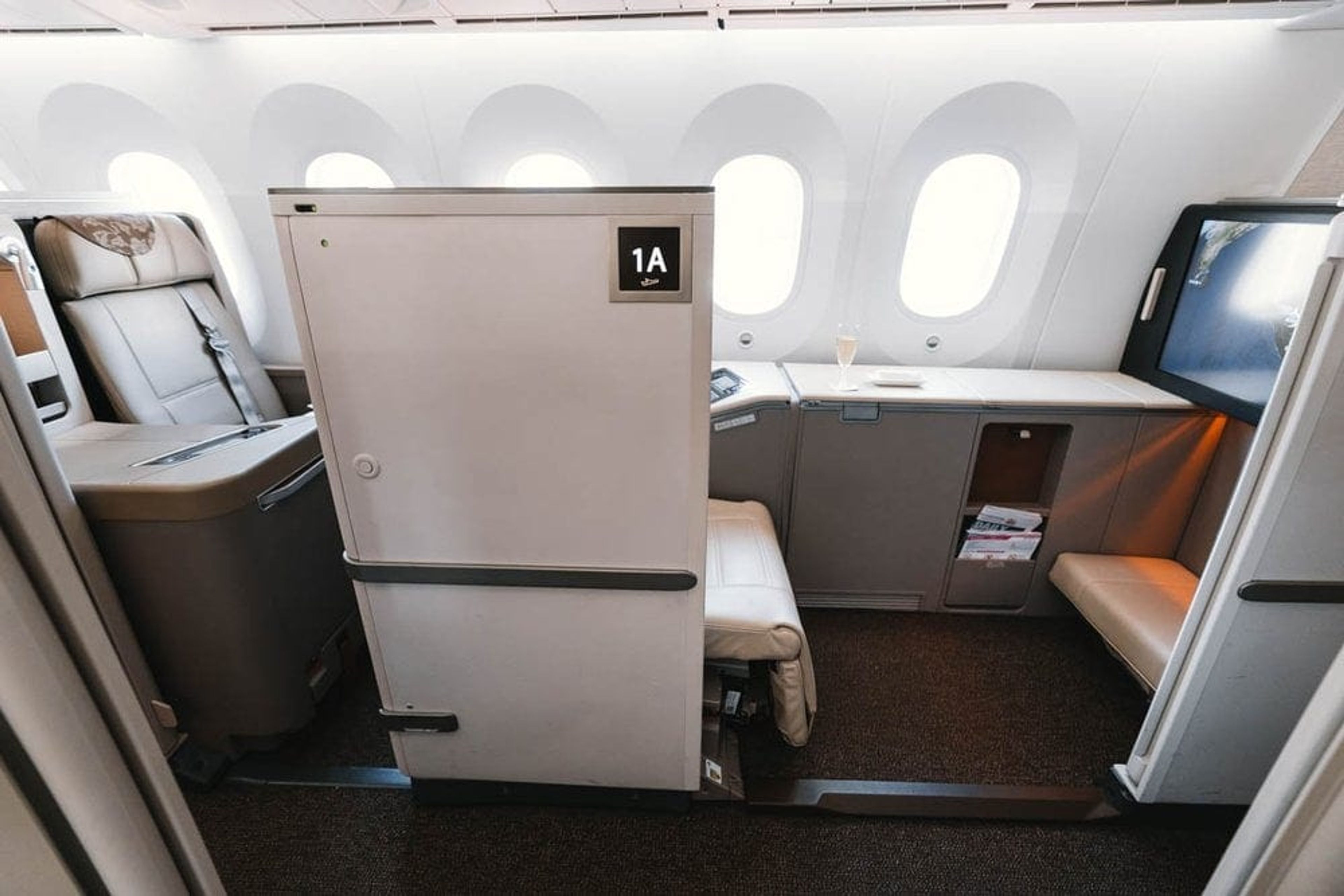 The privacy doors only really work when you’re fully reclined in bed mode. While seated, the doors only reach just above the waist so fellow passengers and crew can look straight in your “suite”.