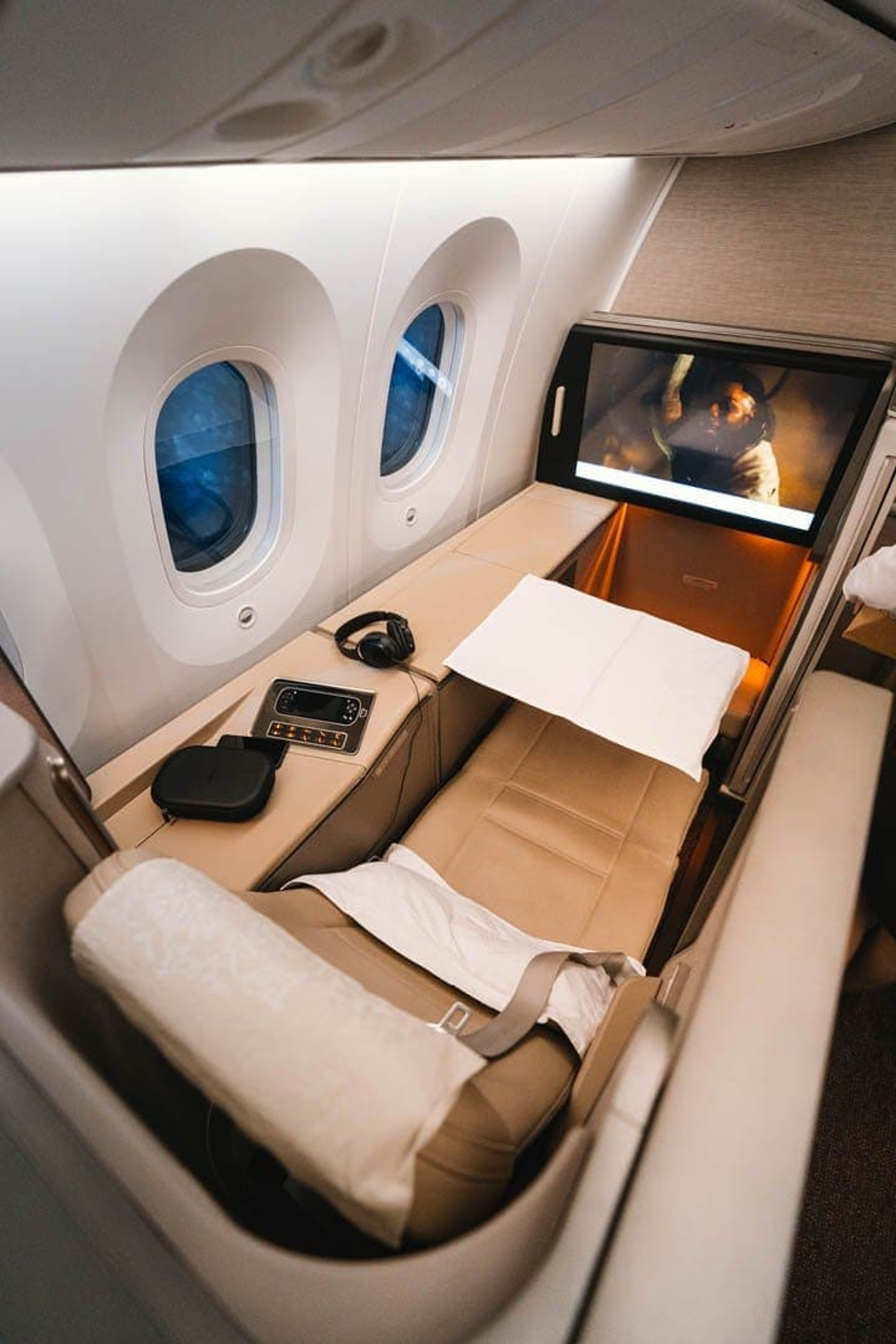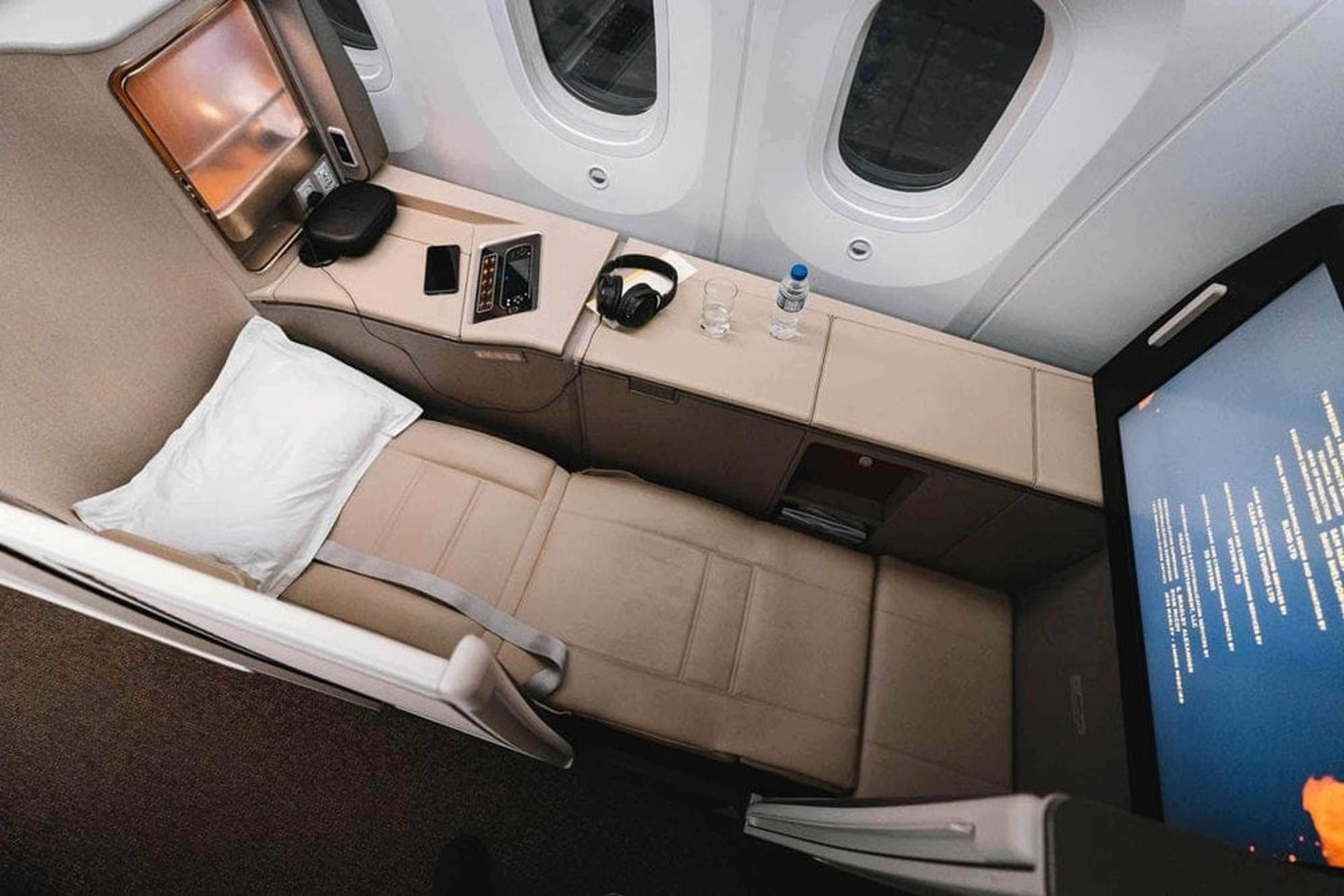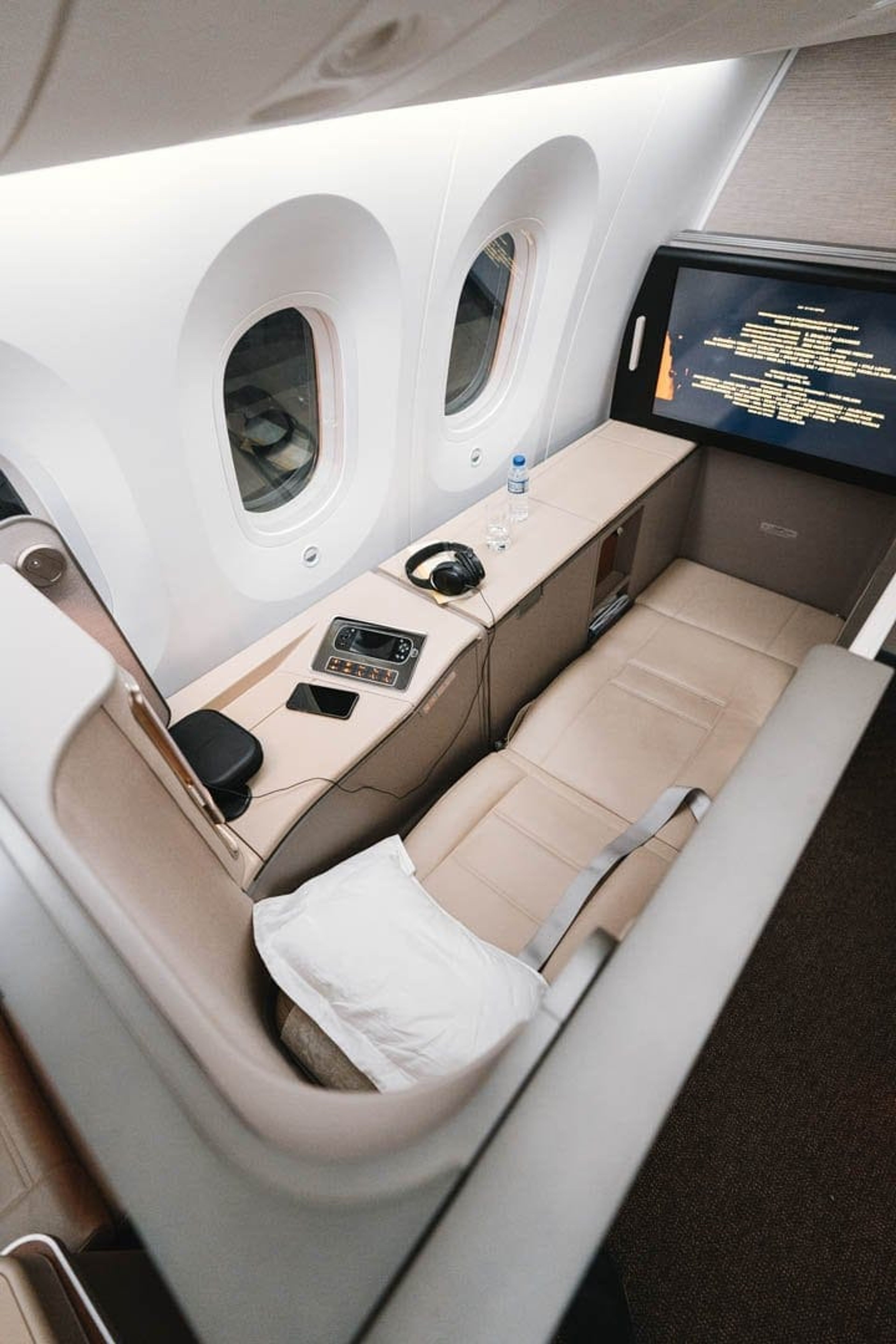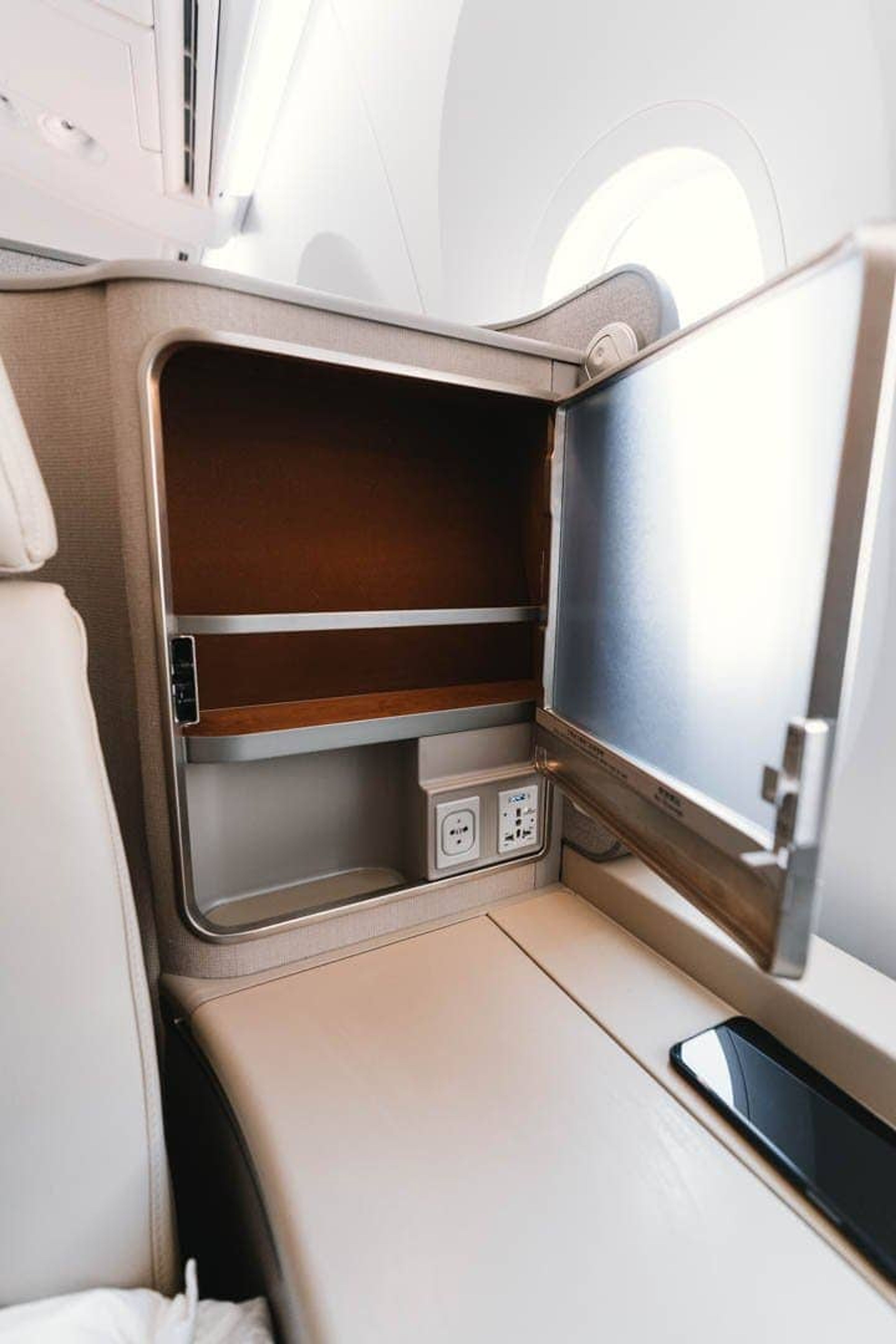 The privacy doors only really work when you’re fully reclined in bed mode. While seated, the doors only reach just above the waist so fellow passengers and crew can look straight in your “suite”.