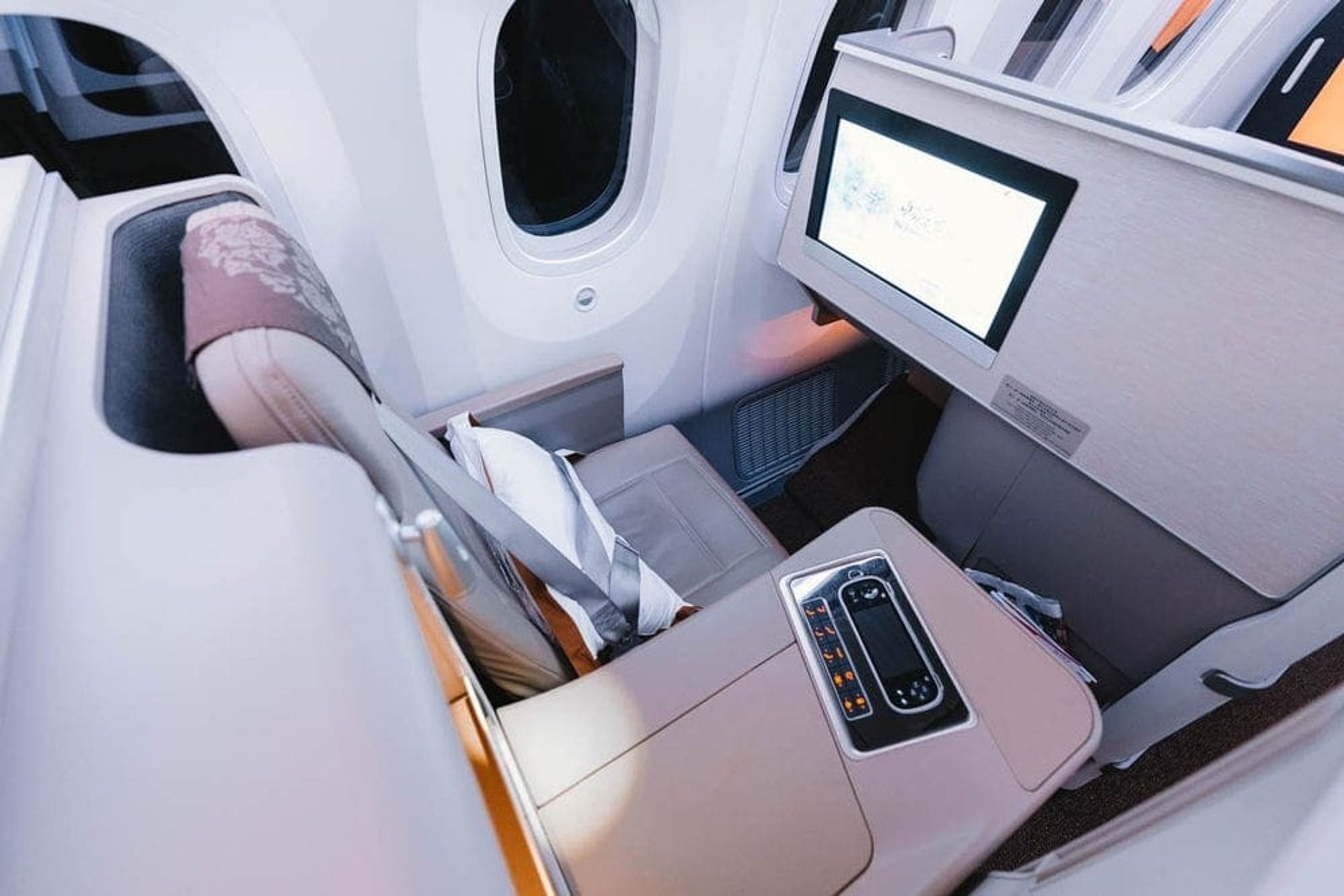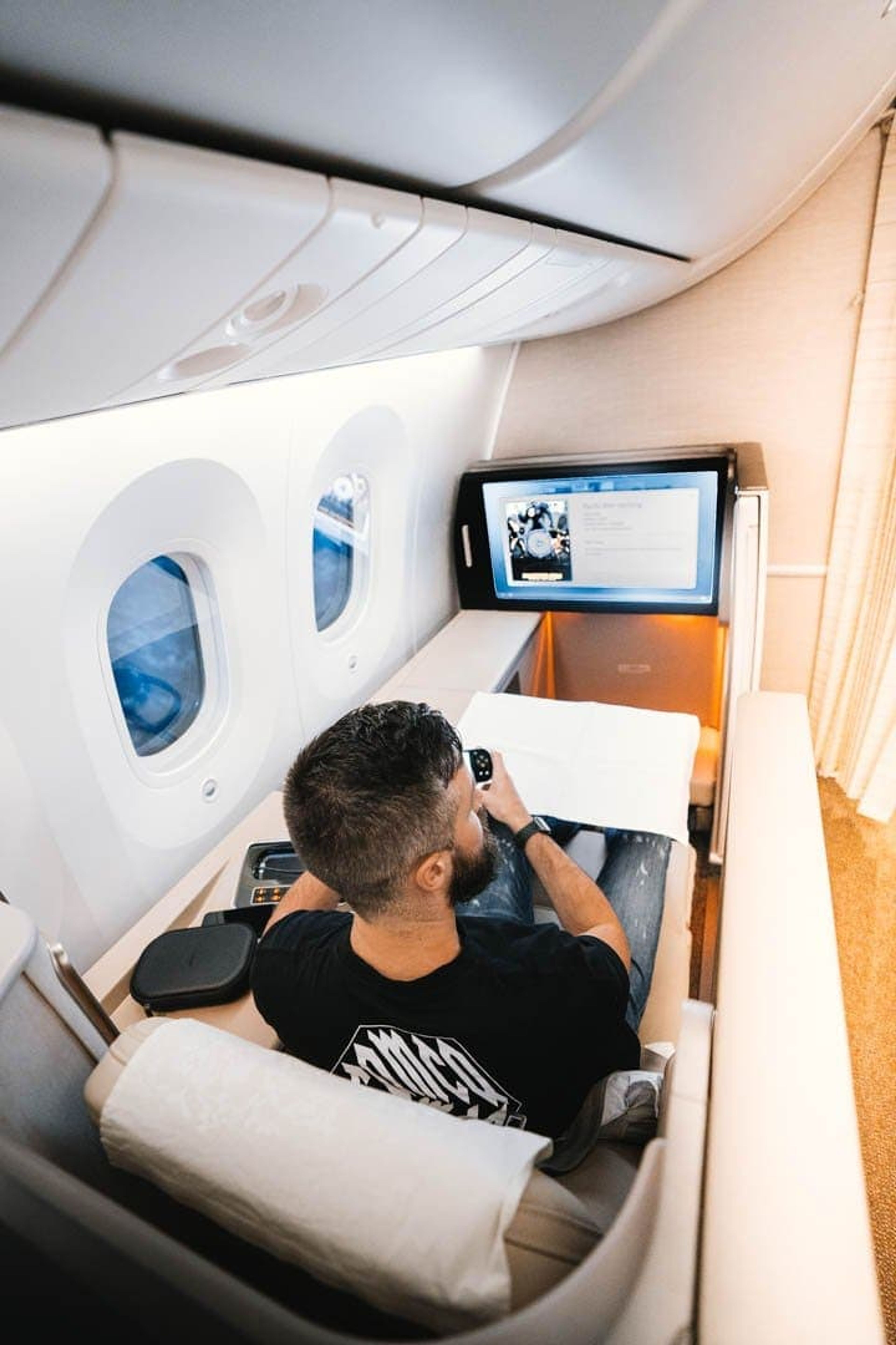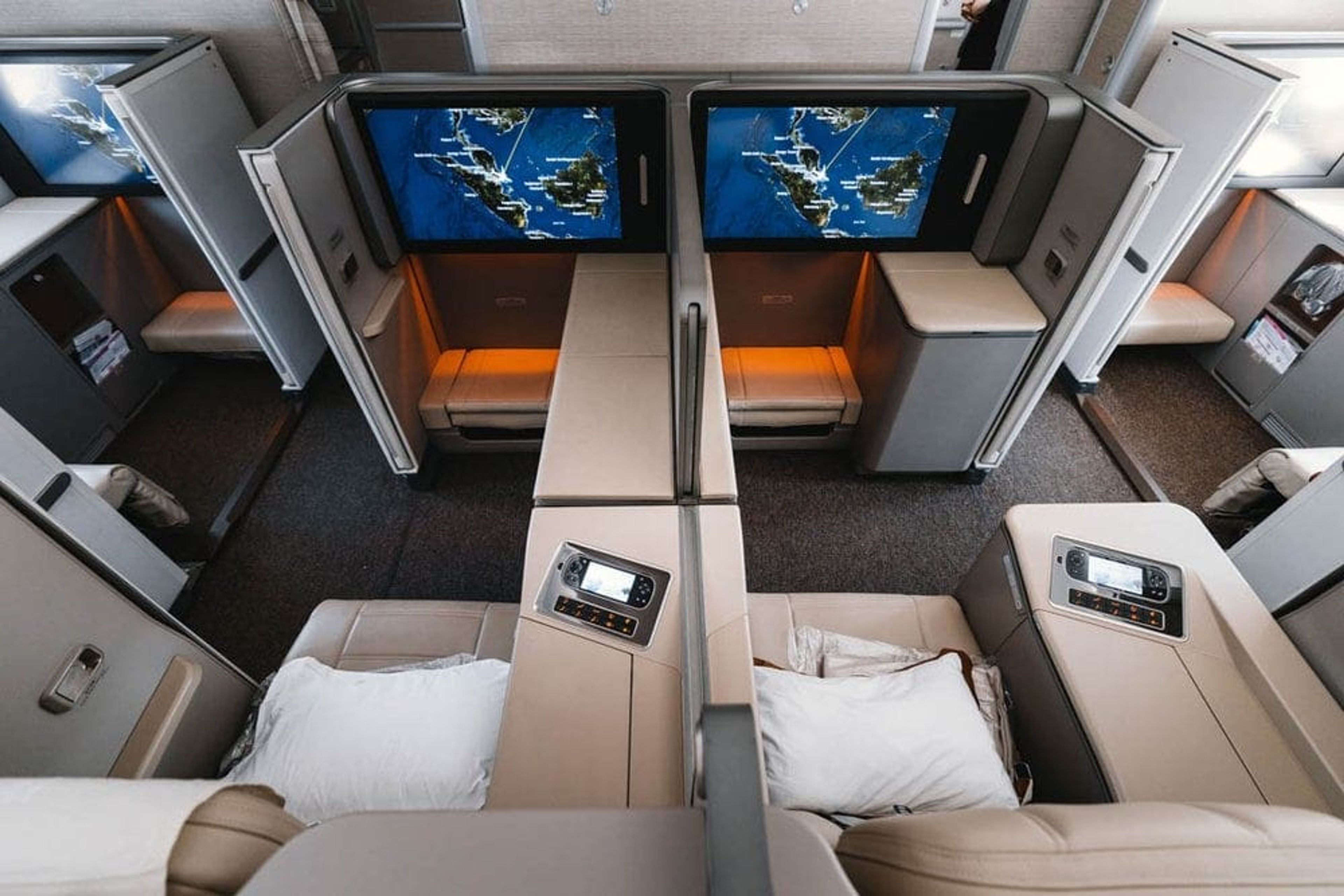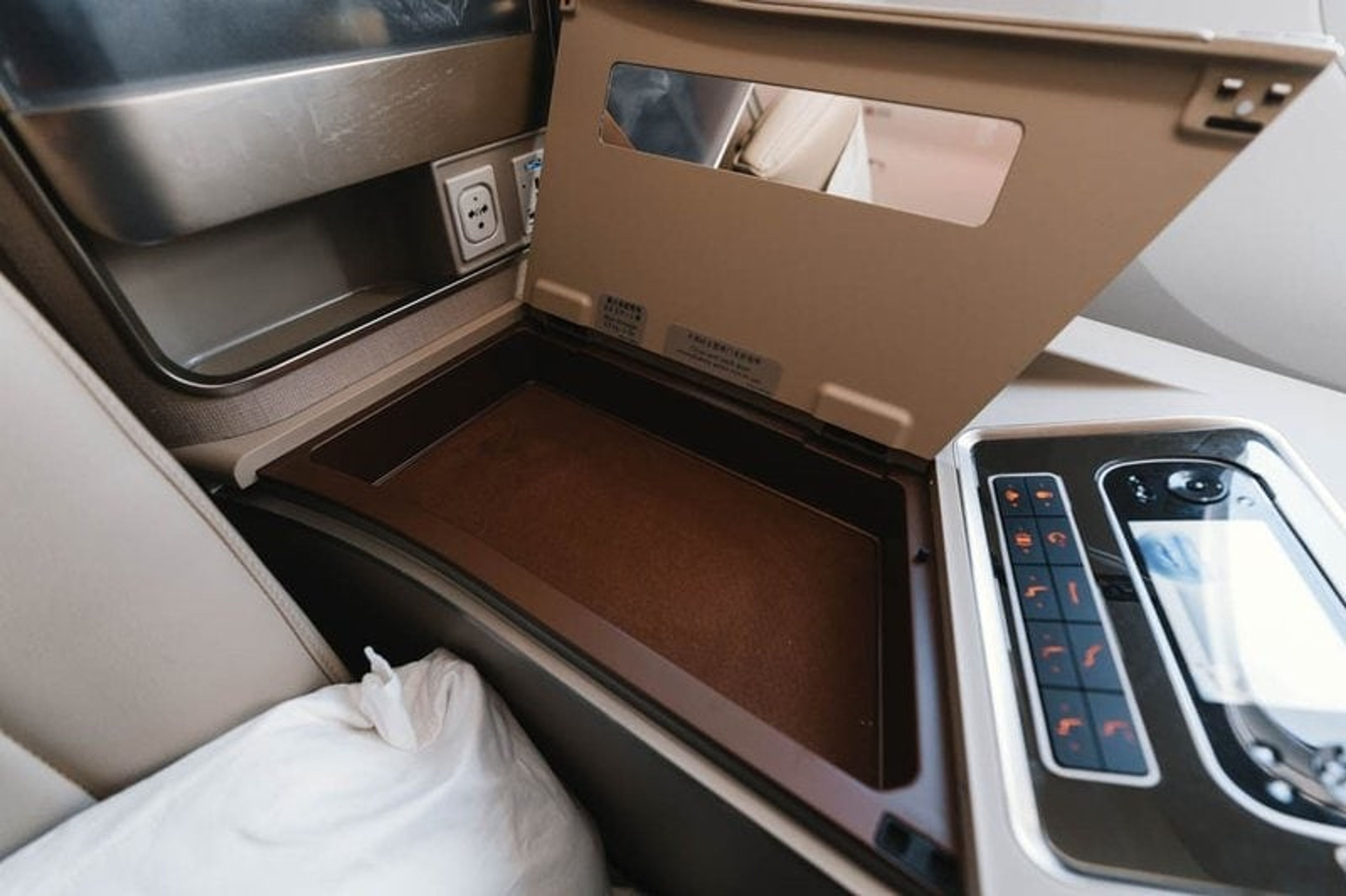 The privacy doors only really work when you’re fully reclined in bed mode. While seated, the doors only reach just above the waist so fellow passengers and crew can look straight in your “suite”.