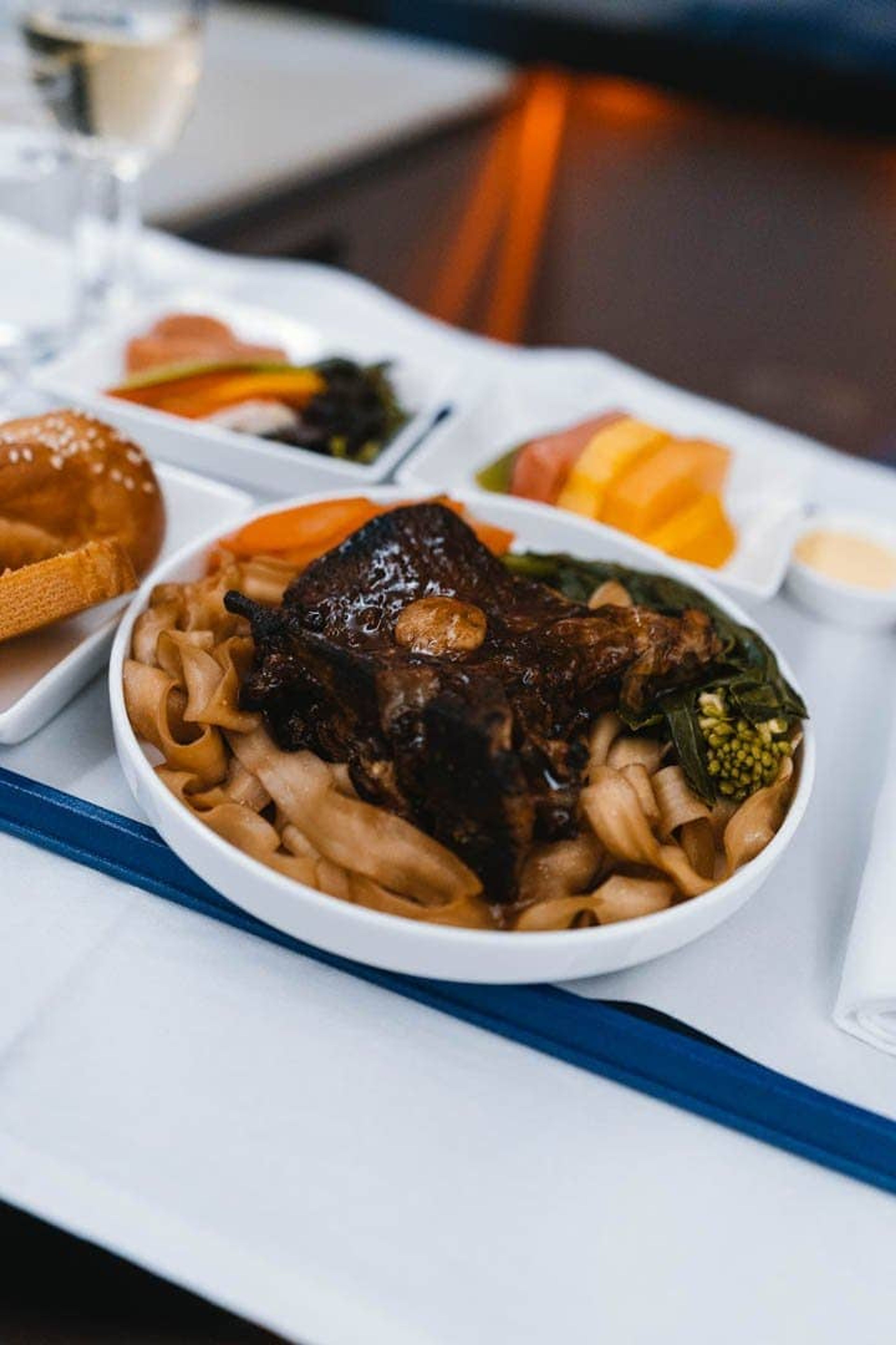 The food menu was equally uninspiring and far from first class. I opted for the “Hand cut noodle with pork loin”. The loin was of course way overcooked and considering it was still on the bone, could probably be used as a weapon.