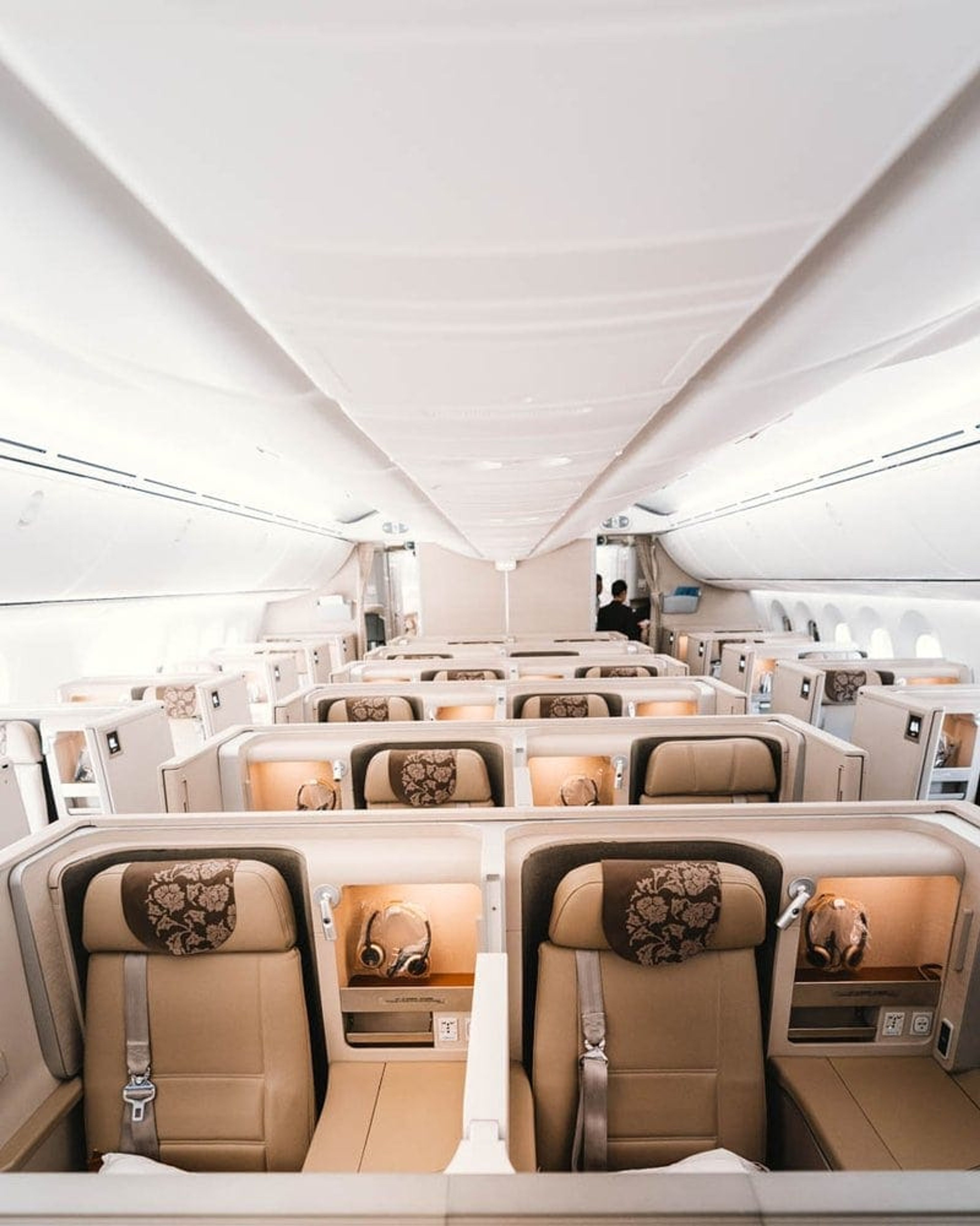 Boarding was efficient, and I soon realised why. Walking through the front door of the 787 it turned out no one else was flying business, let alone first class.