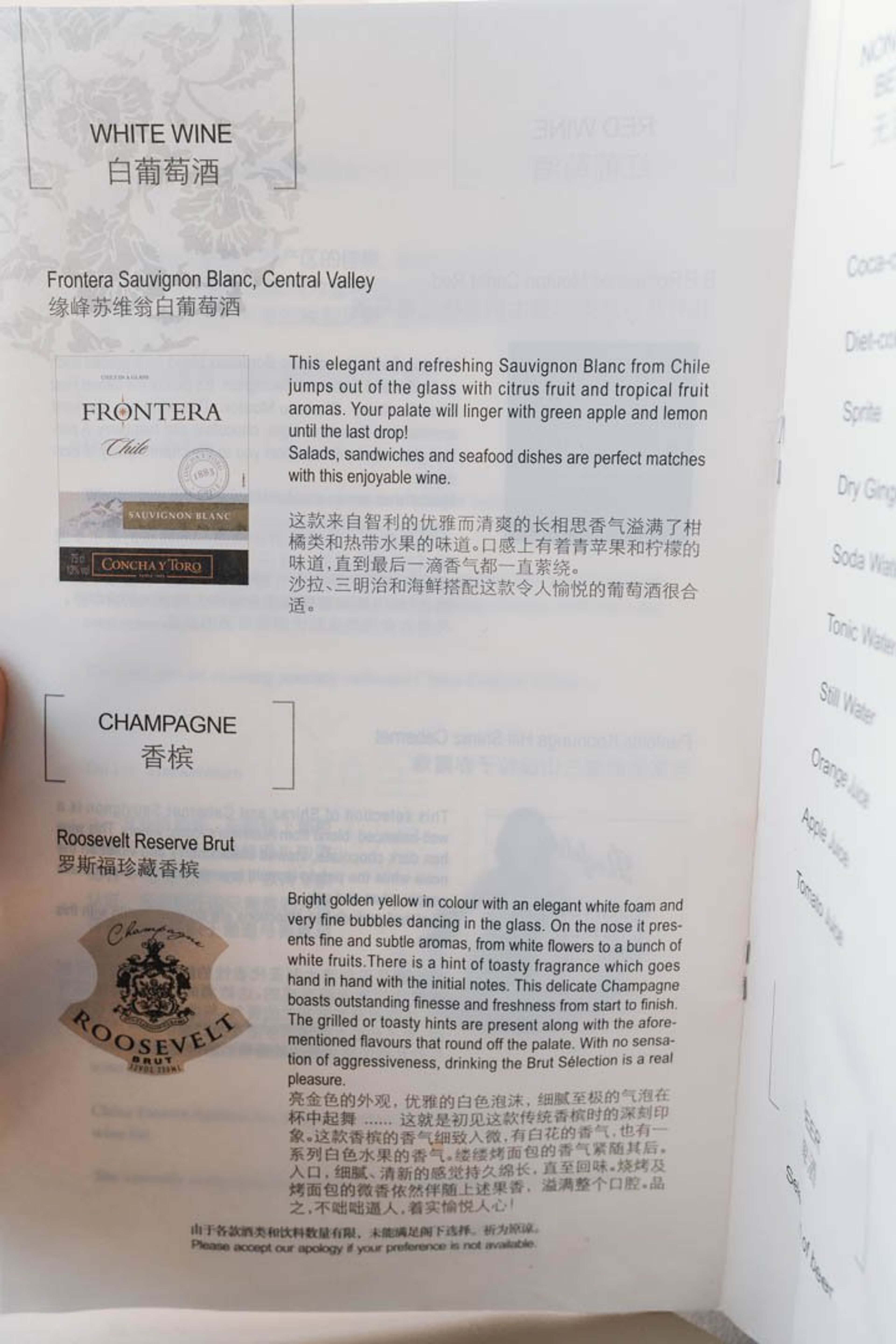 As it turned out, the first class menu was, in fact, a business class menu; which would closely resemble what other airlines would serve up in economy class. Same was the case for the wine list; nothing about it was first class.