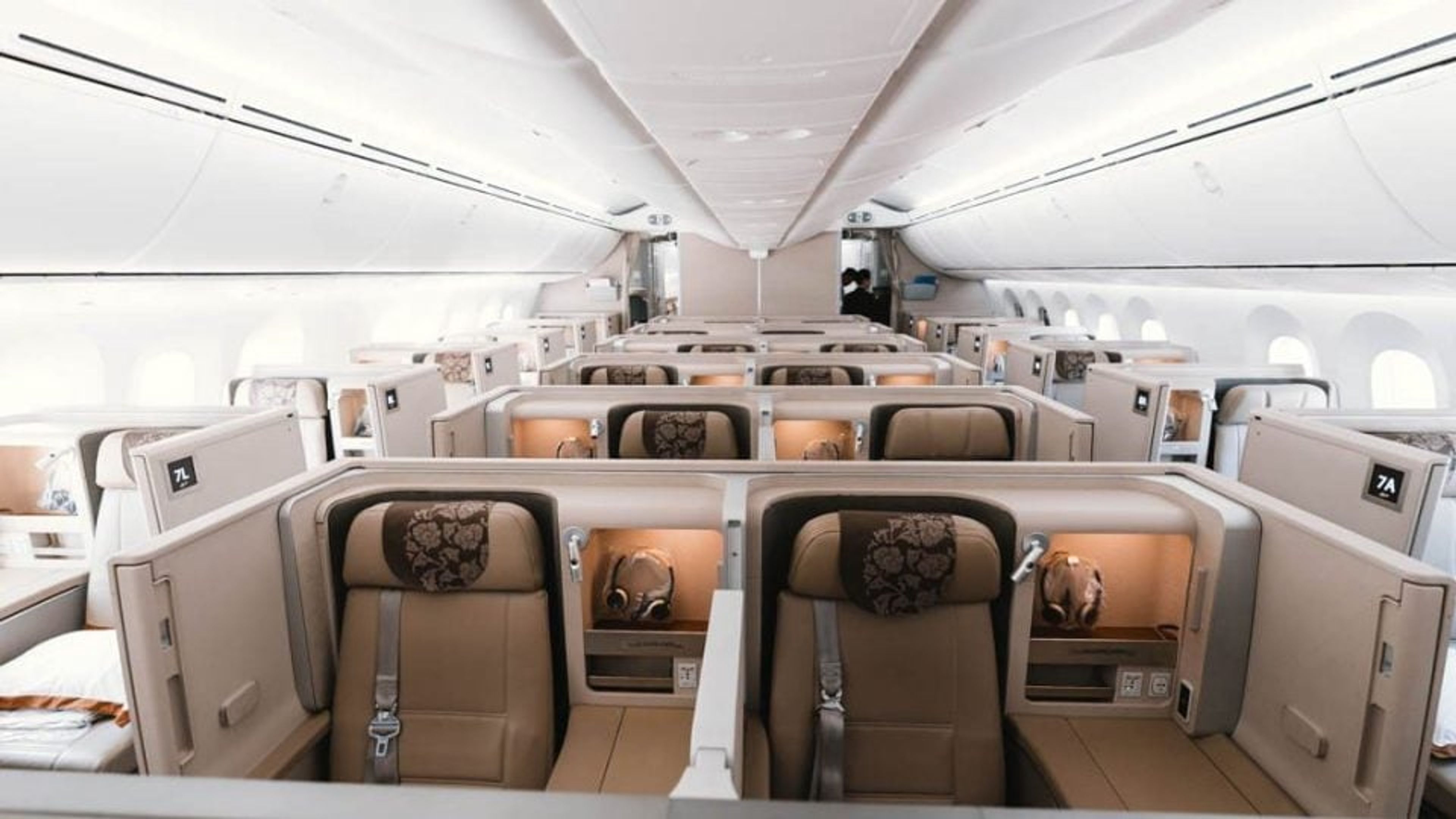 My initial thoughts were: hang on, where is the first class cabin? At first glance, one might think that business and first are exactly the same. However on closer inspection, you can see the difference between both seat designs.