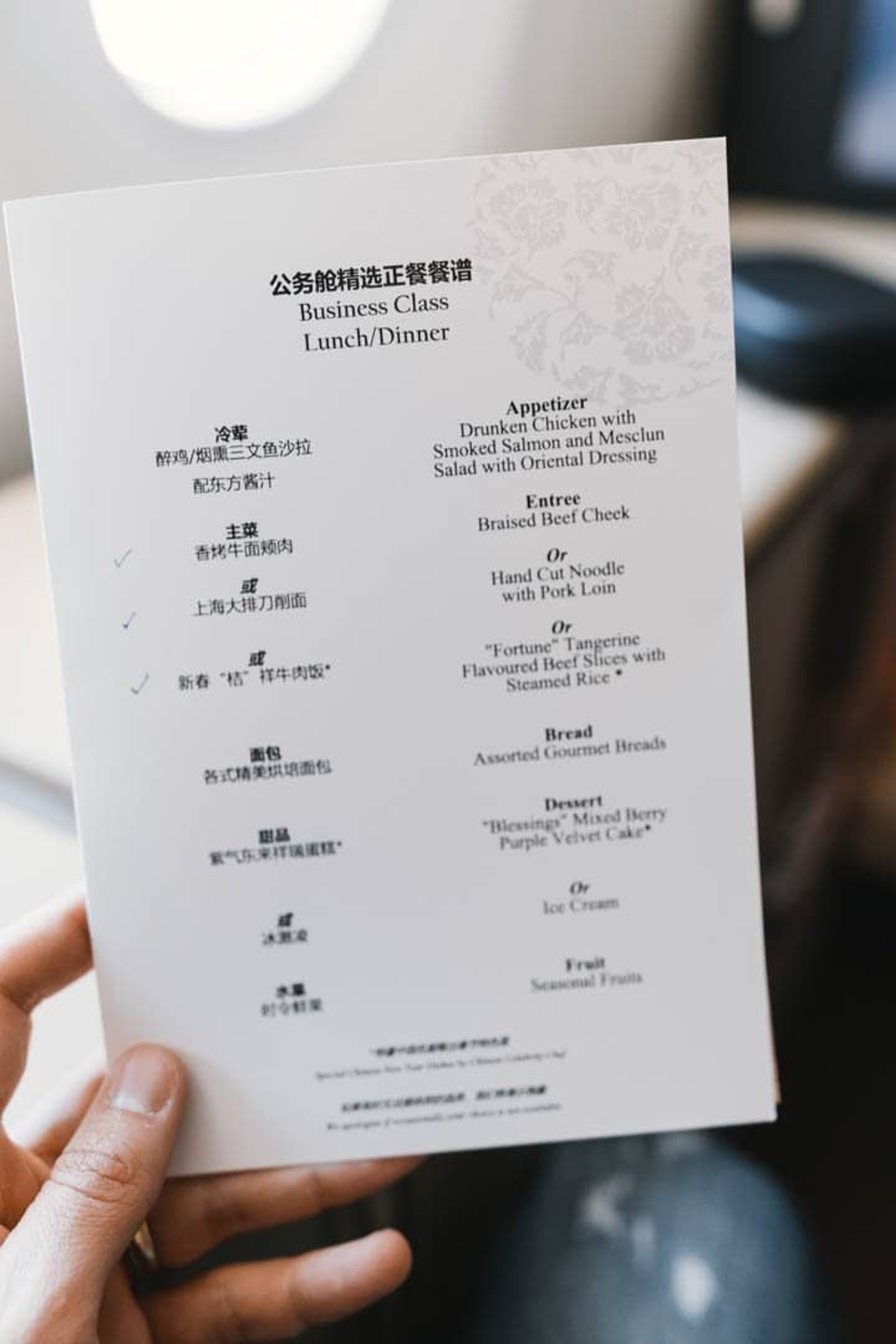 I knew this flight would be interesting, but I was somewhat disappointed with the food & beverage choices. I've read other reviews of China Eastern long haul business where there's at least a proper first-class menu and real champagne.