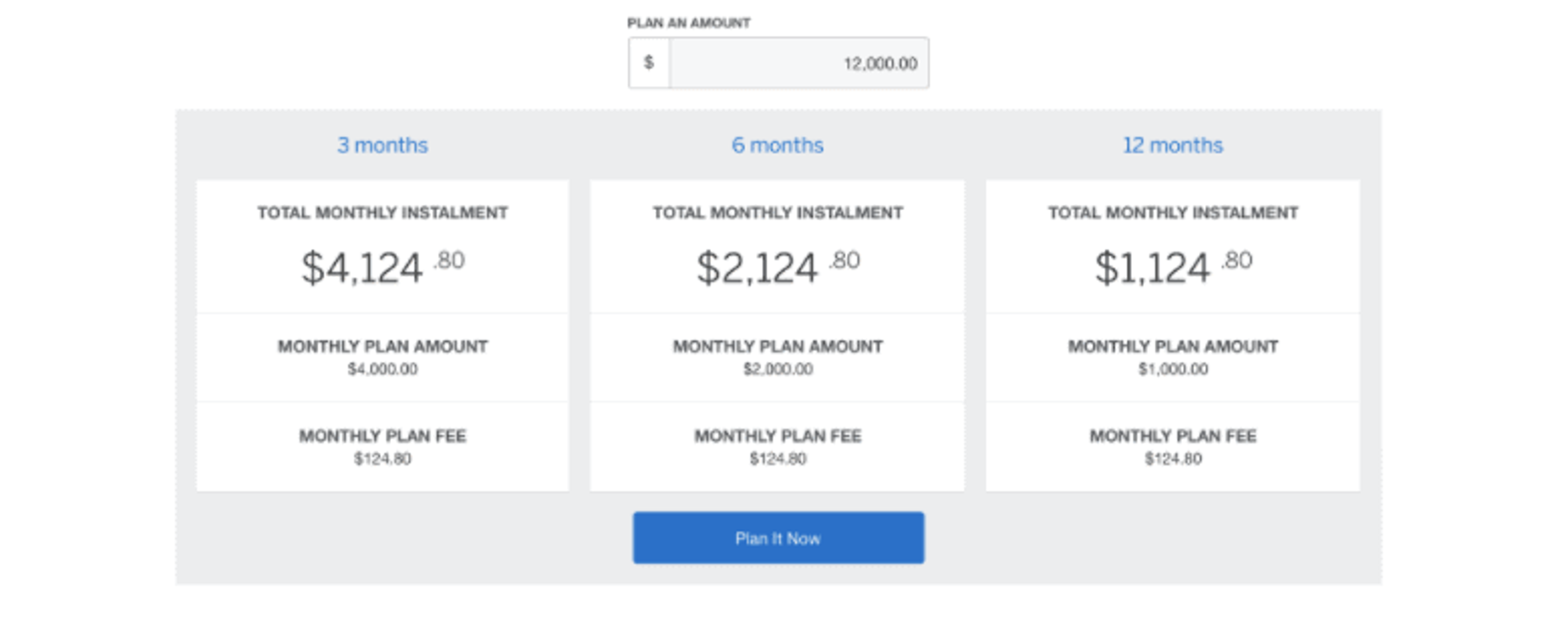 Plan It allows Amex Credit Card Members to set up payment plans of 3, 6, 9 or 12 months with an up-front low monthly fee to help you manage your cash flow(no need to apply, it’s automatically included). You know exactly how much to pay each month, and plans can be set up in seconds.