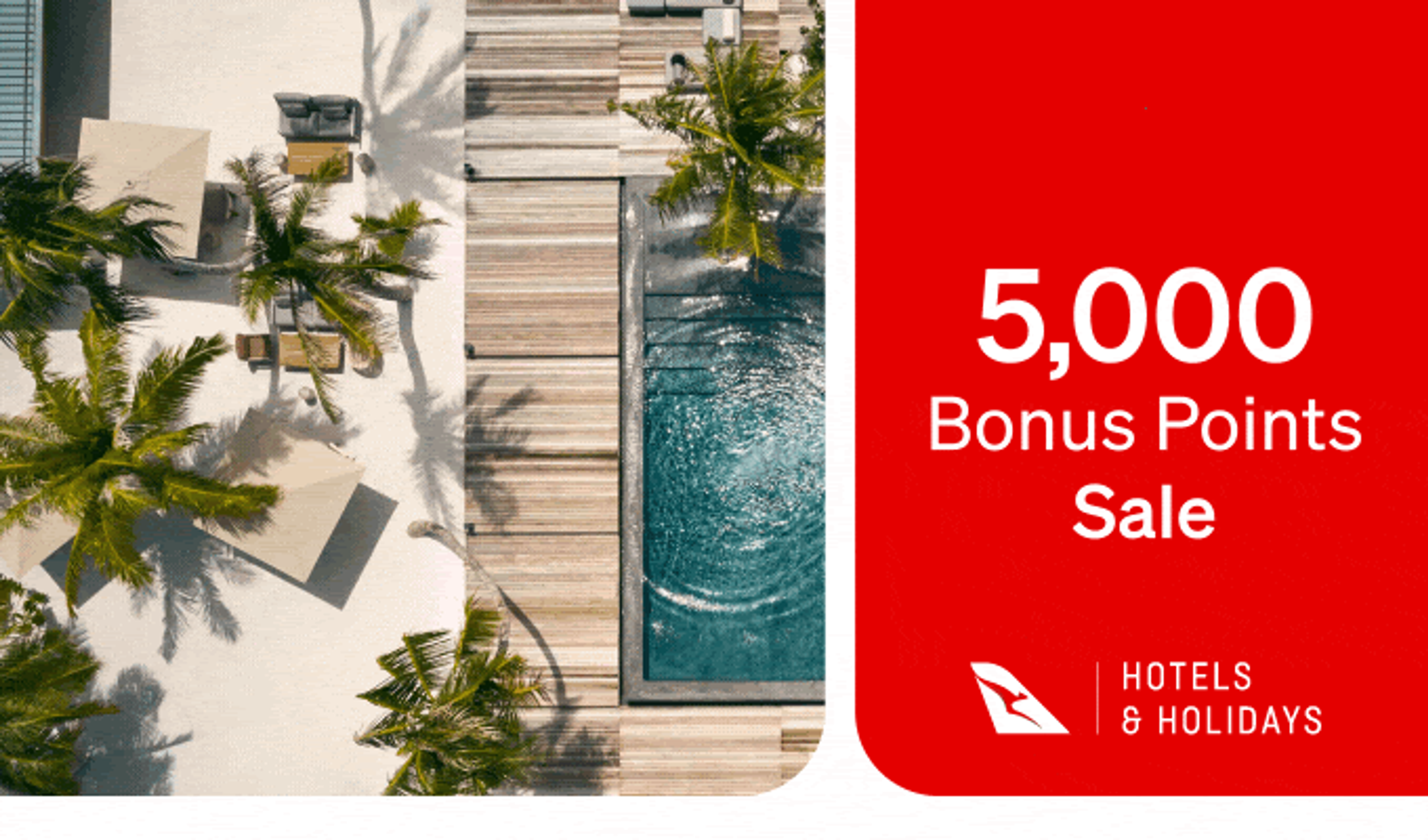 - 5,000 Bonus Qantas Points on any international hotel or holiday package booked through Qantas.