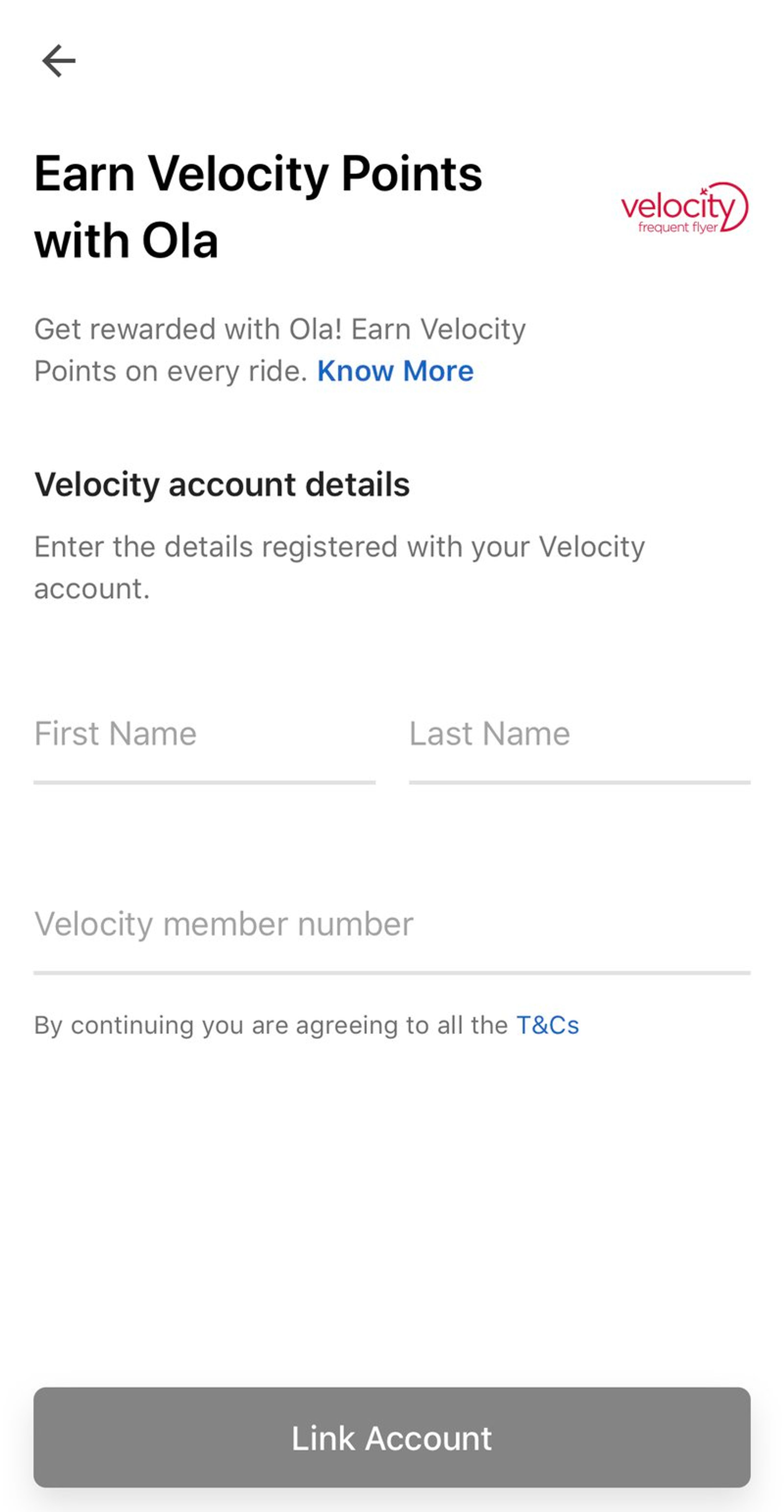 Earn Velocity Points On All Ola Rides