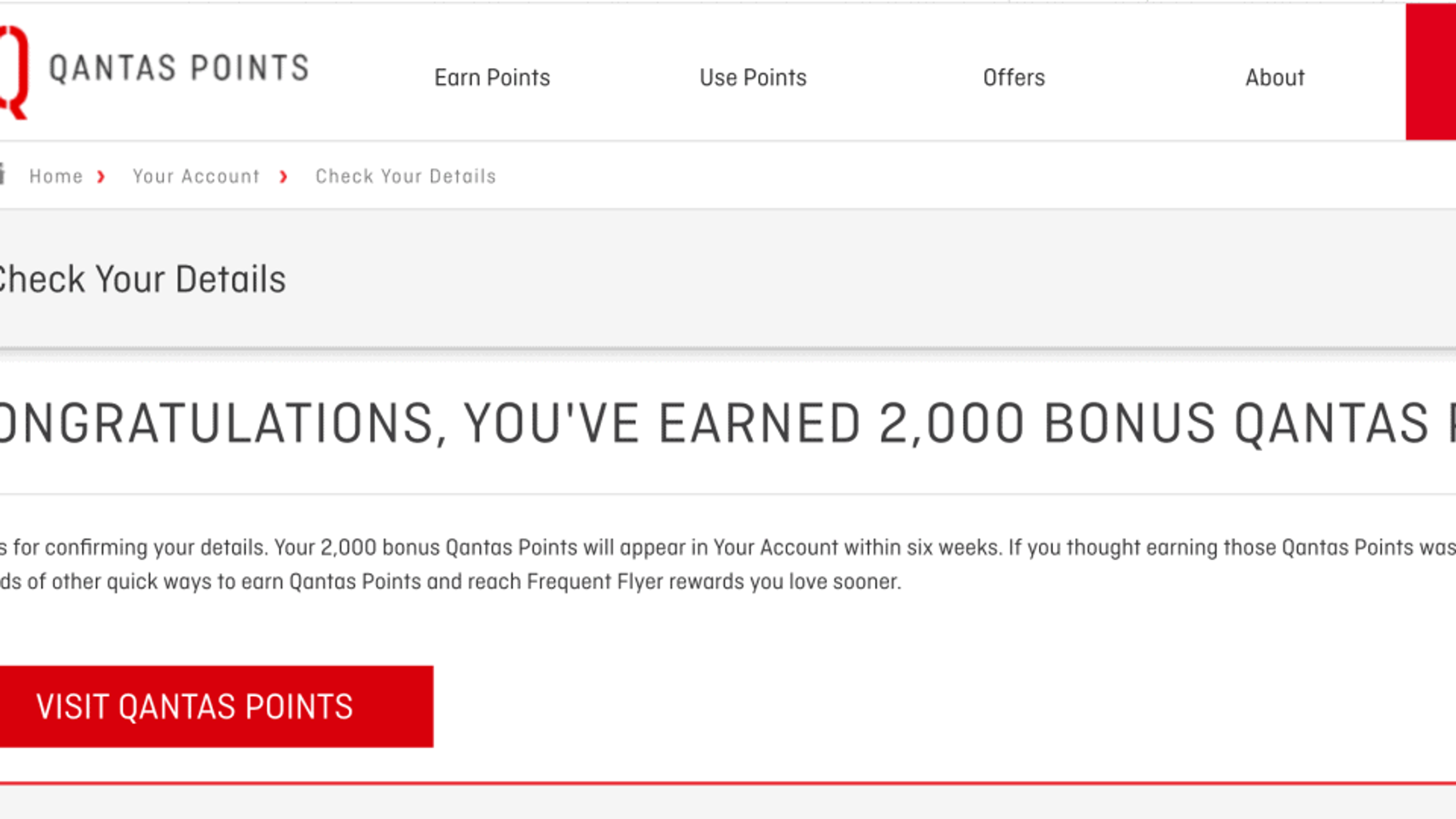 Once you have completed the check-up a message will tell you that you just earned 2000 Qantas bonus points.