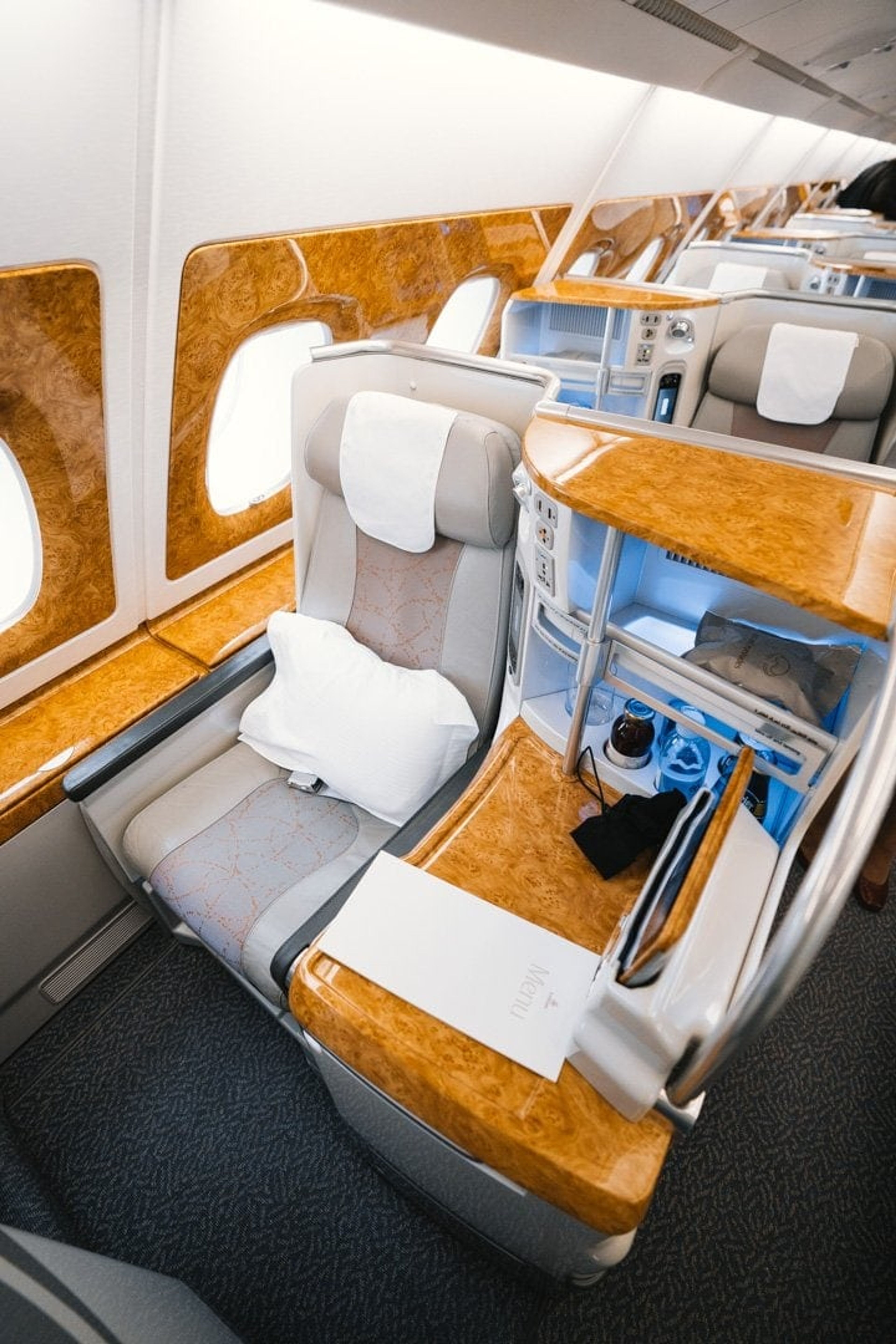 I would say Emirates business class is a no-frills, fun product. The seat is private (if you pick the direct window seat) and comfortable.