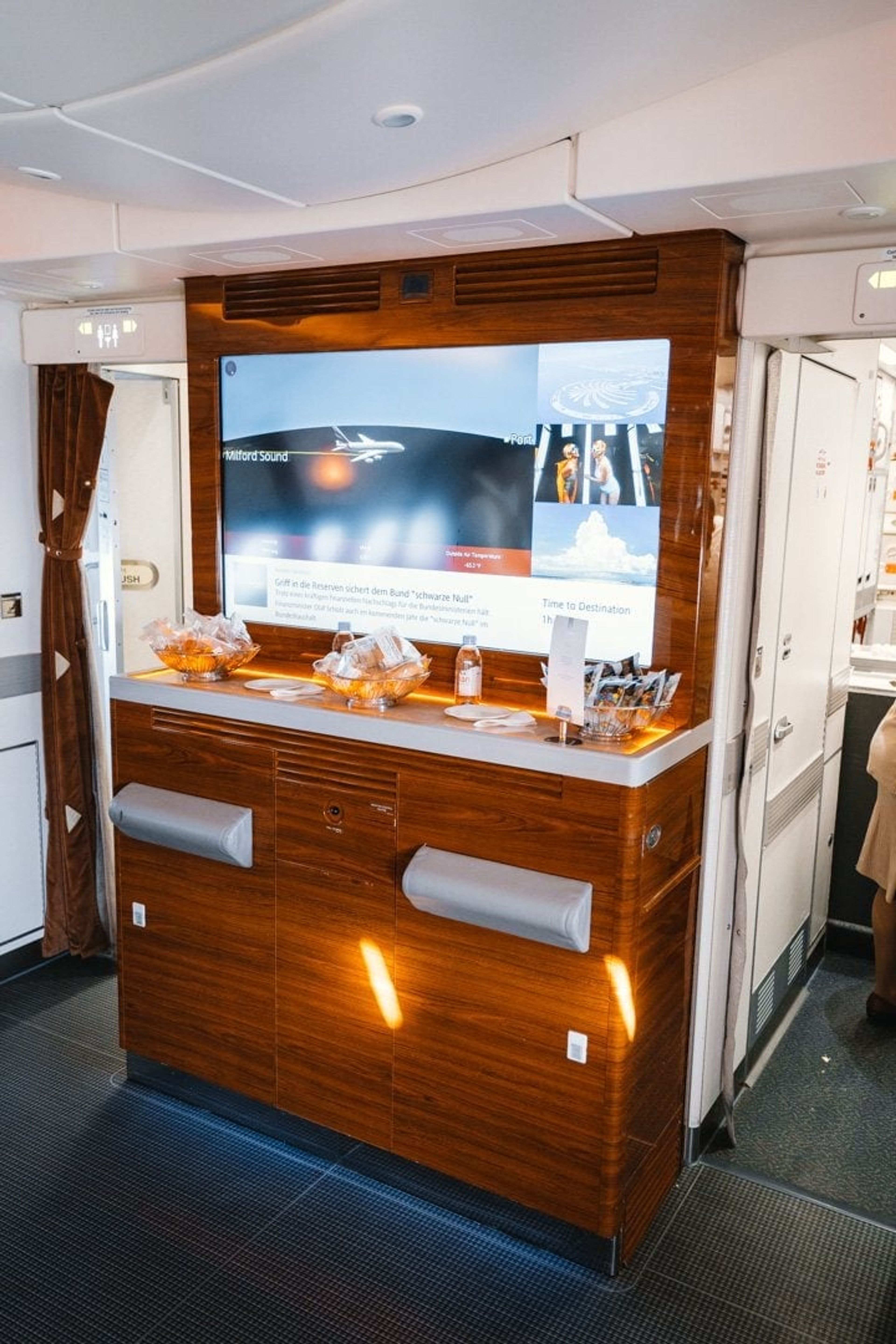 Talking about mini-bars… the A380 has one in each business and first class seat; because why not! It’s handy if you want to grab a bottle of water, but all the other drinks aren’t chilled so unless warm coke is your thing, there’s not much point.