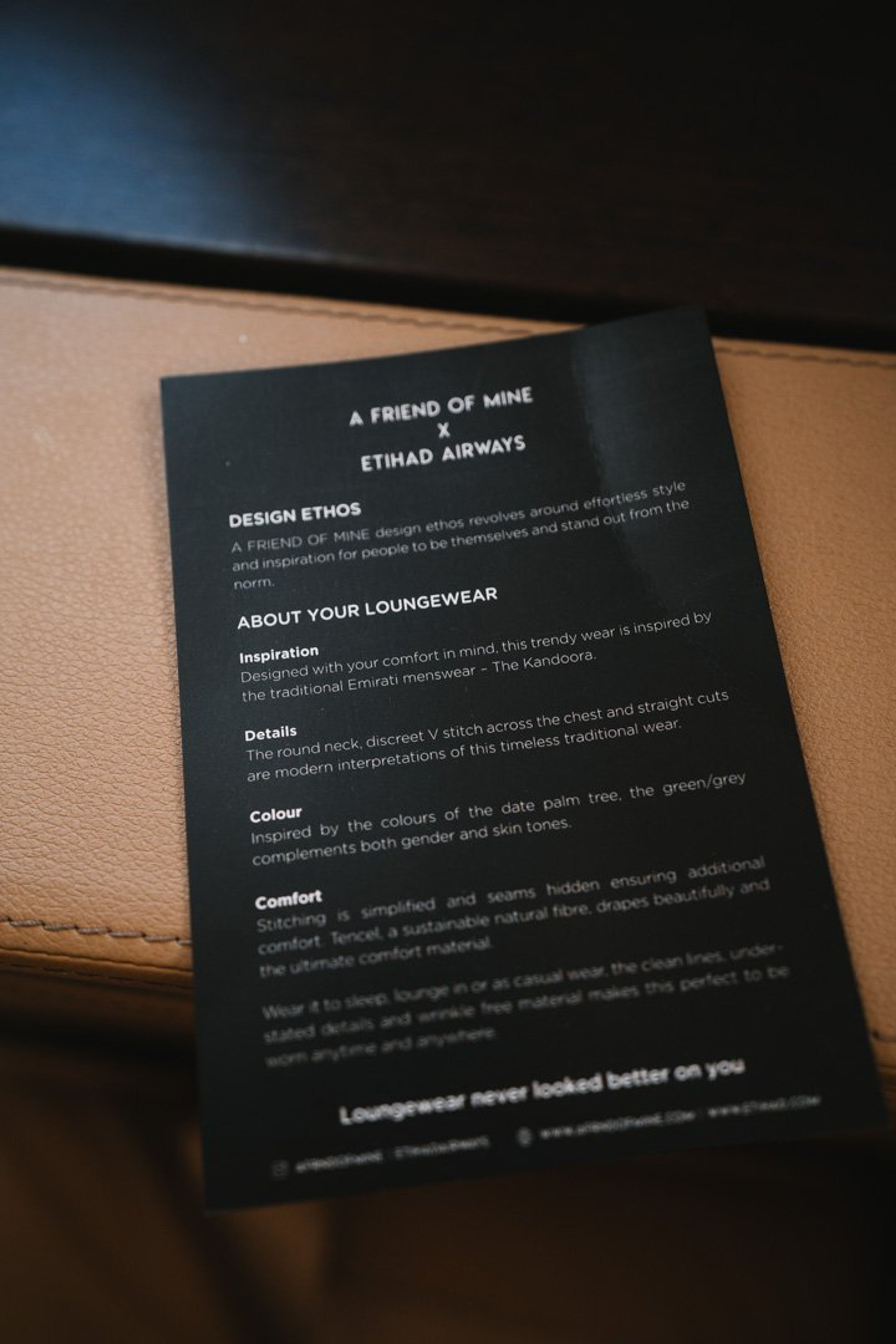Etihad recently introduced new lounge wear/pyjamas in first-class designed by “A Friend Of Mine”.
