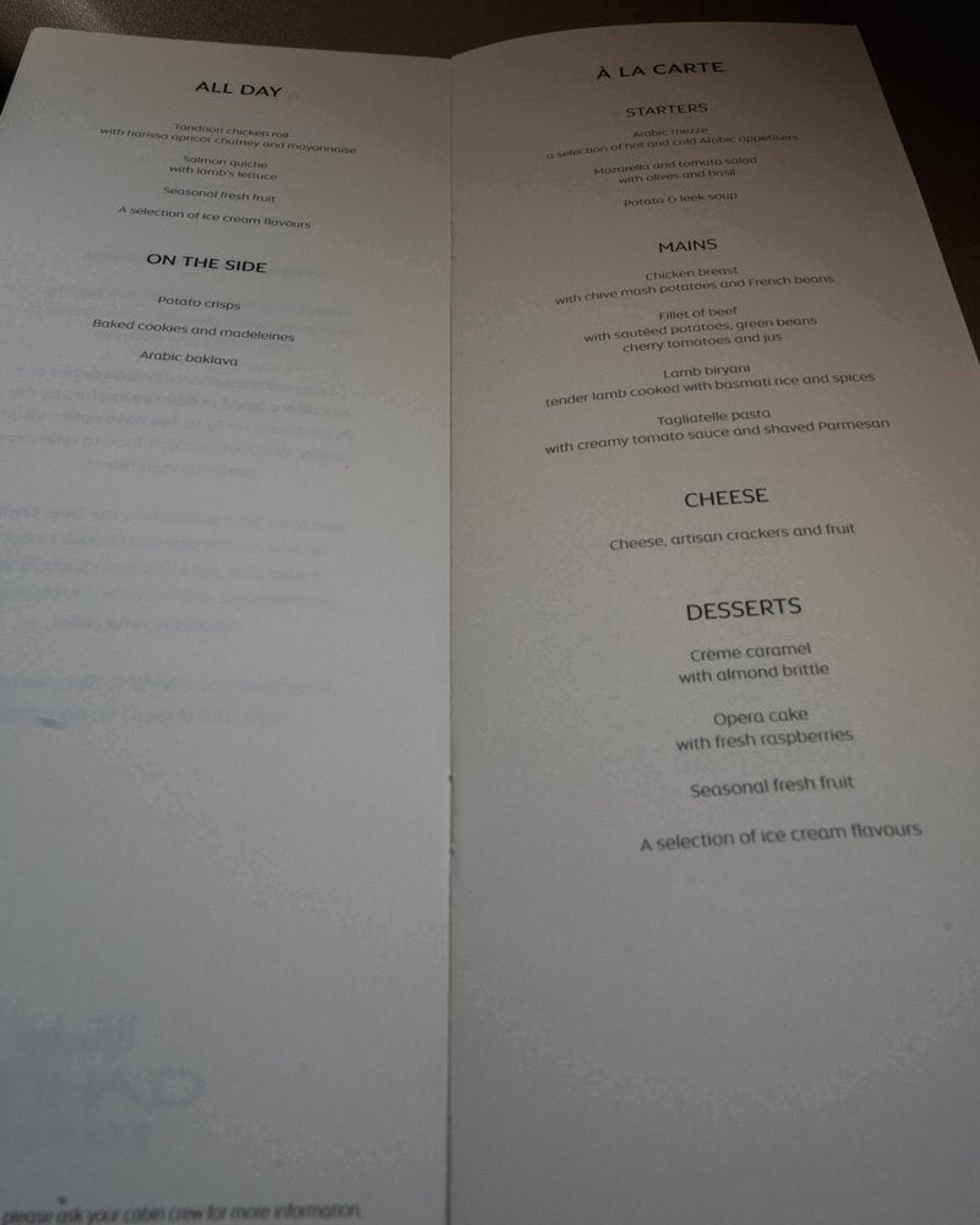 The crew on Etihad will also ask you when you prefer to dine, so it’s kind of on-demand although they do take your order as soon as possible.