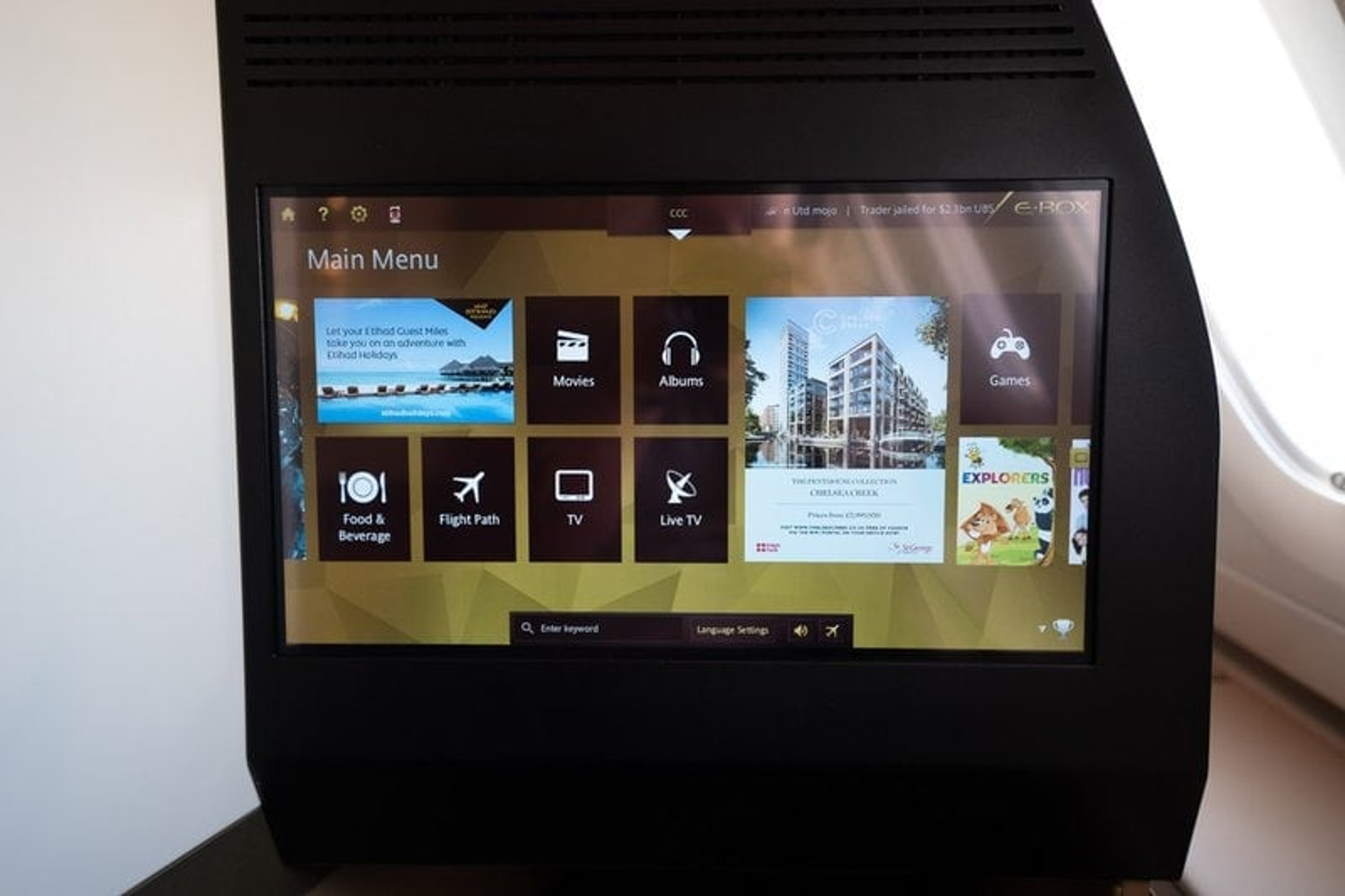 The Etihad in-flight entertainment system features an 18″ touchscreen display and a good selection of new movies, TV series and live TV.