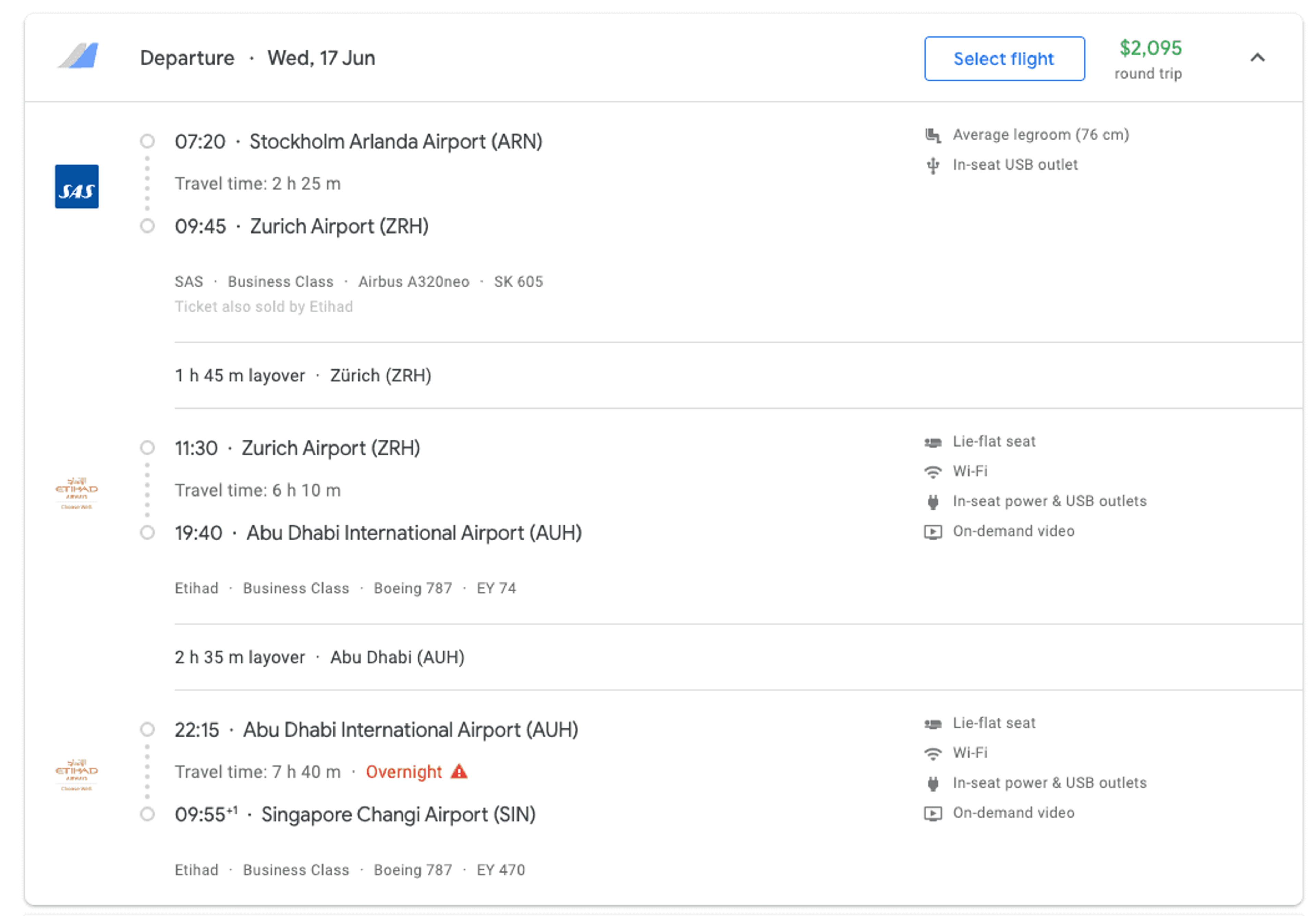 Etihad is running an incredible sale for flights from Sweden to Asia via a connecting flight in Zurich (ZRH) and Abu Dhabi (AUH). Since Etihad don’t actually fly from Sweden, the first flight to Zurich is operated by Etihad partner SAS. On the way back, you will fly through Brussels.