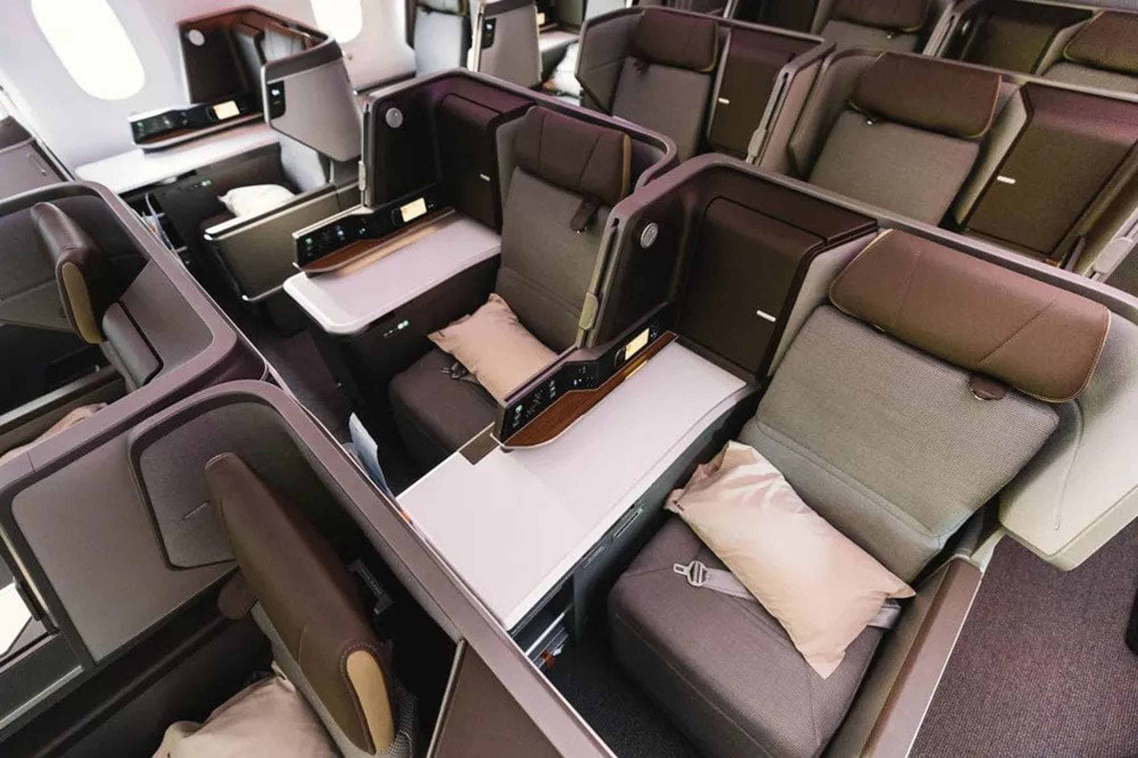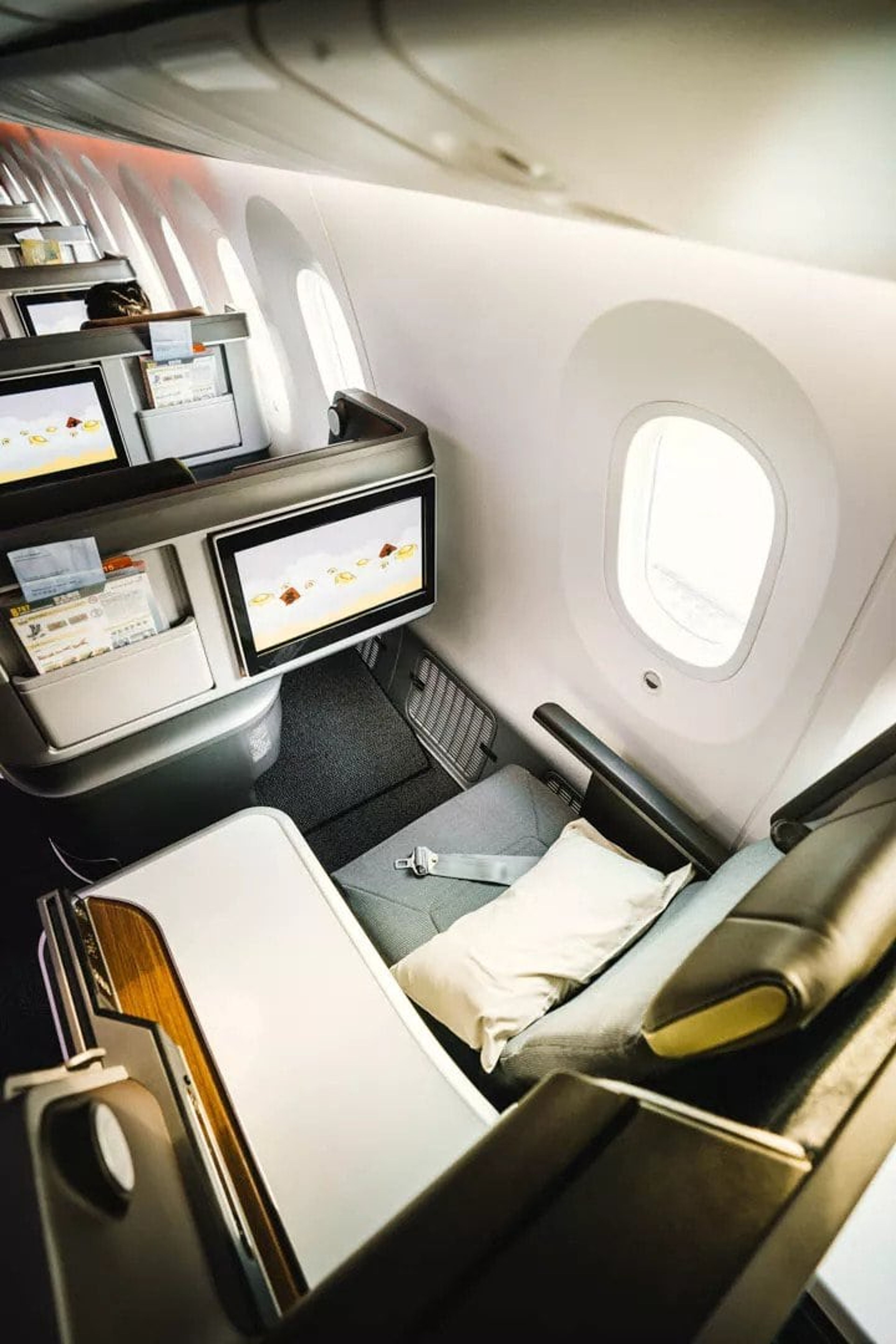 The EVA 787 is very easy on the eyes and one of the more picturesque business class seats in the market. Although I personally don’t like this seat type and prefer the reverse herringbone design, I can understand some people prefer this as it’s easier to get in and out of.
