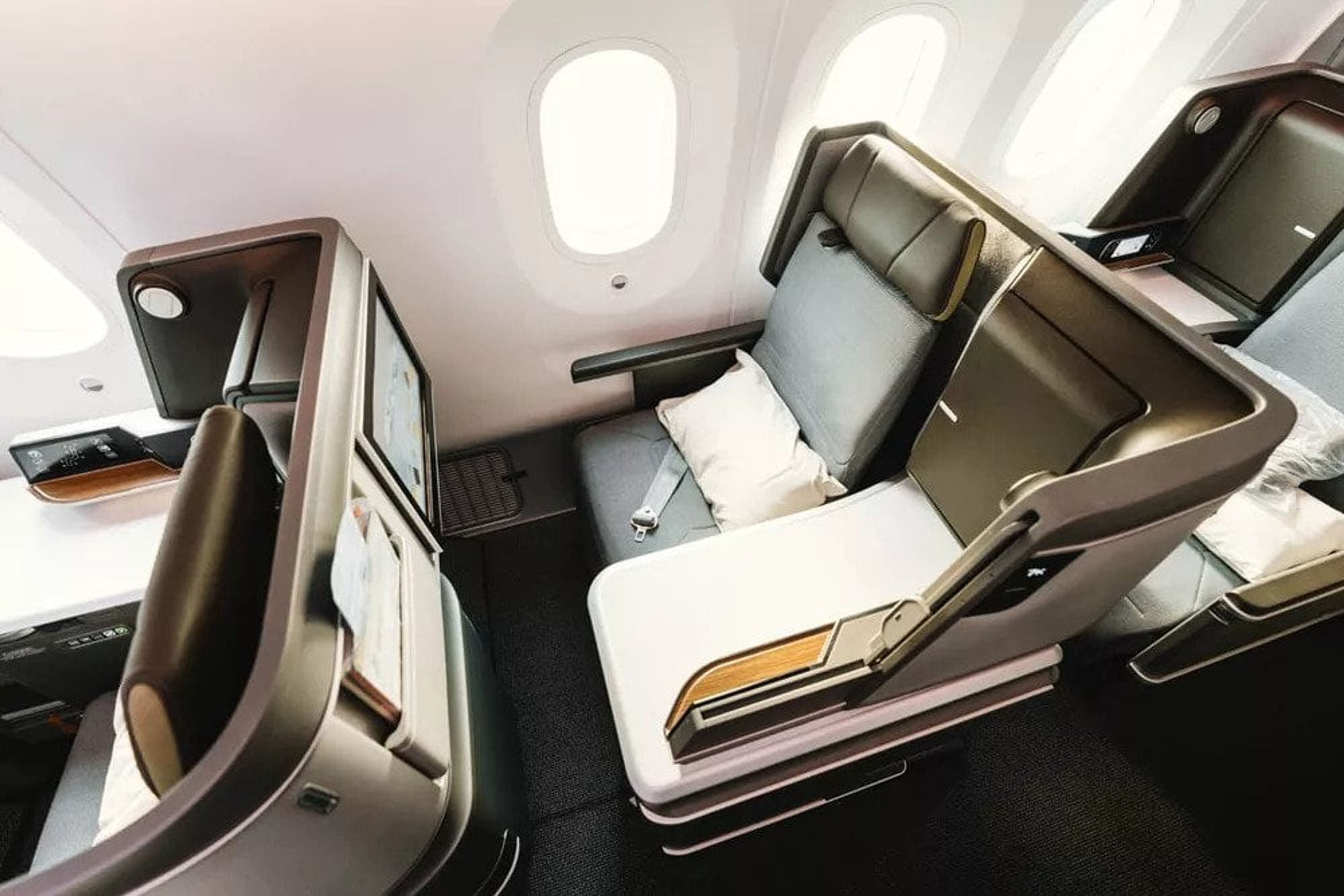 The same is the case for those sitting in the middle, where one side will have direct aisle access and the other side a side table between them and the aisle.