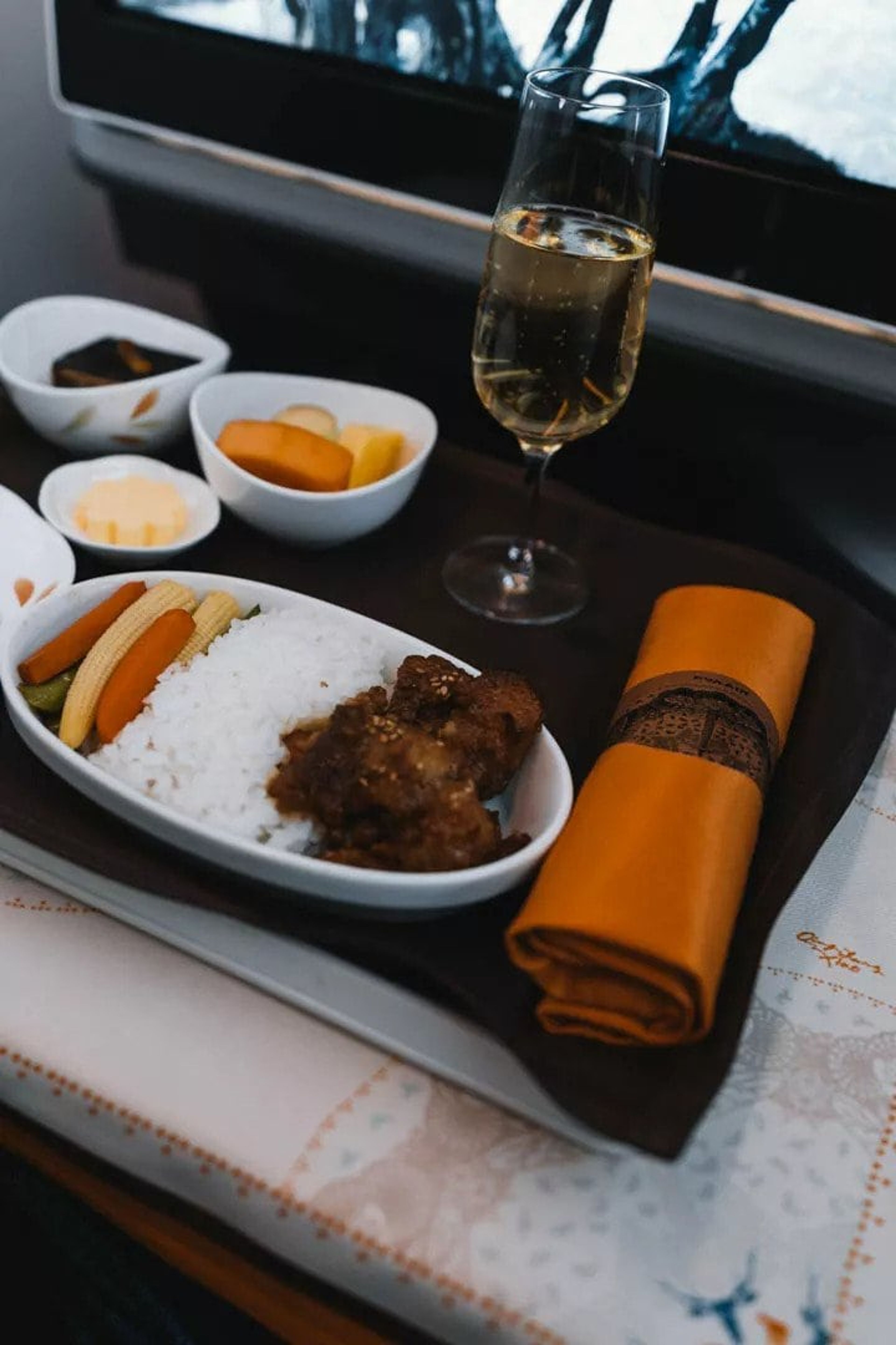 The food and drinks menus looked very lovely (design wise) and although the food was nothing compared to what Qatar Airways pulls off, it was tasty and presented well. Considering the flight time, I had zero complaints.