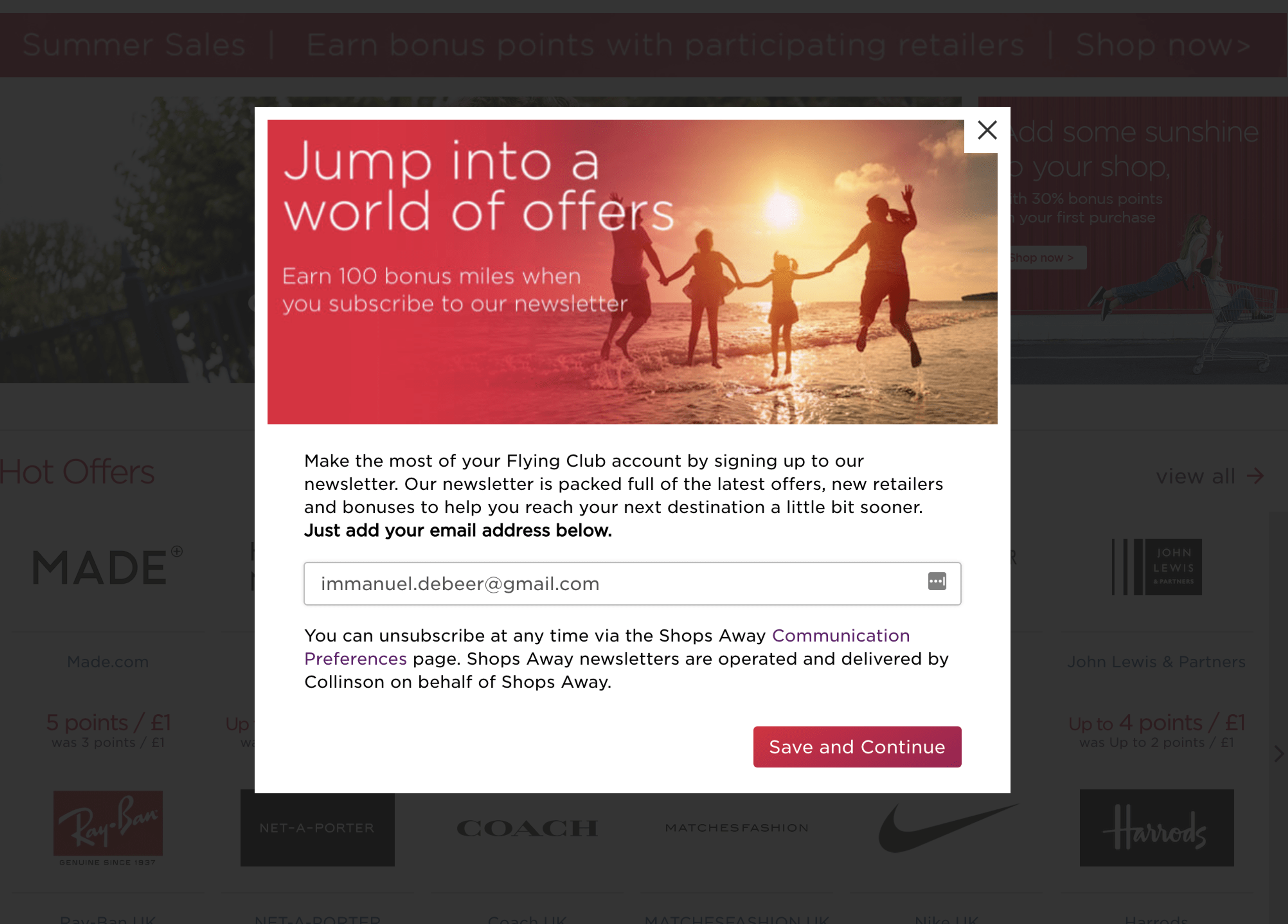 - Sign up for the email and wait a day for your miles to credit