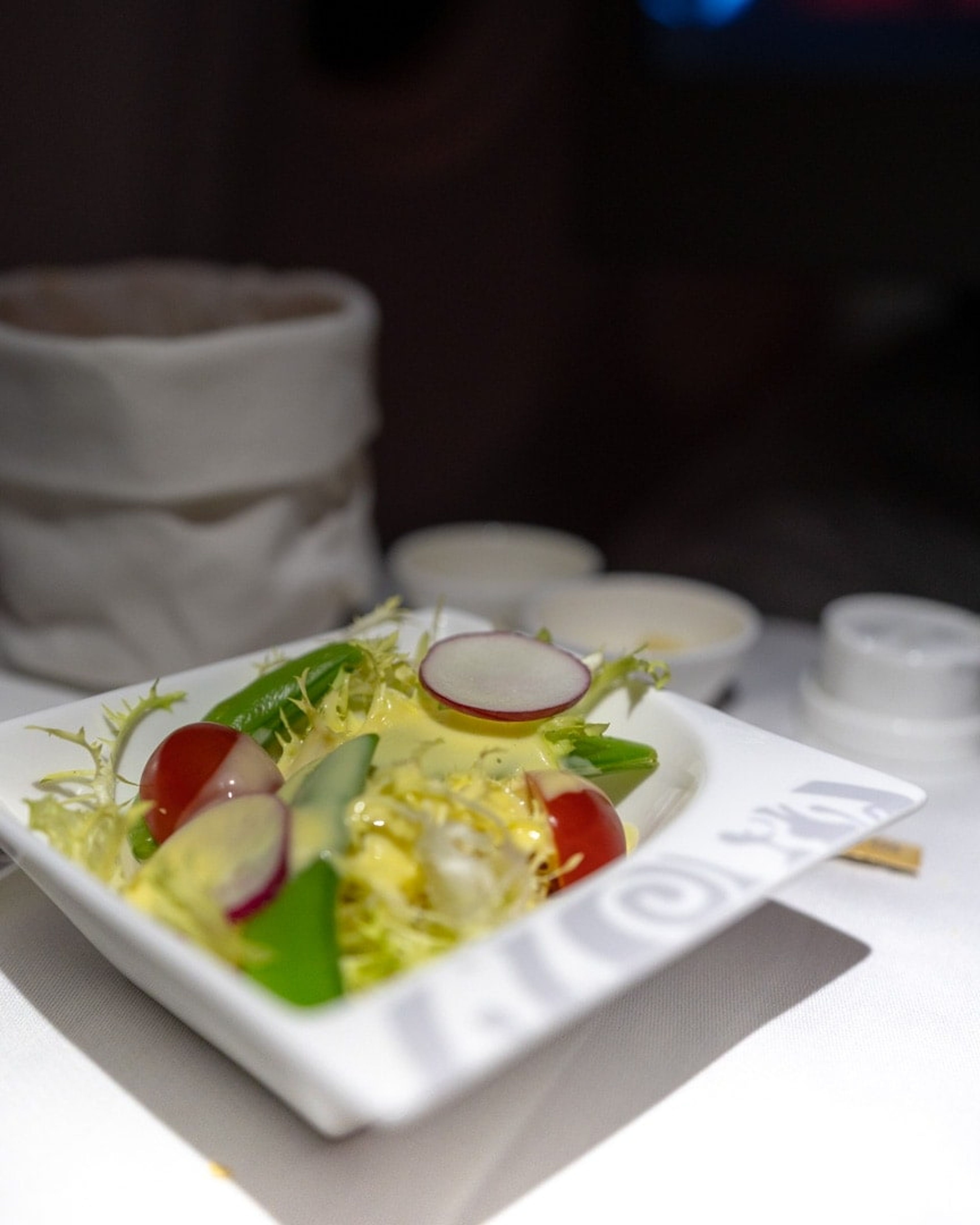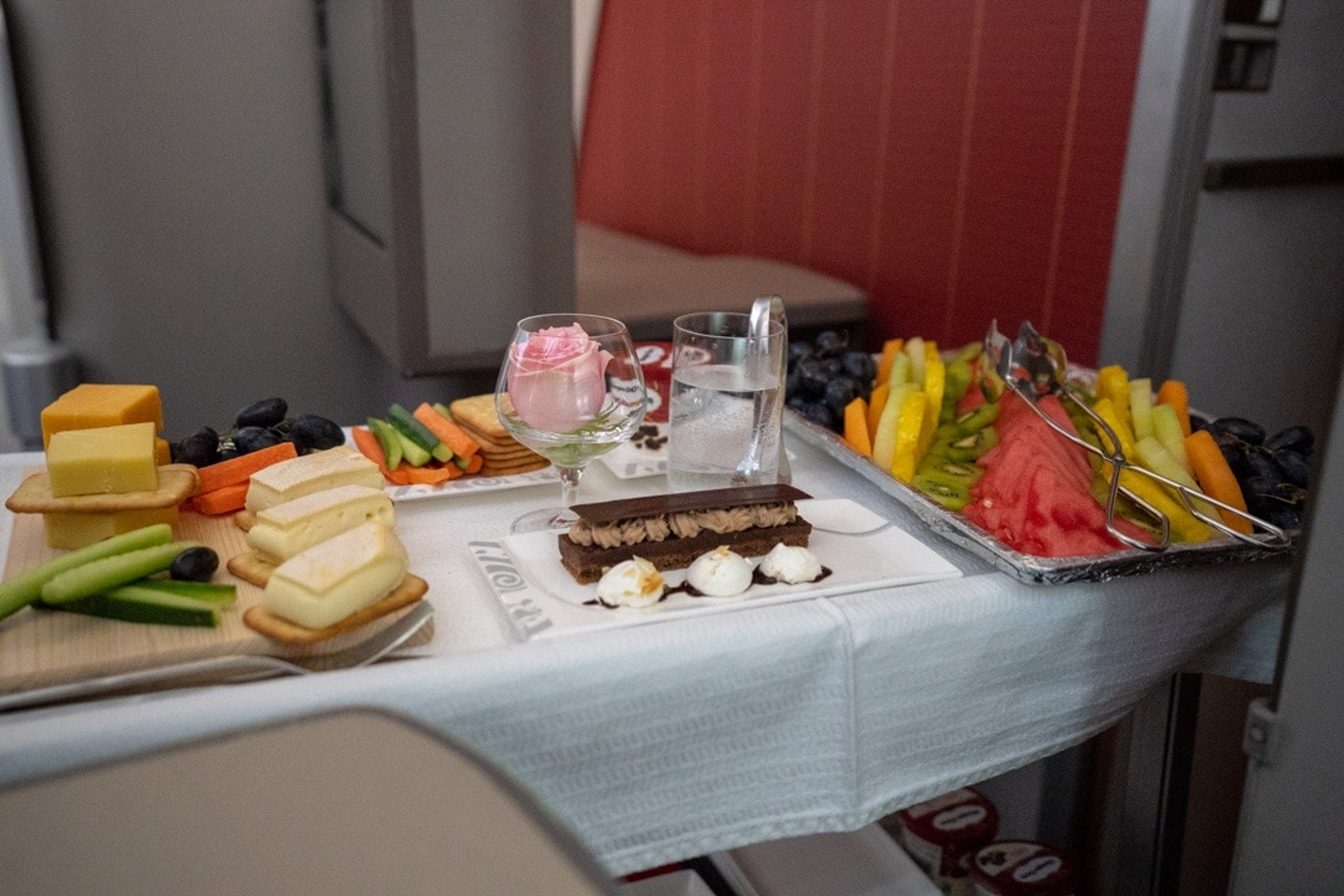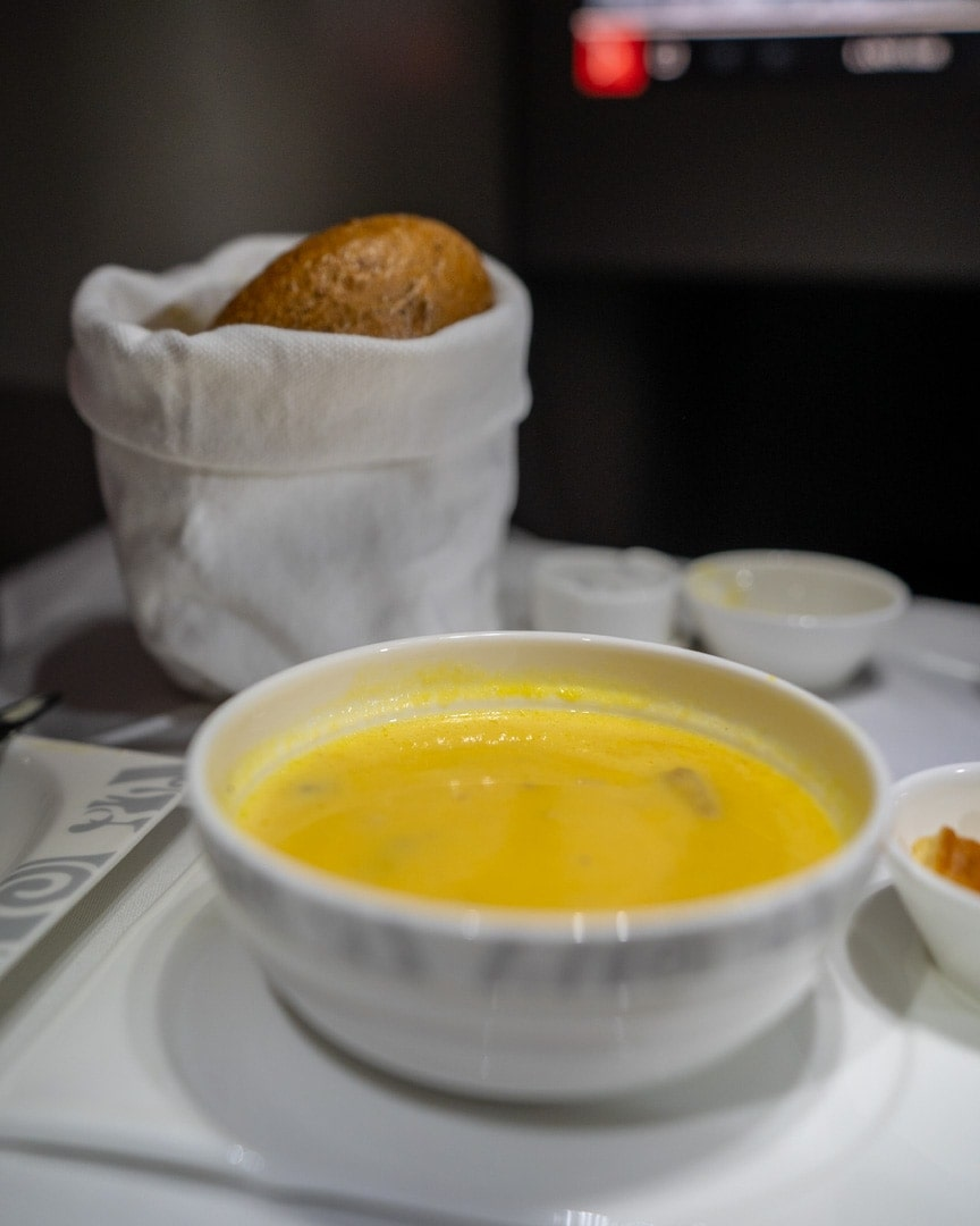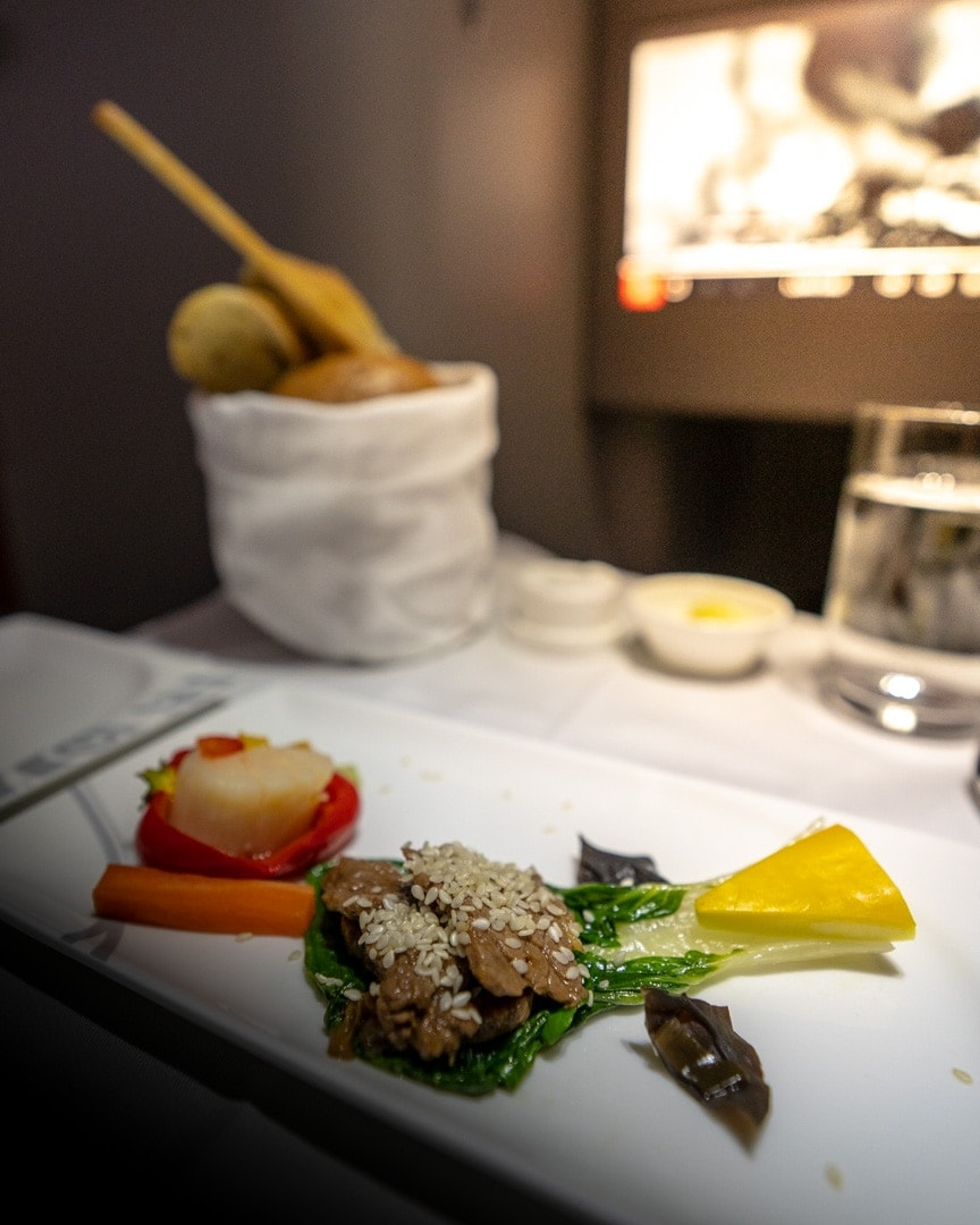 Between each course, the crew would replace our cutlery with fresh ones and deliver a new hot towel as well which I think is excellent service. To be fair, I don’t think I’ve ever received this many hot towels on any business class flight!