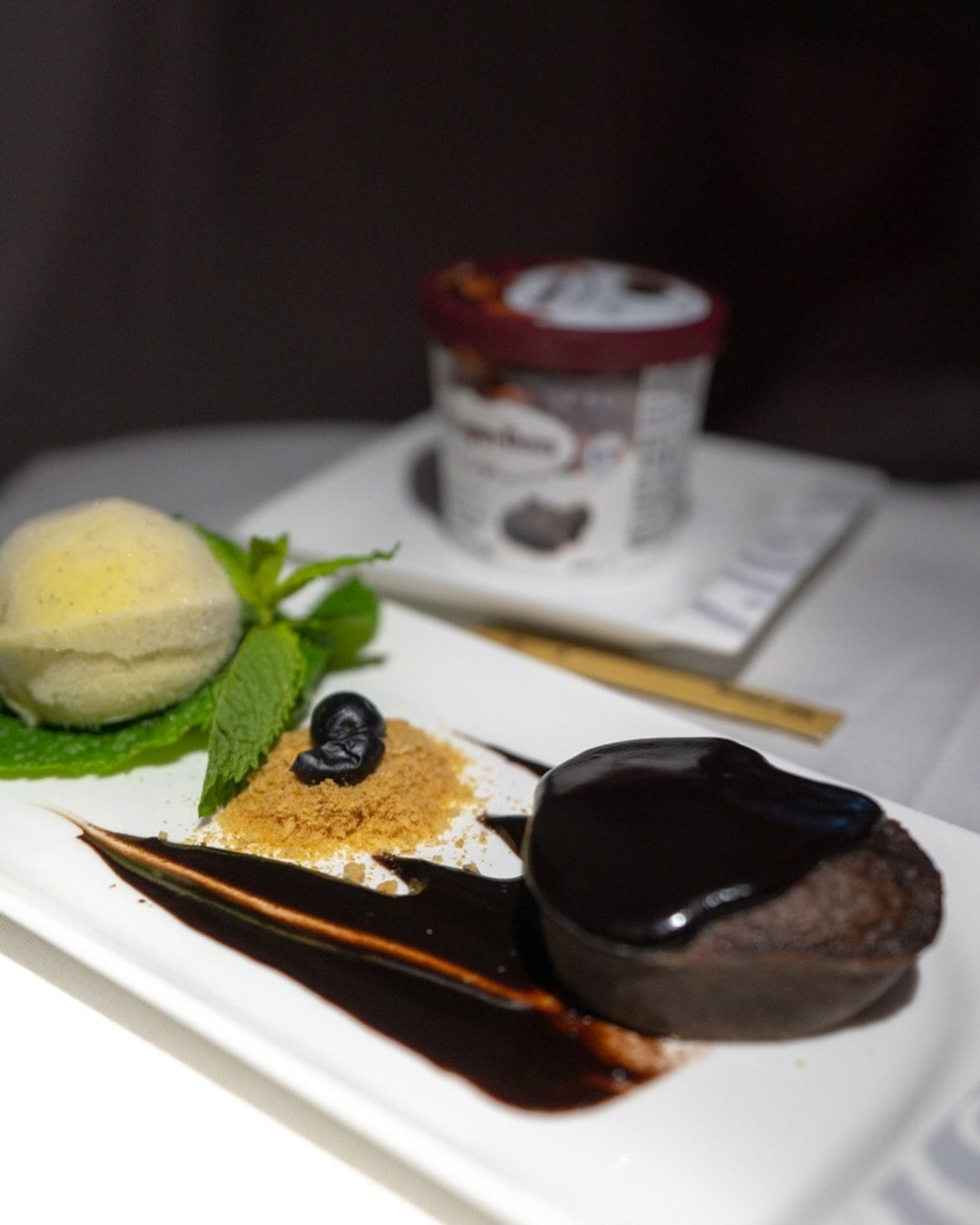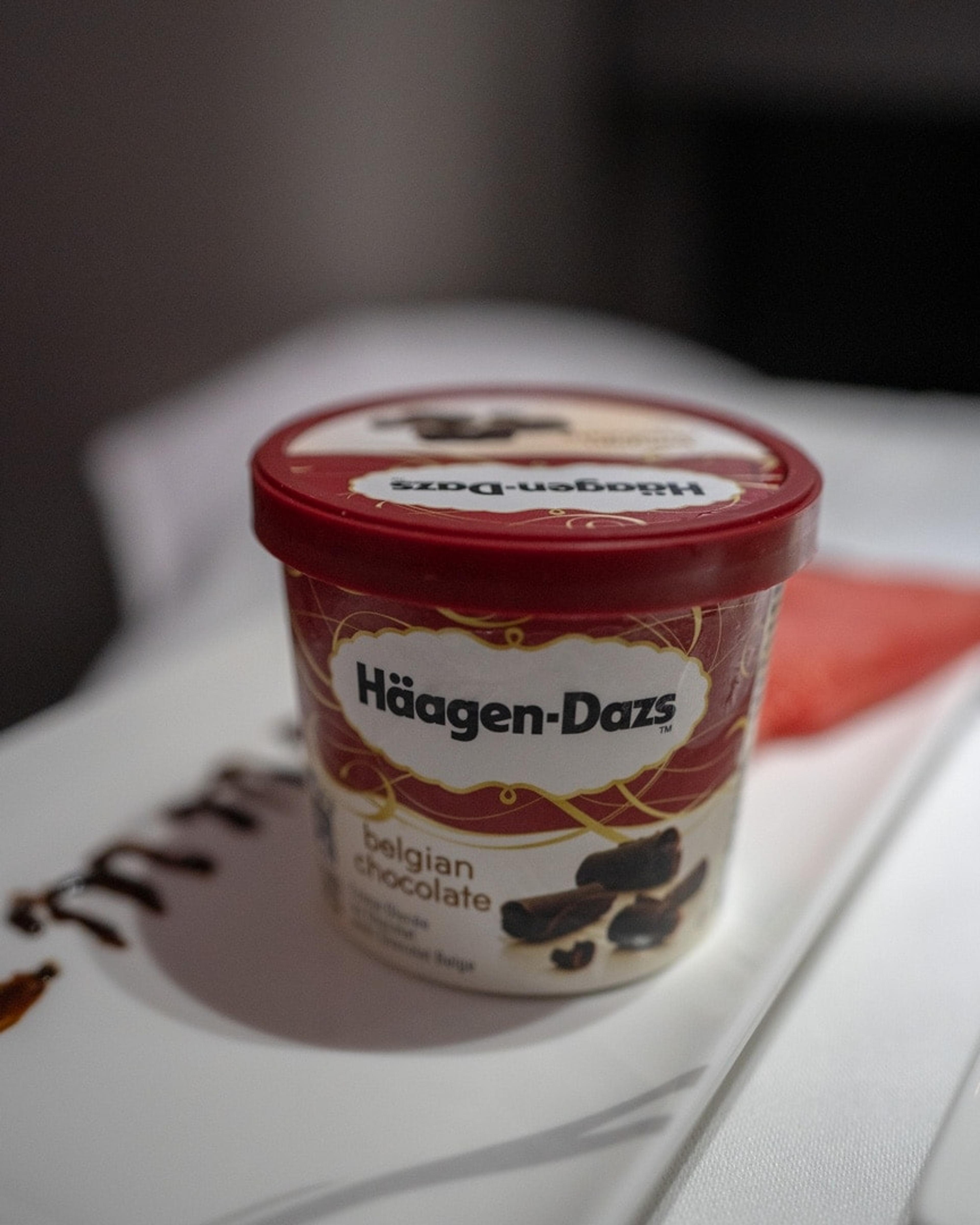 The best part was the dessert where the crew rolled out a full table for guests to pick a dessert of their choice. The Chocolate praline salted butter caramel looked and tasted terrific. Purely for review purposes, I also got some Haagen-Dazs ice cream.