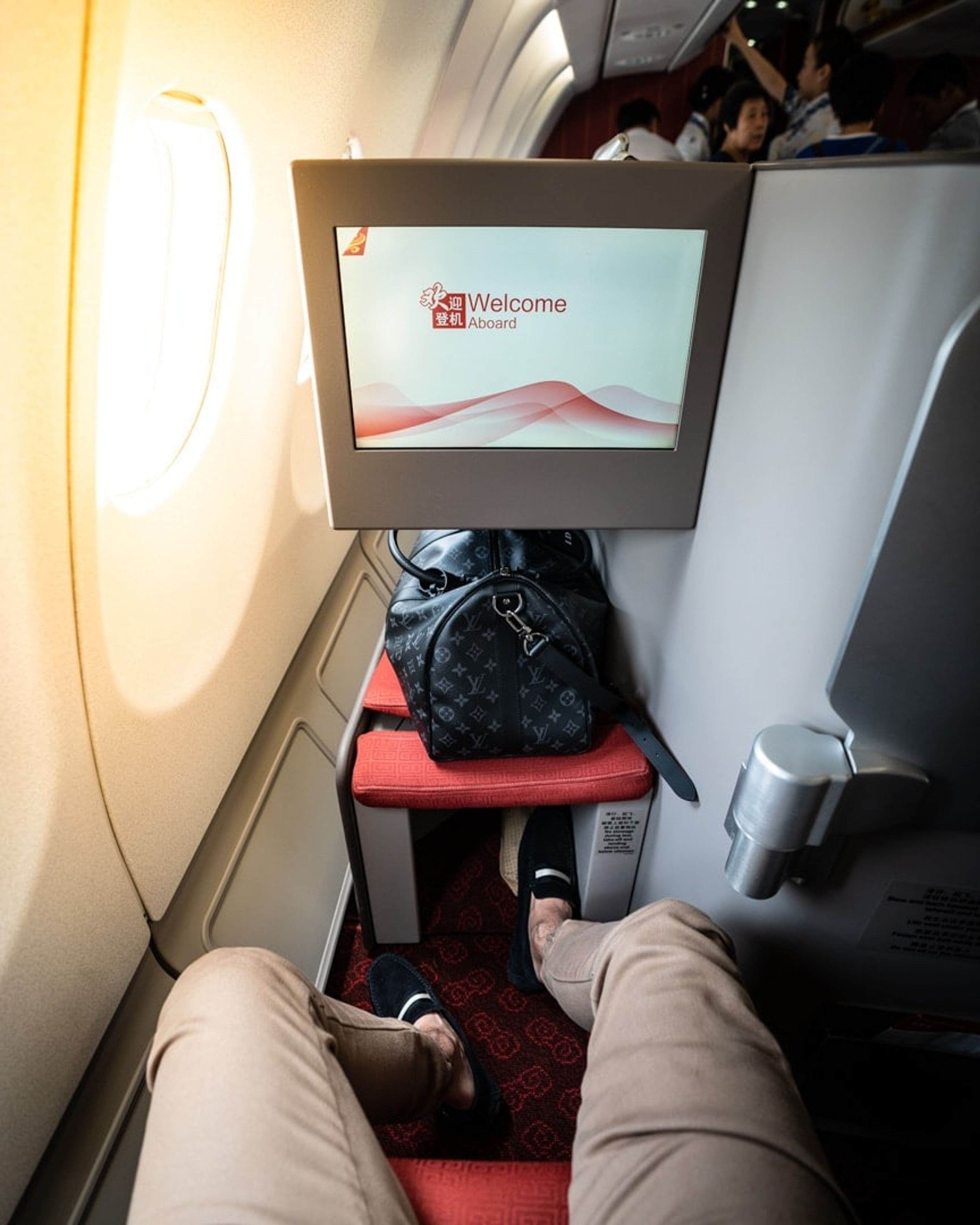 On our flight to Beijing, my brother and I opted for the middle seats positioned right next to each other, there’s a small privacy screen in between them, so it’s great if you know the person next to you, probably not so much if you’re sat next to a stranger.