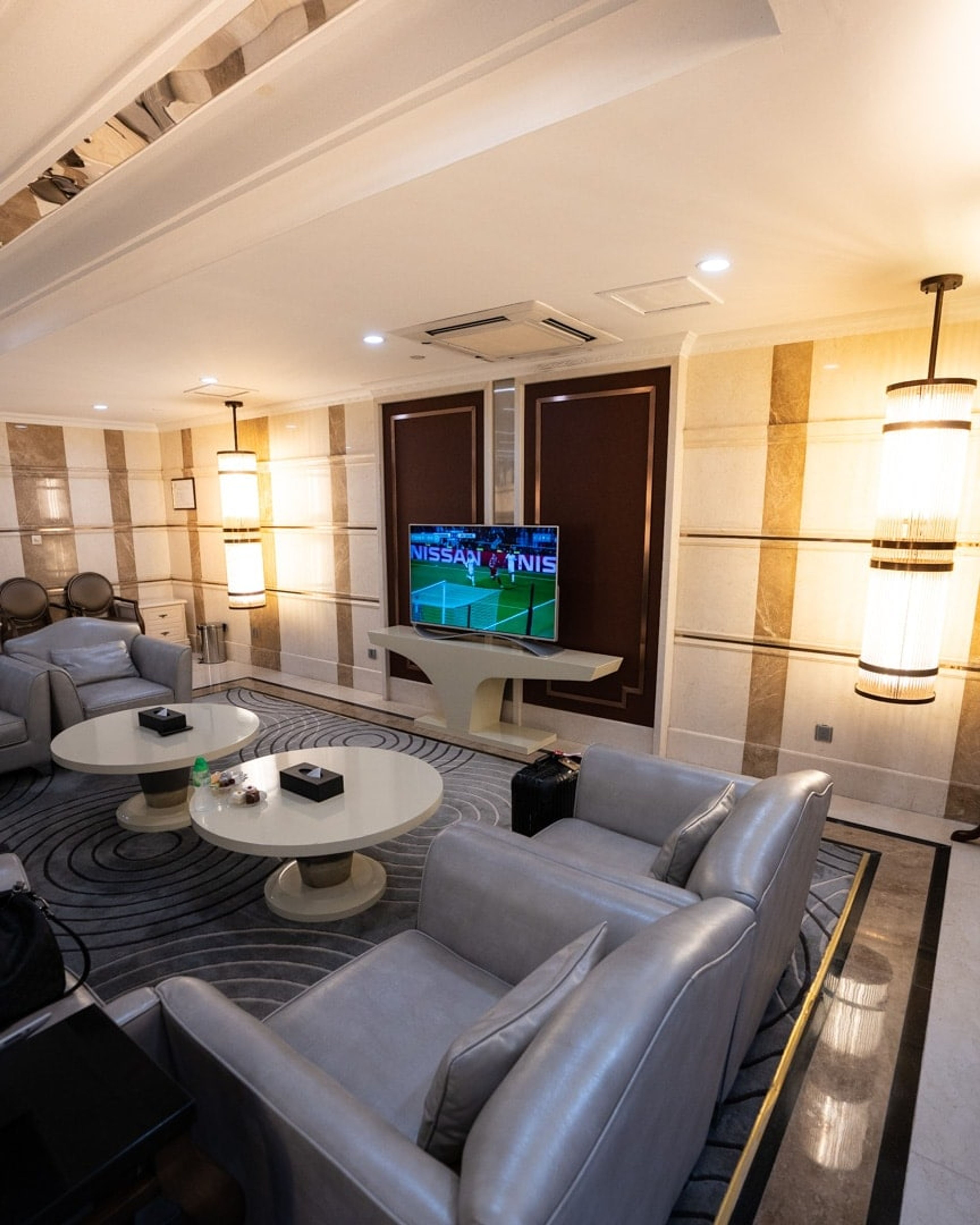 After receiving my boarding pass to Sydney, I was met by a team of 3 Hainan ground crew to escort me to my very own private lounge with an outdoor patio and fish pond!
