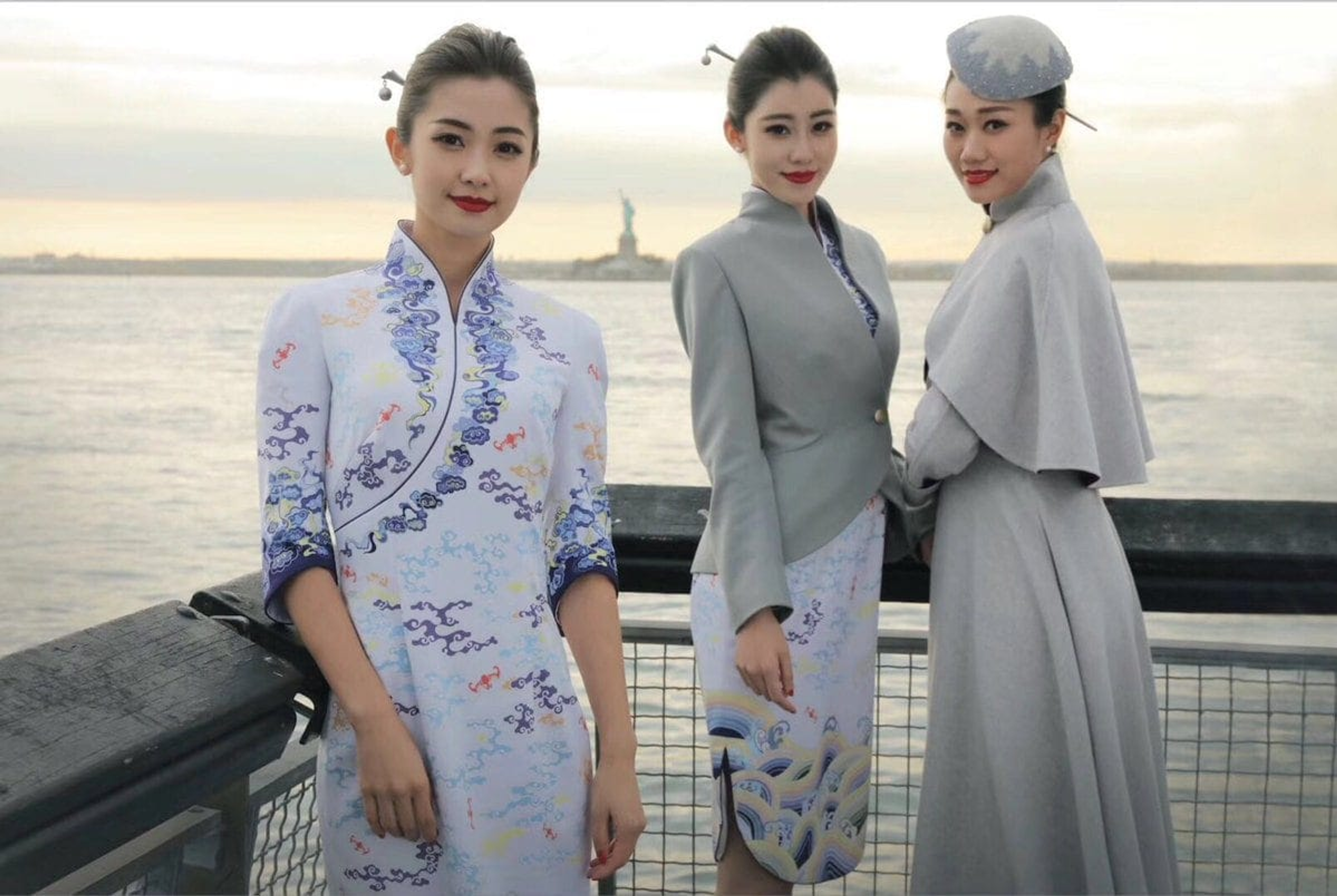 Hainan recently updated its crew uniforms and they look very stylish and elegant while staying true to their Chinese heritage. Designed by Laurence Xu the the new uniform has elements of the traditional Cheongsam dress (also known as qipao), with a Western-style suit for the men.