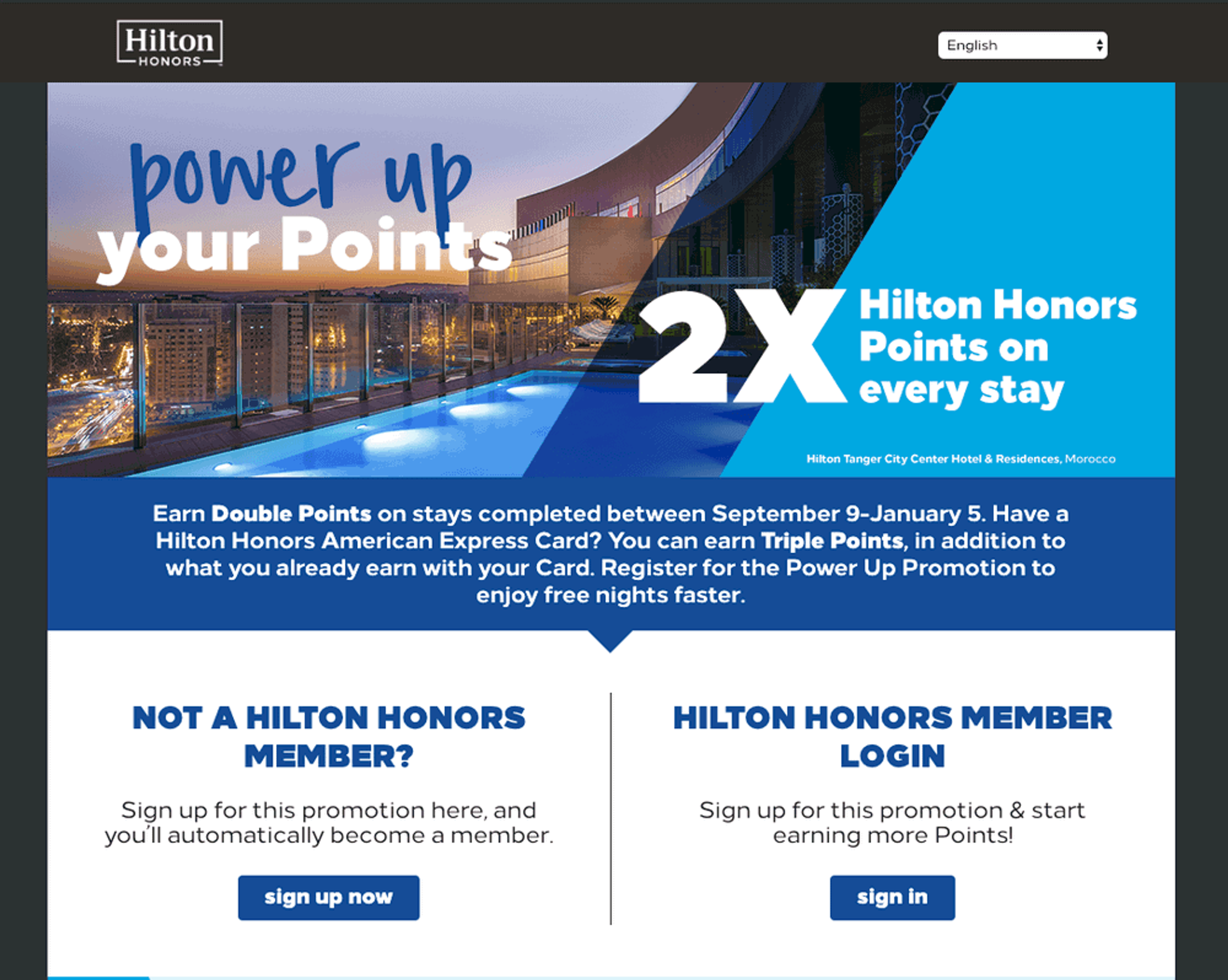 Hilton Honors Power Up will let you earn 2X Hilton Honors Points on every stay from September 9 until January 5.
