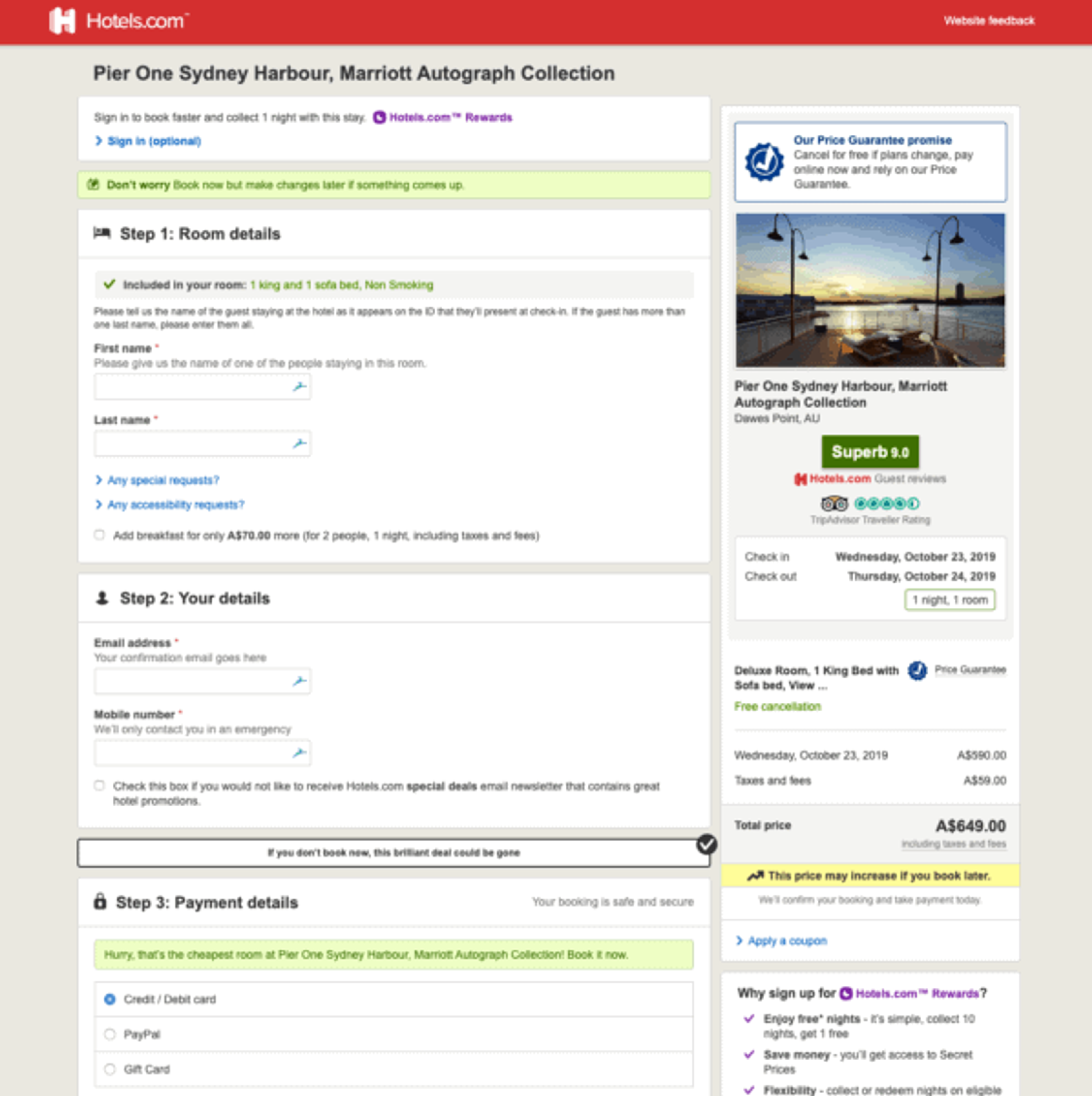 - Enter your payment details and book your hotel!