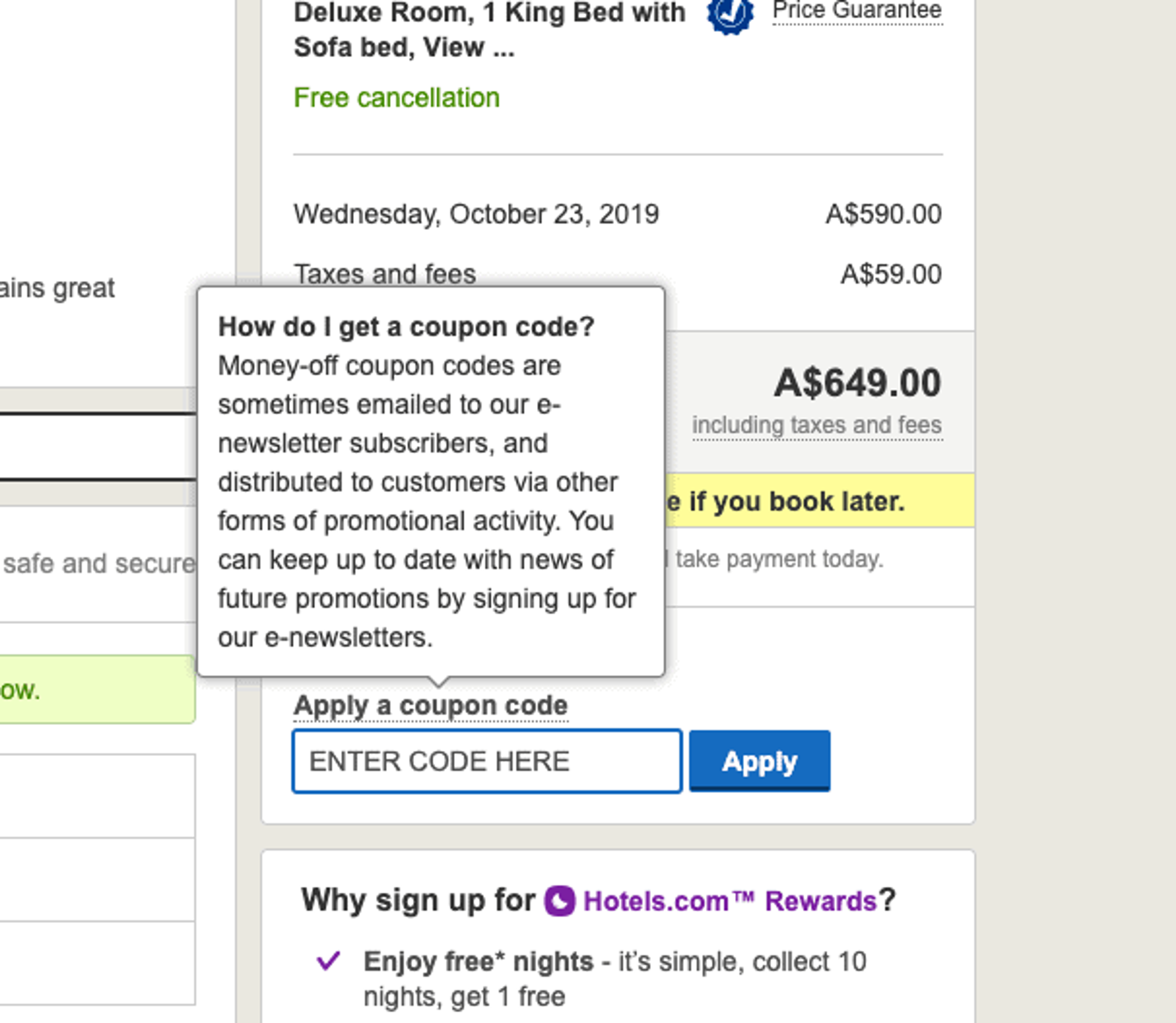 Hotels.com discount code Australia