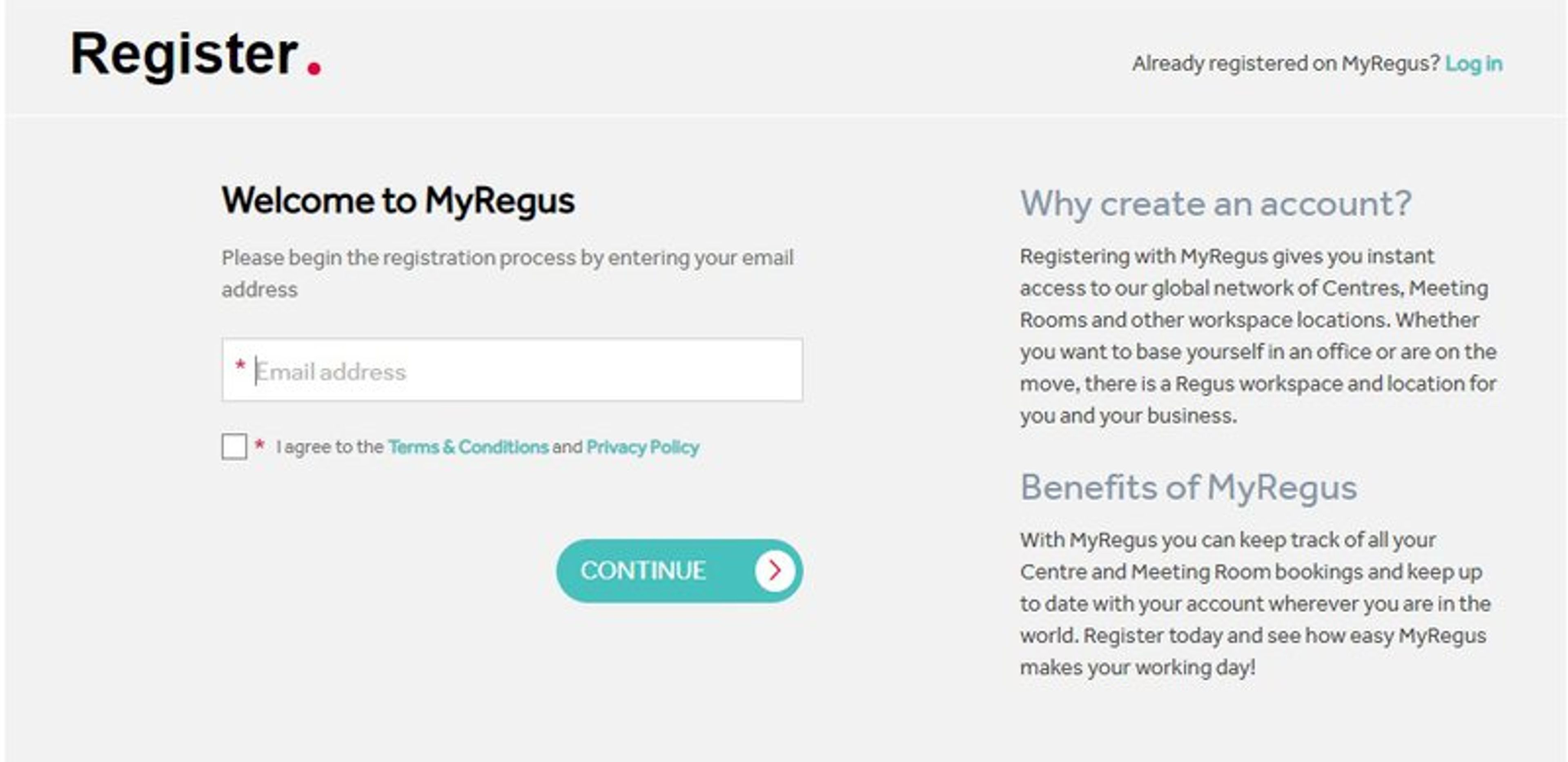Step 1 – Sign up to Regus